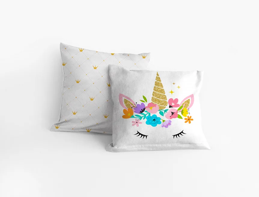 Povlak Magic se z přední strany pyšní kouzelným motivem jednorožce, který ze spodní strany doplňuje něžný žlutý geometrický motiv na bílém podkladu, viz fotografie. Vyrobeno ze 100% bavlny v úpravě DELUXE, samozřejmostí je praktický uzávěr na zip.