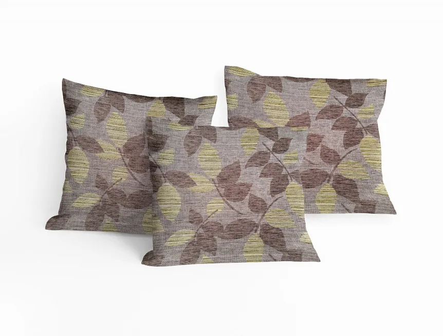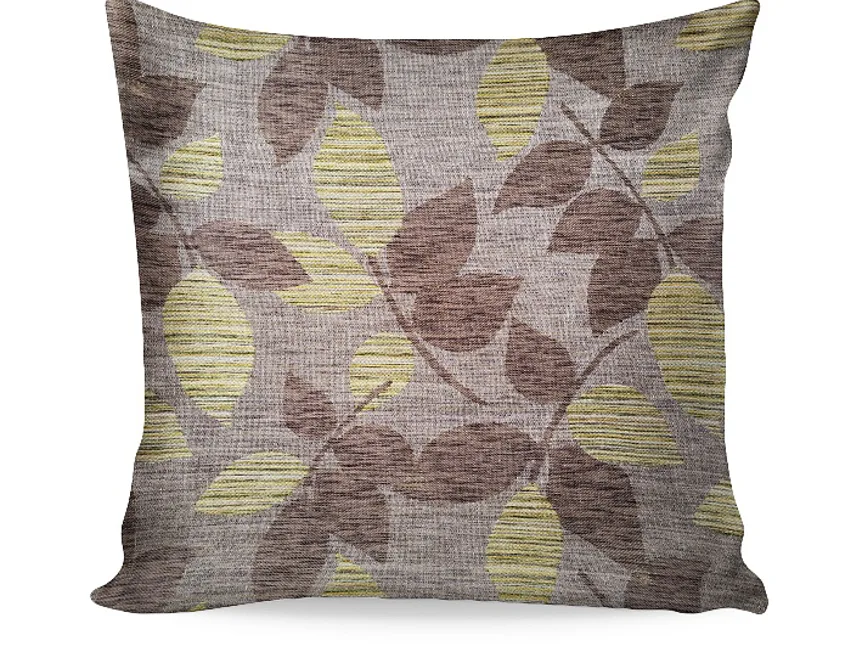 Doplňte svůj interiér elegantními dekoračními povlaky Melissa. Proužkovanou strukturu doplňuje jemný lístečkový vzor, jehož výsledná barevnost se skládá z perfektně sladěných odstínů krémové, šedé, olivové a trávově zelené na hnědém podkladu. Povlak je opatřen komfortním zipovým uzávěrem.
