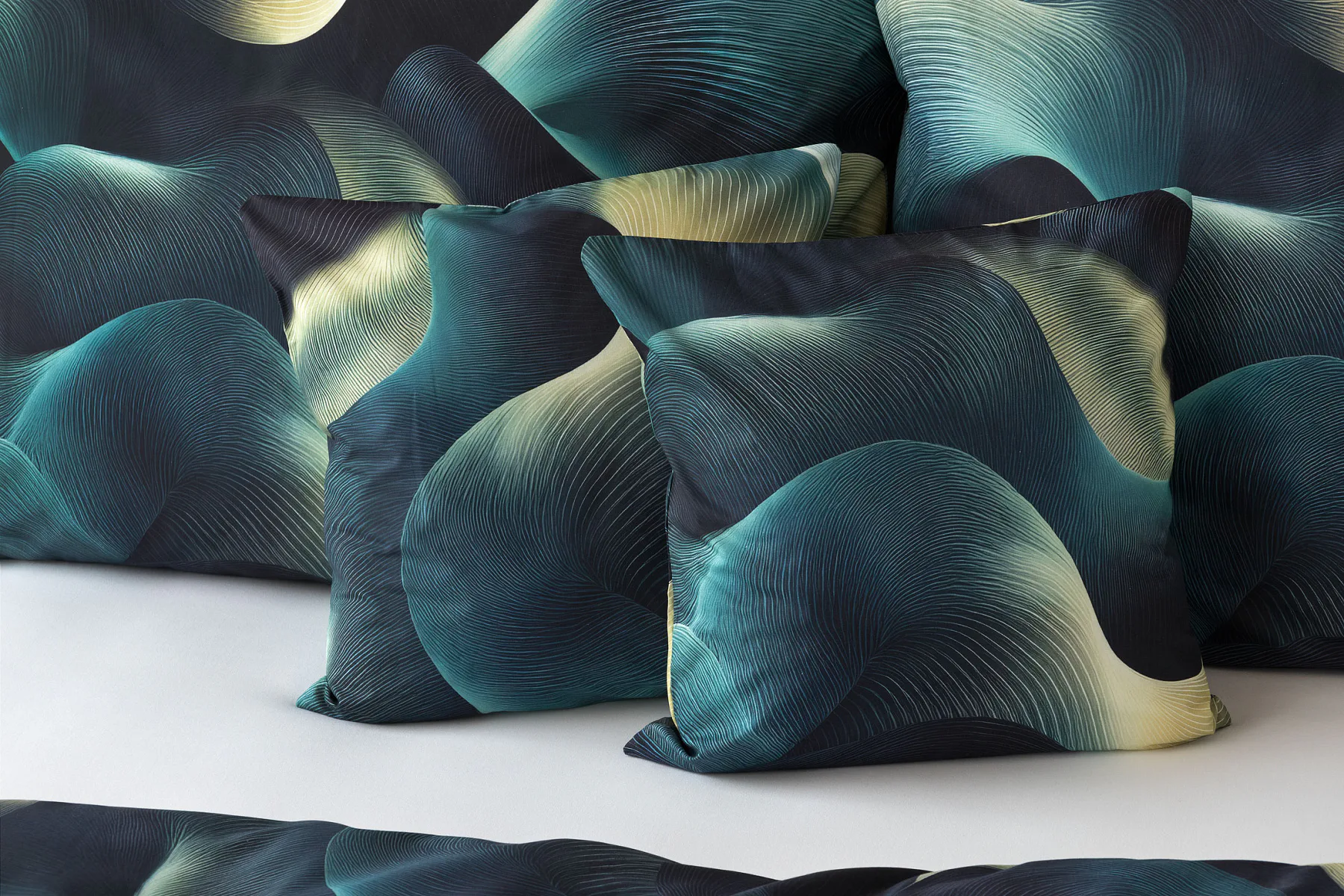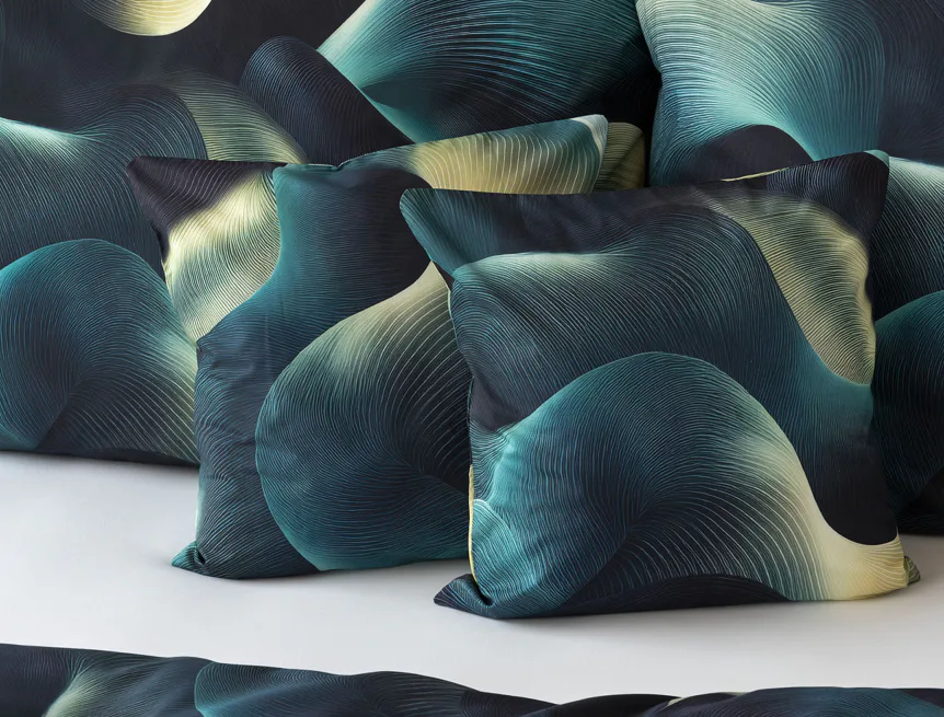 Povlaky jsou šité z metráže, každý kus je proto jiný, resp. zachycuje jinou část vzoru. Přední a zadní strana jednotlivých kusů se rovněž liší s ohledem na zachycenou část vzoru.