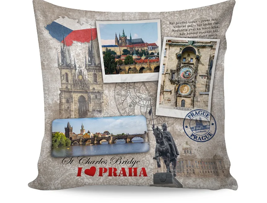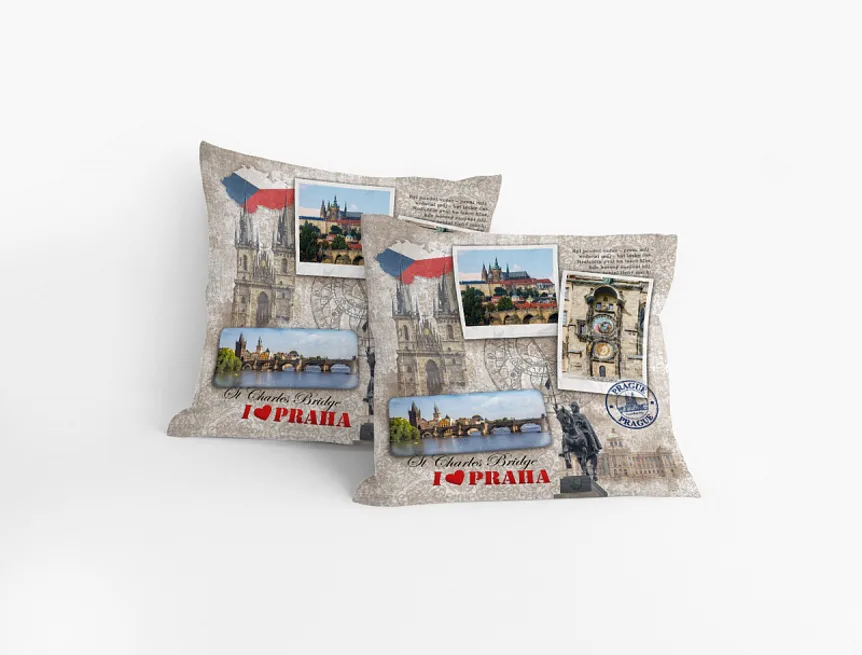 Bavlněný povlak s typickými symboly stověžaté matičky Prahy se stane originální dekorací vašeho domova nebo jej můžete věnovat jako milý dárek svým blízkým.
