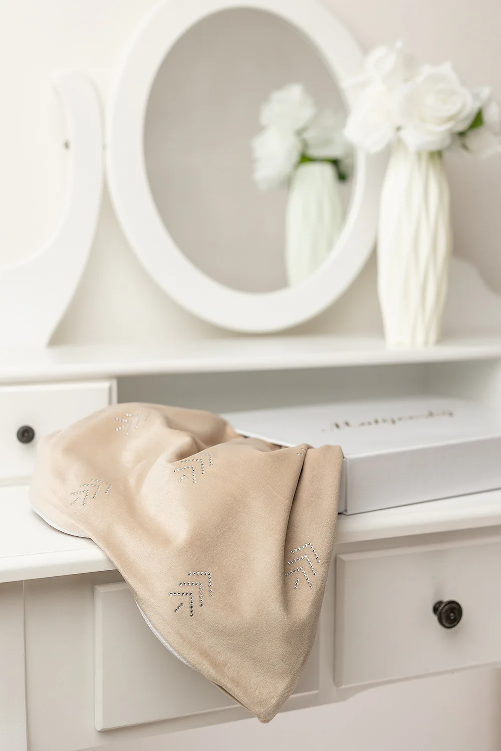 Motivy kolekce vznikaly s důrazem na nadčasovou estetiku, harmonii a dokonalé sladění jednotlivých kamenů. Krystaly vytvářejí působivé vzory – od minimalistických struktur až po výrazné hvězdicové kompozice – a mění každý povlak v estetický klenot, který rozzáří váš domov noblesou a jemným třpytem.