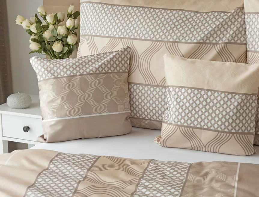 Povlaky jsou šité z metráže, každý kus je proto jiný, resp. zachycuje jinou část vzoru. Přední a zadní strana jednotlivých kusů se rovněž liší s ohledem na zachycenou část vzoru.