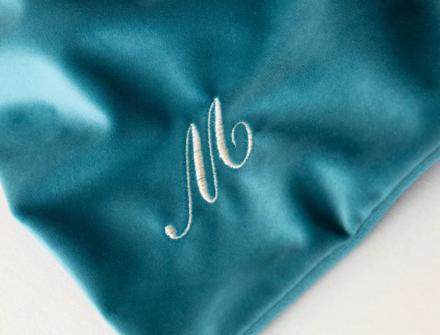 Pro luxusní efekt lze povlaky s výšivkou M skvěle doplnit krystalovými designy z limitované kolekce Matějovský x Preciosa. Vytvářejí společně harmonii mezi noblesním minimalismem a zářivými prvky.
