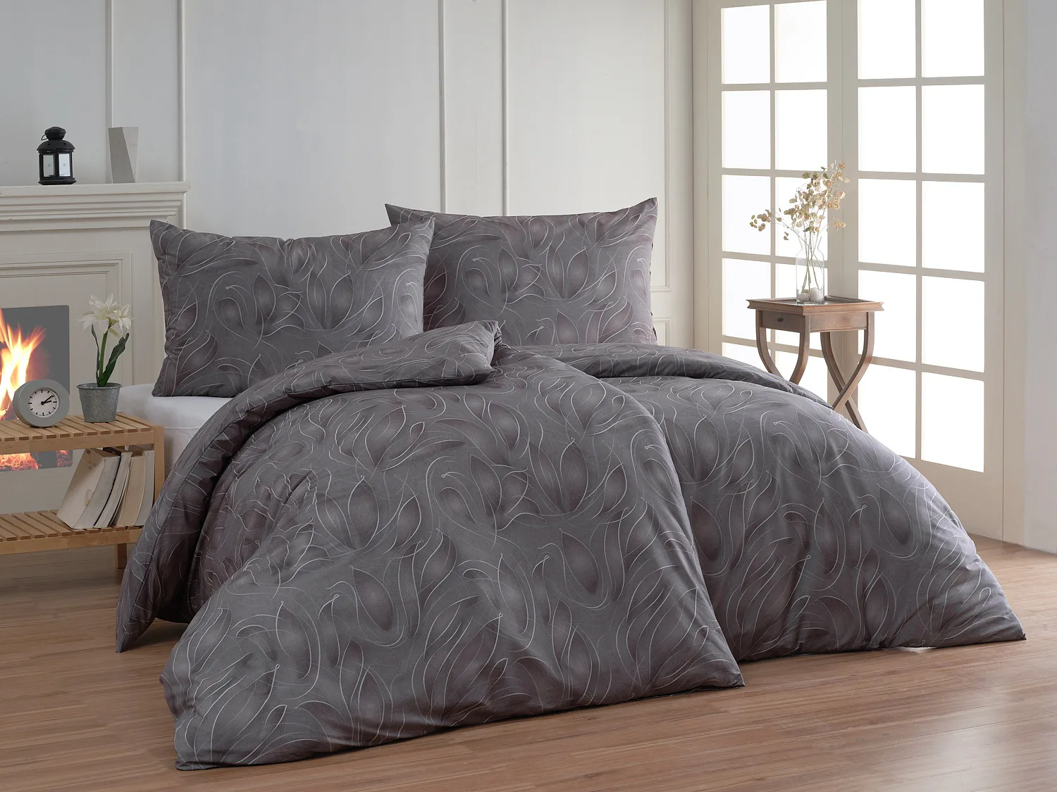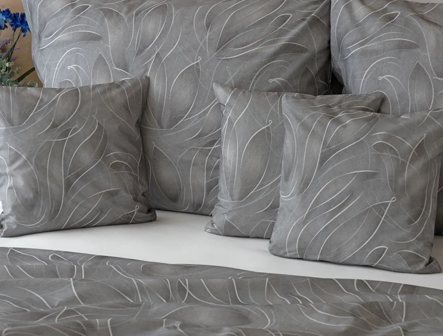S bavlněným povlečením Adeline bude vaše ložnice elegantní a vždy dokonalá. Světlé kontury decentního lístkového vzoru vynikají na antracitově šedém podkladu. Celý vzor podtrhuje důmyslné stínování, o které se postarala nejmodernější digitální tisková technologie.