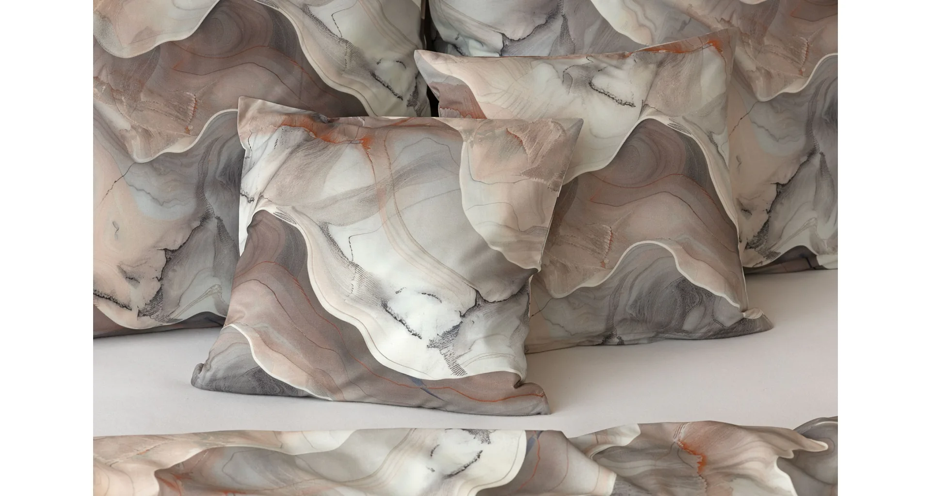 Povlaky na polštářky 40/40 cm se šijí ze stejné látky jako ložní povlečení, vzhledem k rozmanitosti vzoru může být každý povláček jiný.