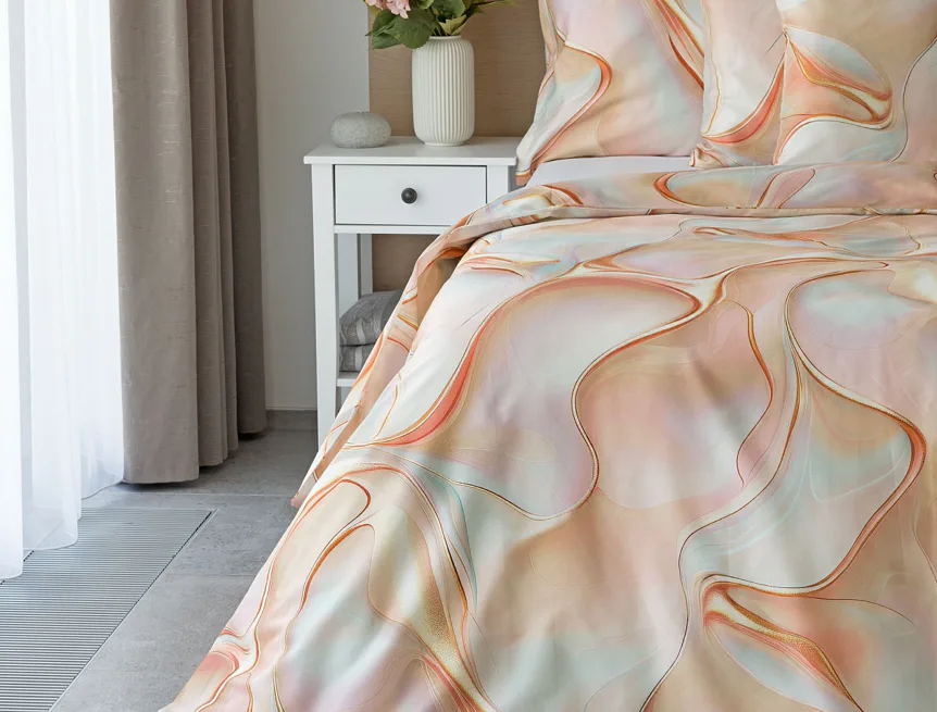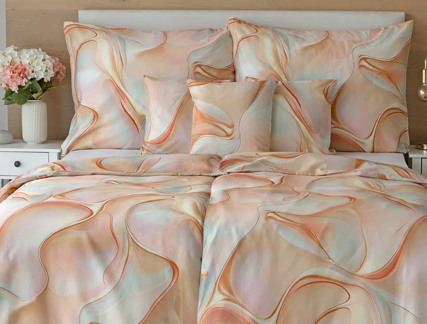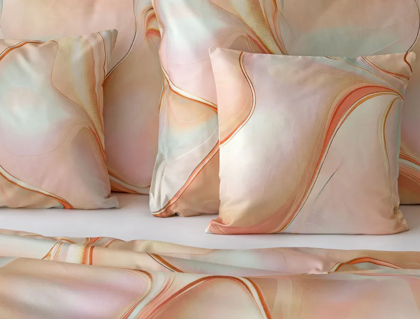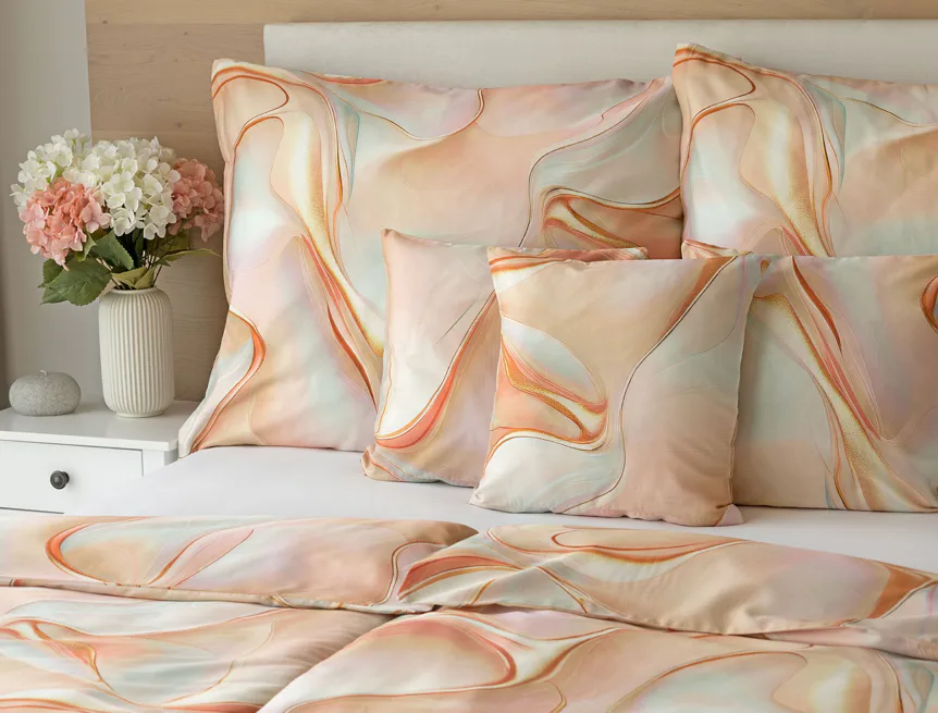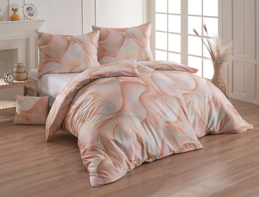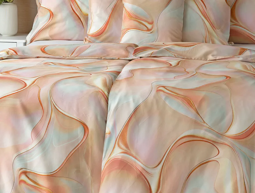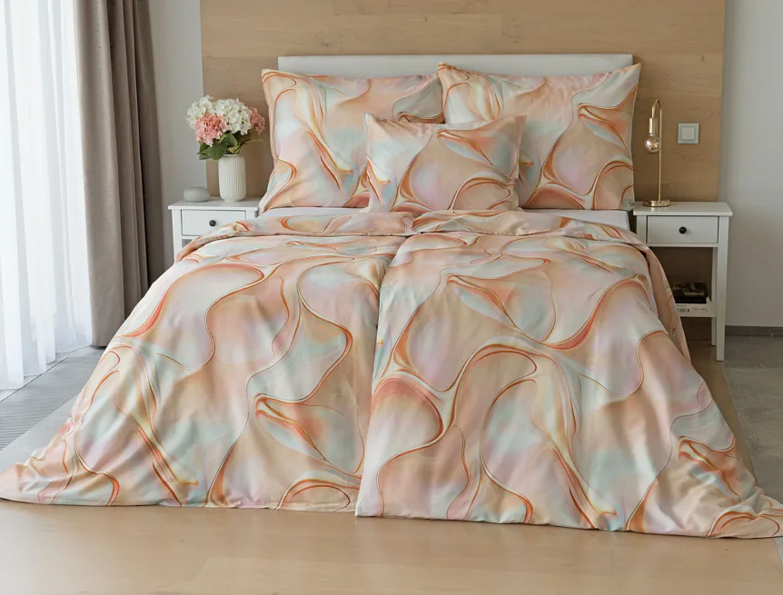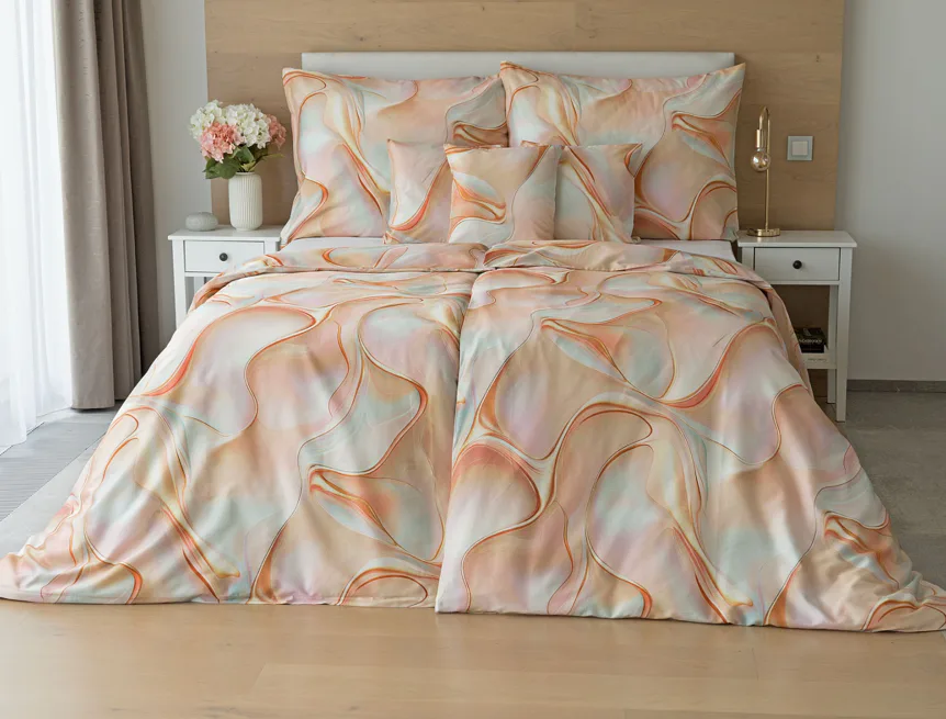 Nechte se uchvátit originálním designem bavlněného ložního povlečení Amulet. V abstraktním vzoru se snoubí celá paleta atraktivních růžových a meruňkových tónů protnutých oranžovými a žlutými konturami autorského návrhu. Díky nejmodernějšímu digitálnímu tisku vynikají barevné přechody i ostré prvky v precizním detailu. Eleganci vzoru podtrhuje hebký bavlněný satén s decentním leskem.