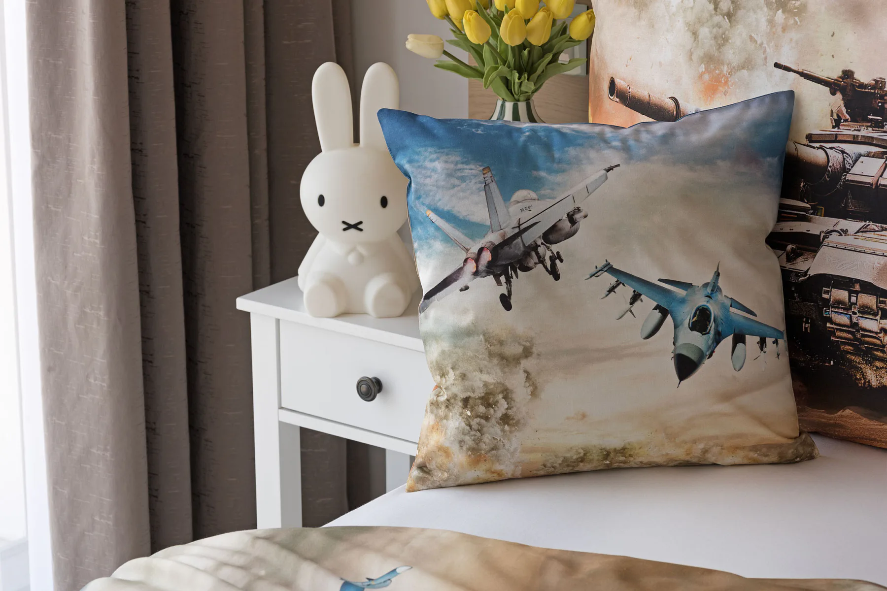 Proměňte dětský pokoj v akční bojiště plné dobrodružství! Stylové bavlněné povlečení Army s dynamickým motivem vojenské techniky nadchne všechny malé (i větší) fanoušky letadel, vrtulníků a terénních vozidel. Realistický digitální potisk vtáhne dítě přímo do děje a podpoří jeho fantazii i chuť k objevování.