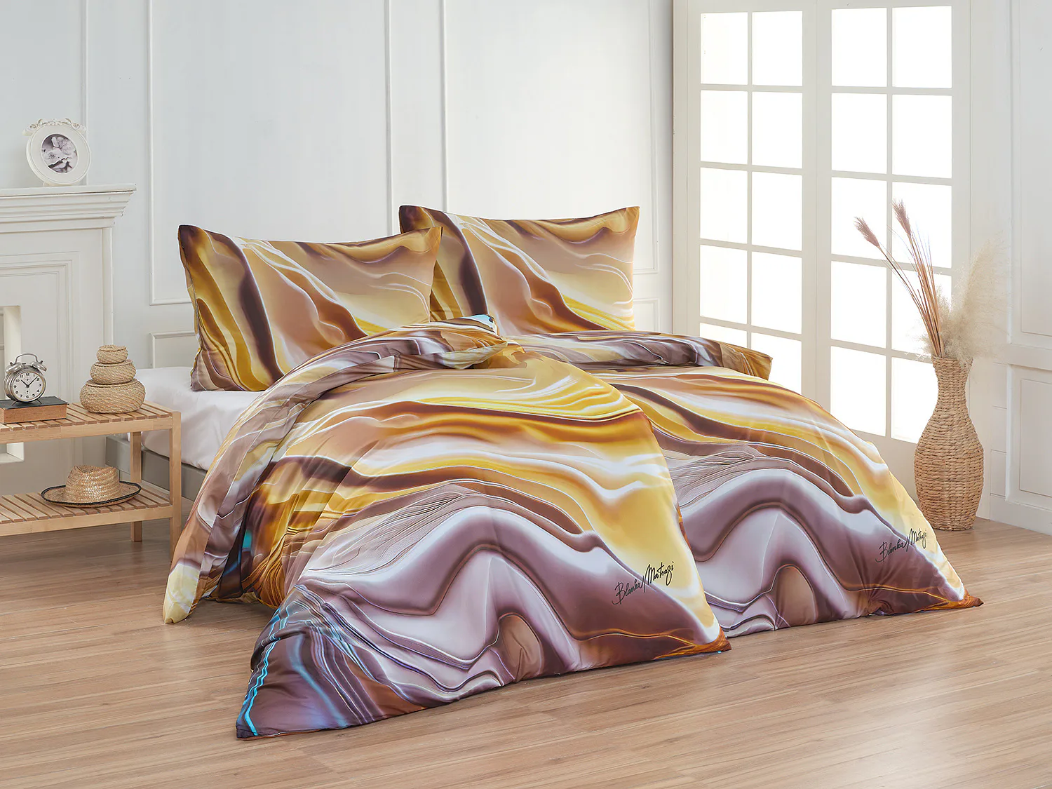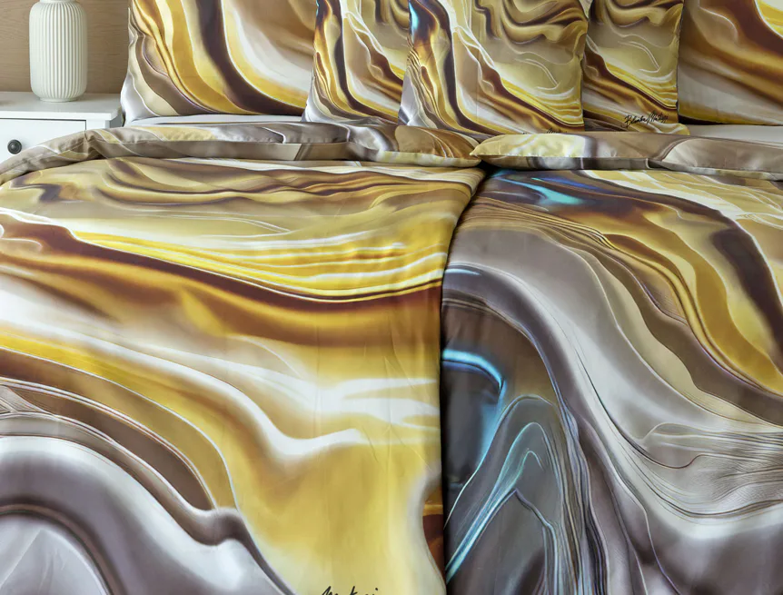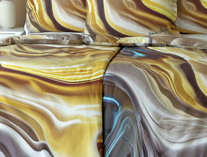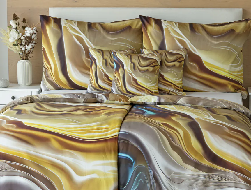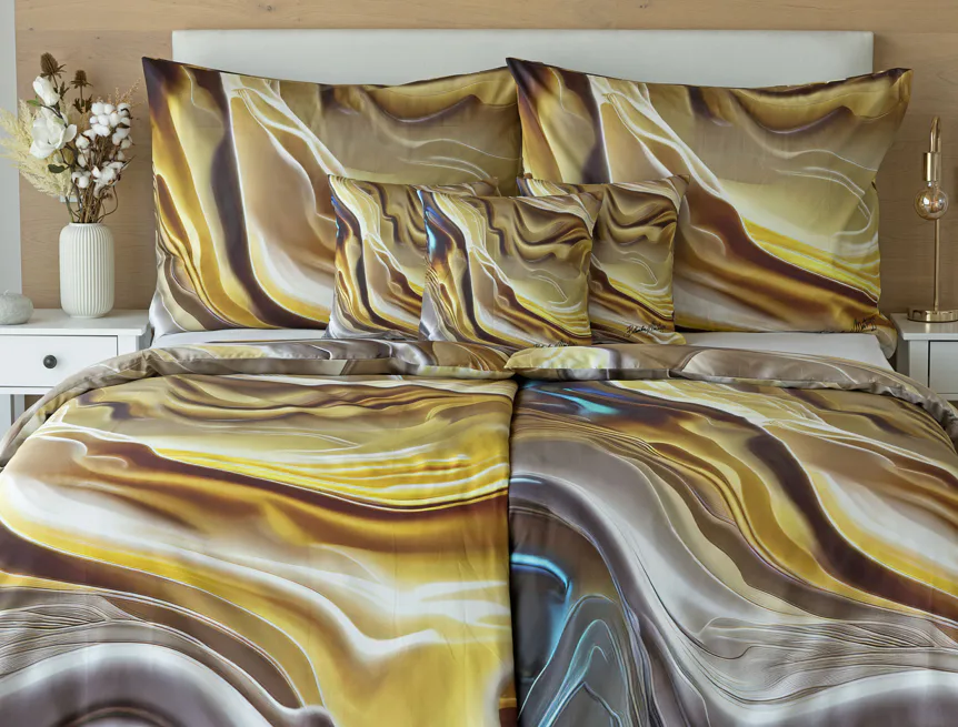 Tento autorský digitálně zpracovaný motiv v sobě snoubí hřejivé odstíny zlaté, béžové a hnědé barvy. Nejmodernější digitální tisk zajišťuje věrný detail přesně dle autorčina záměru, motiv je z obou stran povlečení stejný.