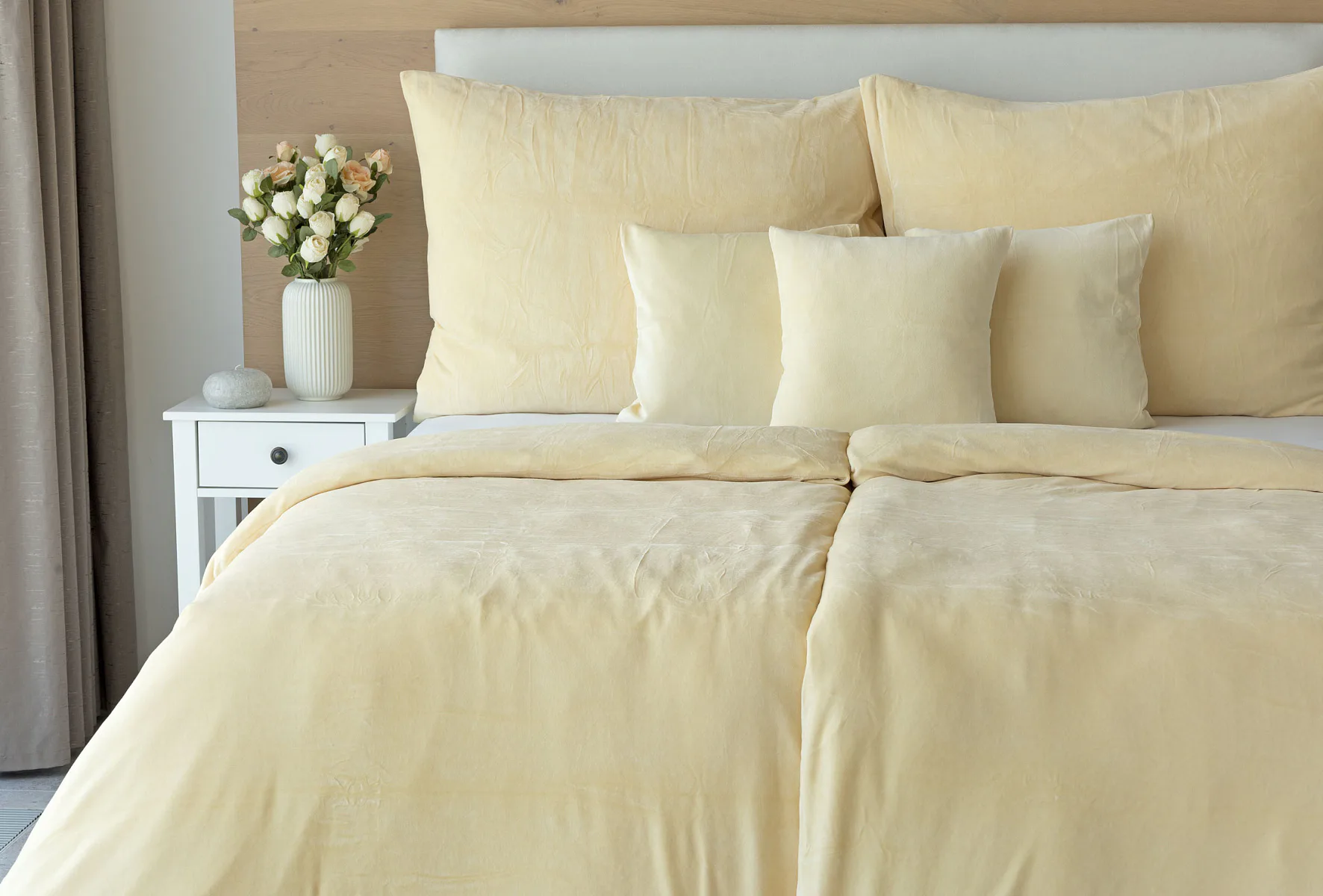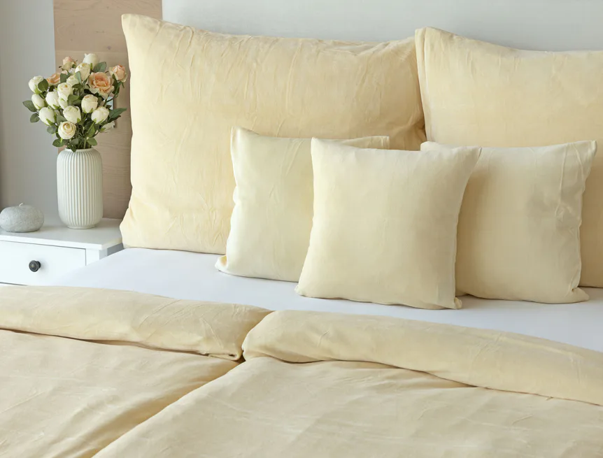 Údržba: Povlečení doporučujeme prát při teplotě 40°C. Nová vylepšená struktura umožňuje sušení v sušičce, která při prvním praní snadno odstraní zbytková vlákna z výroby. Tím se minimalizuje počáteční sklon k "prášení", který je u velurových tkanin běžný. Velurové povlečení je nenáročné na údržbu a nevyžaduje žehlení.