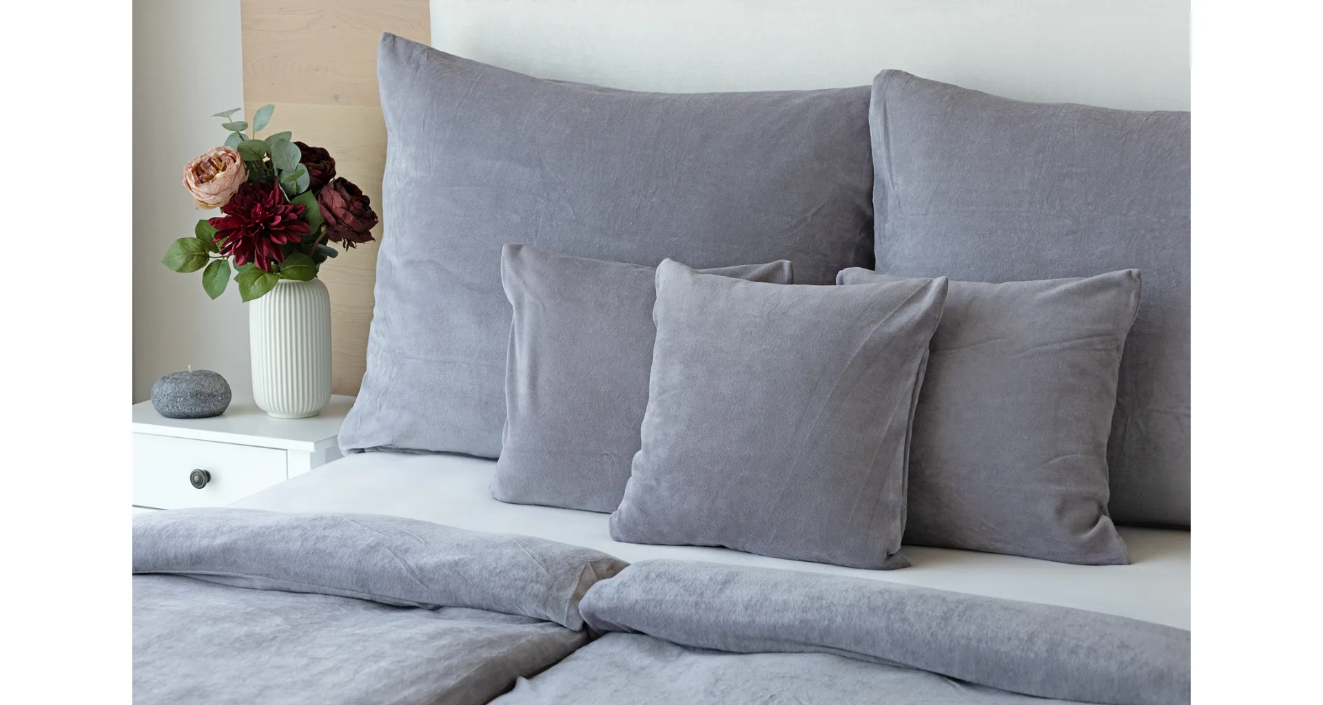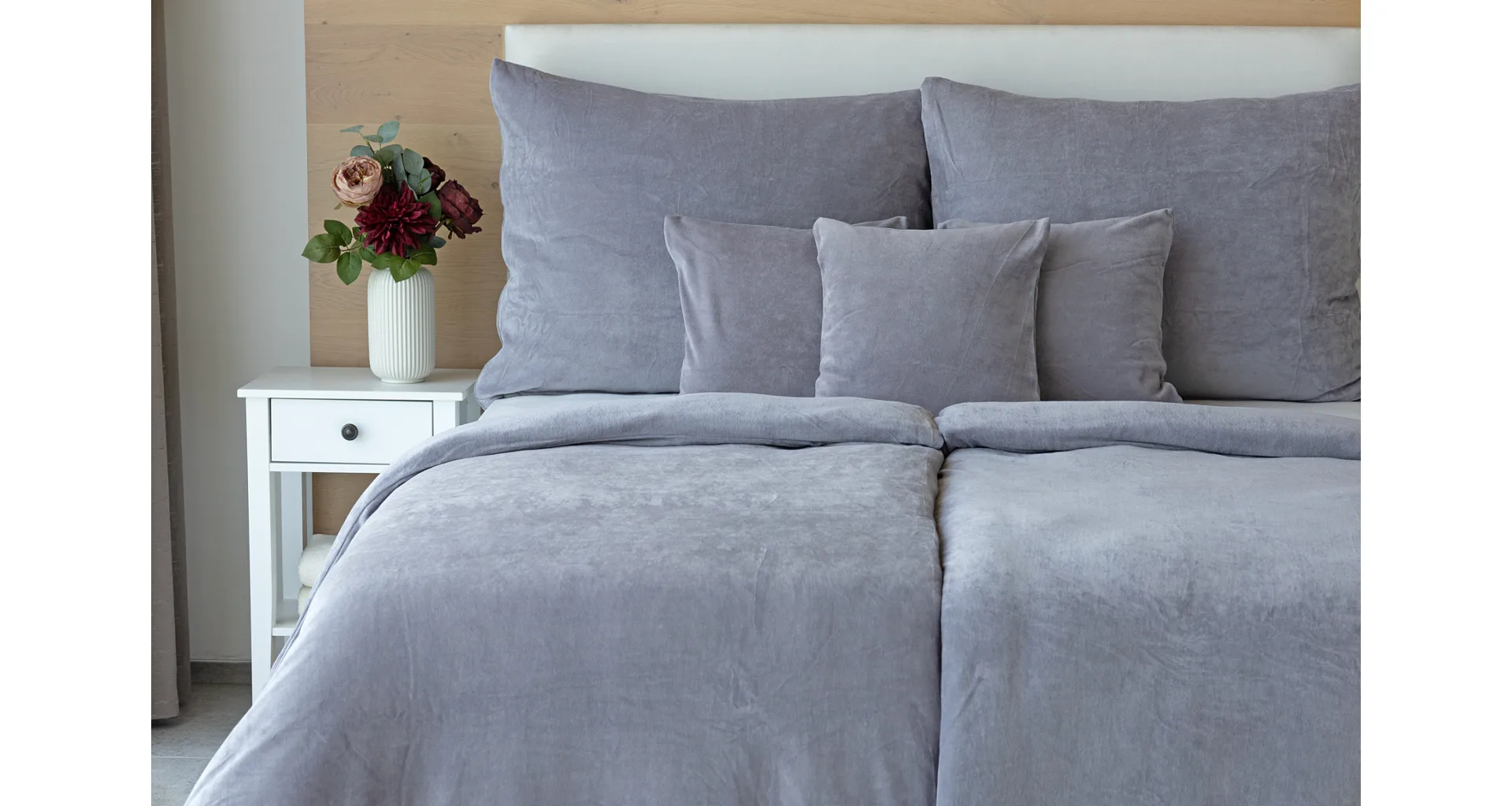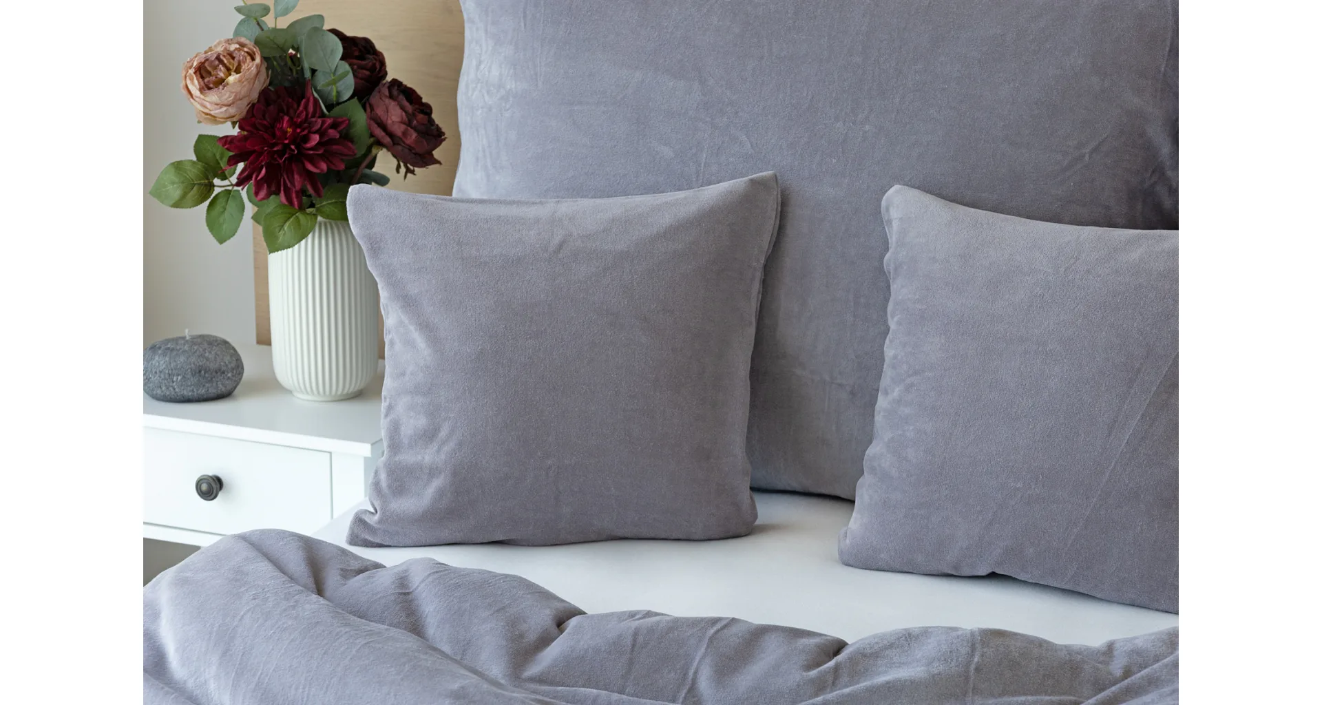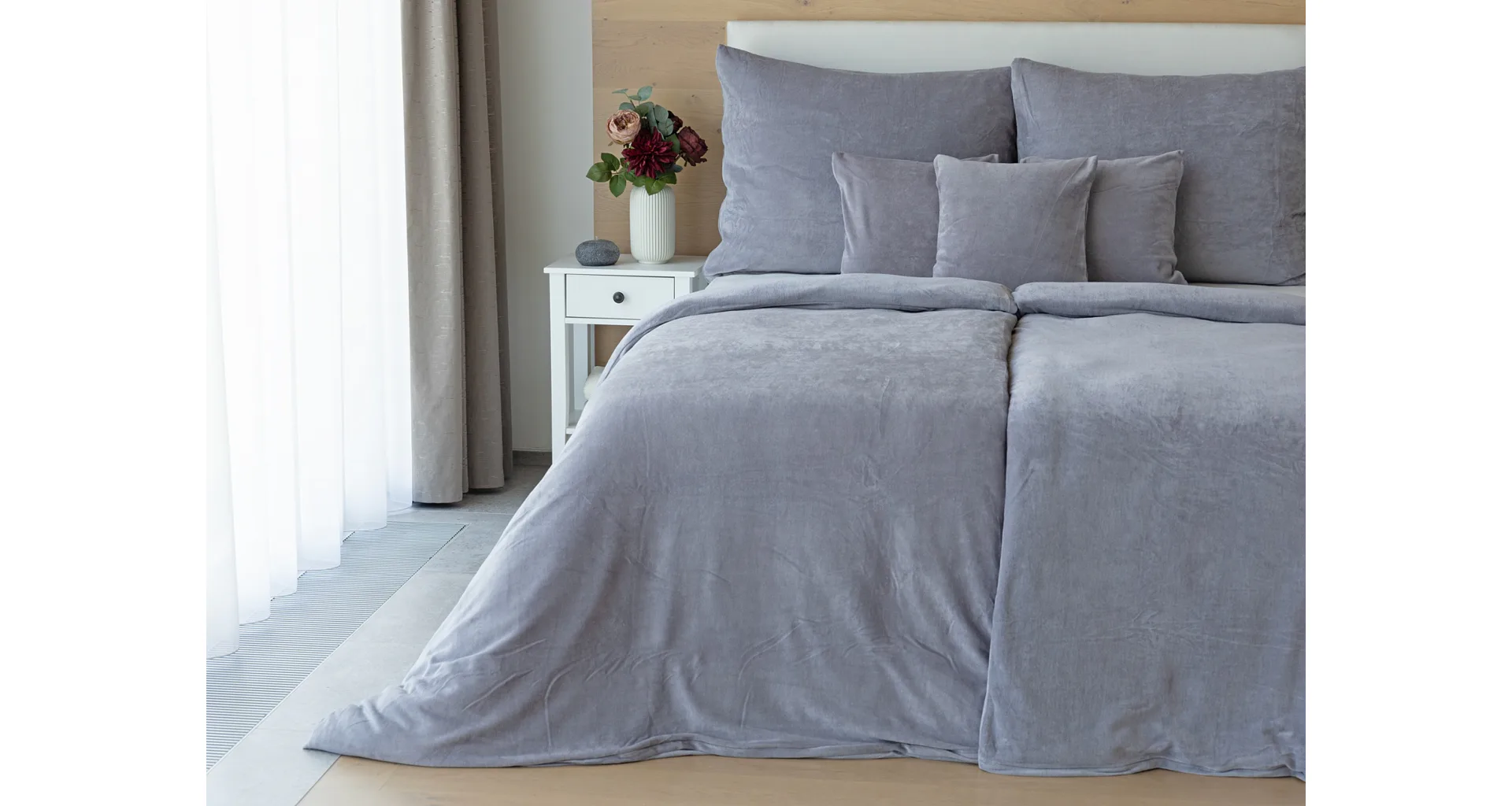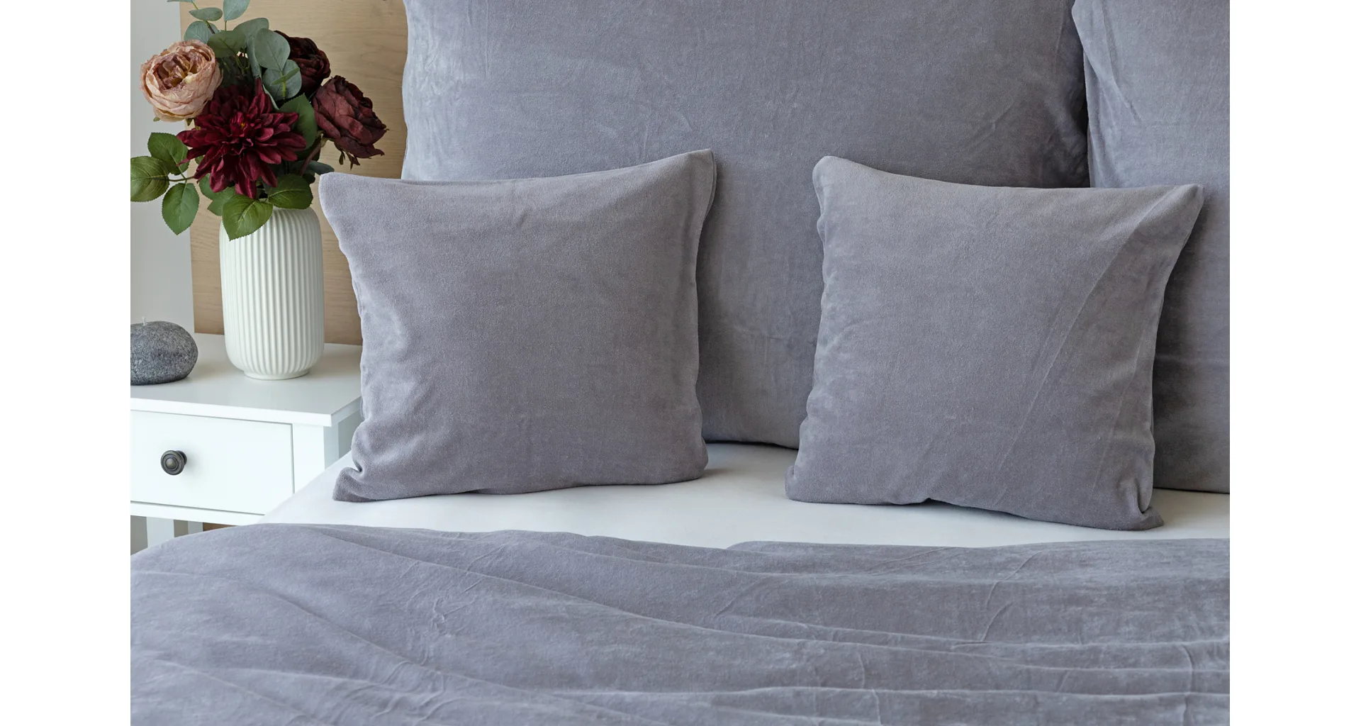 Bavlněný mikroplyš naší výroby se pyšní vysokým podílem bavlny (80%), kdy zbývajících 20% PE tvoří spodní strukturu pružné tkaniny. Velurové povlečení je nenáročné na údržbu a nevyžaduje žehlení. Kolekce velurového povlečení splňuje kritéria mezinárodní certifikace Oeko-Tex Standard 100.
