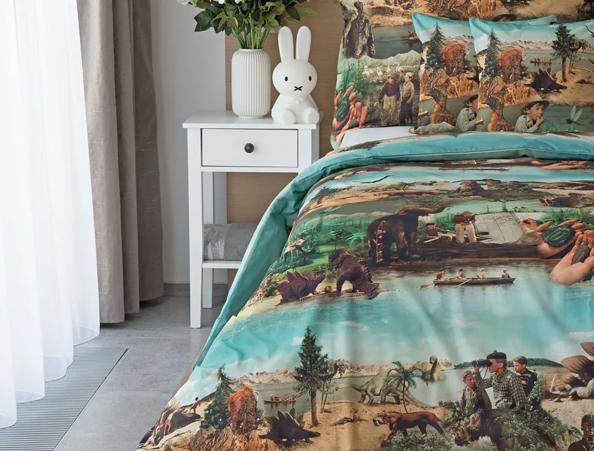 Vydejte se na napínavou výpravu do světa dávných dob s autorským motivem Cesta do pravěku, který promění každý dětský či studentský pokoj v místo plné fantazie a dobrodružství. Toto povlečení vybízí k objevování, snění i vlastním příběhům, které začínají pokaždé, když se uložíte ke spánku. O precizní detaily obrázků ze slavného československého filmu režiséra Karla Zemana se postarala nejmodernější digitální tisková technologie.