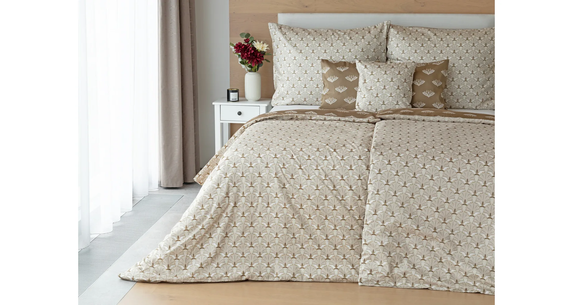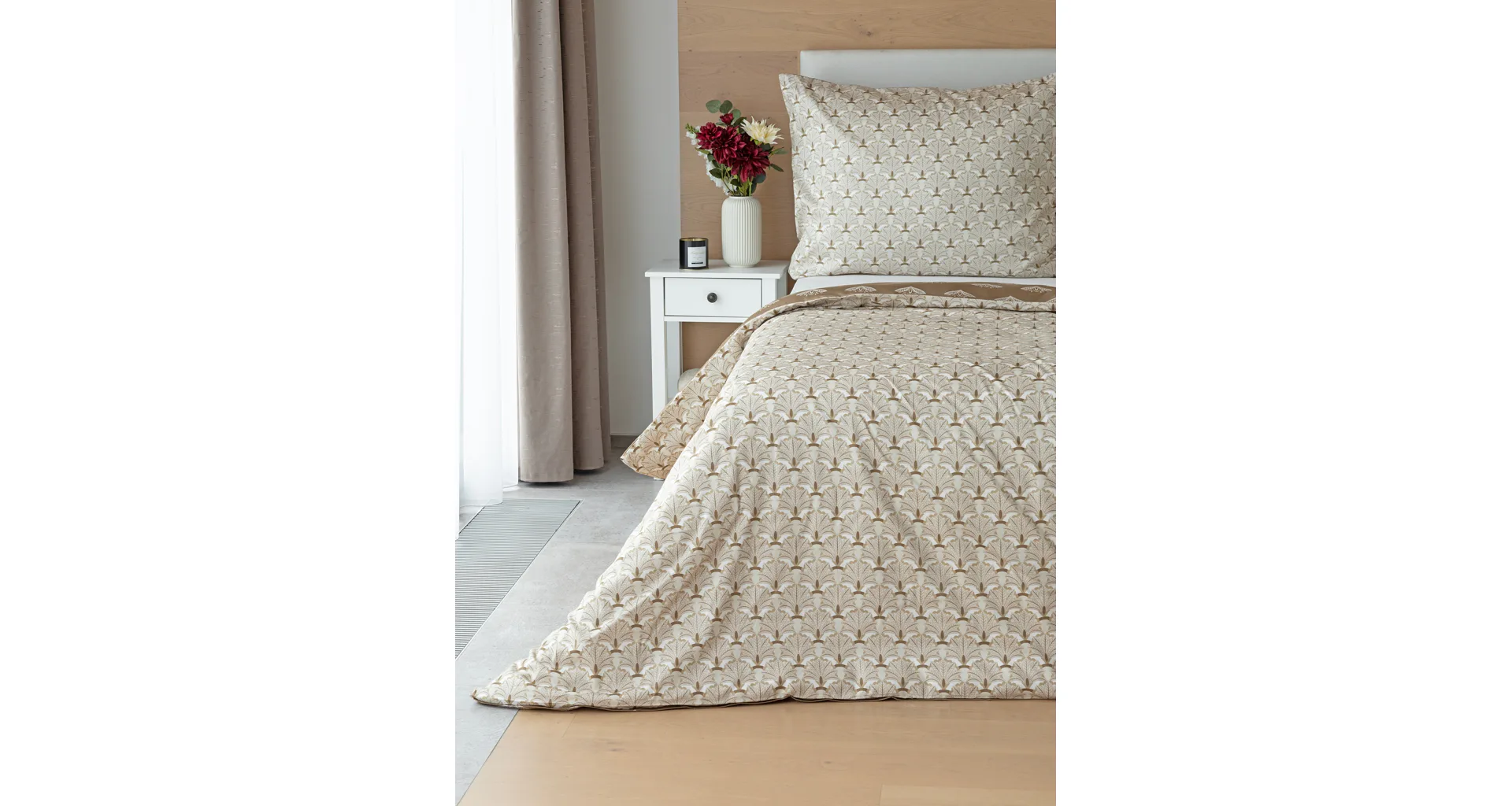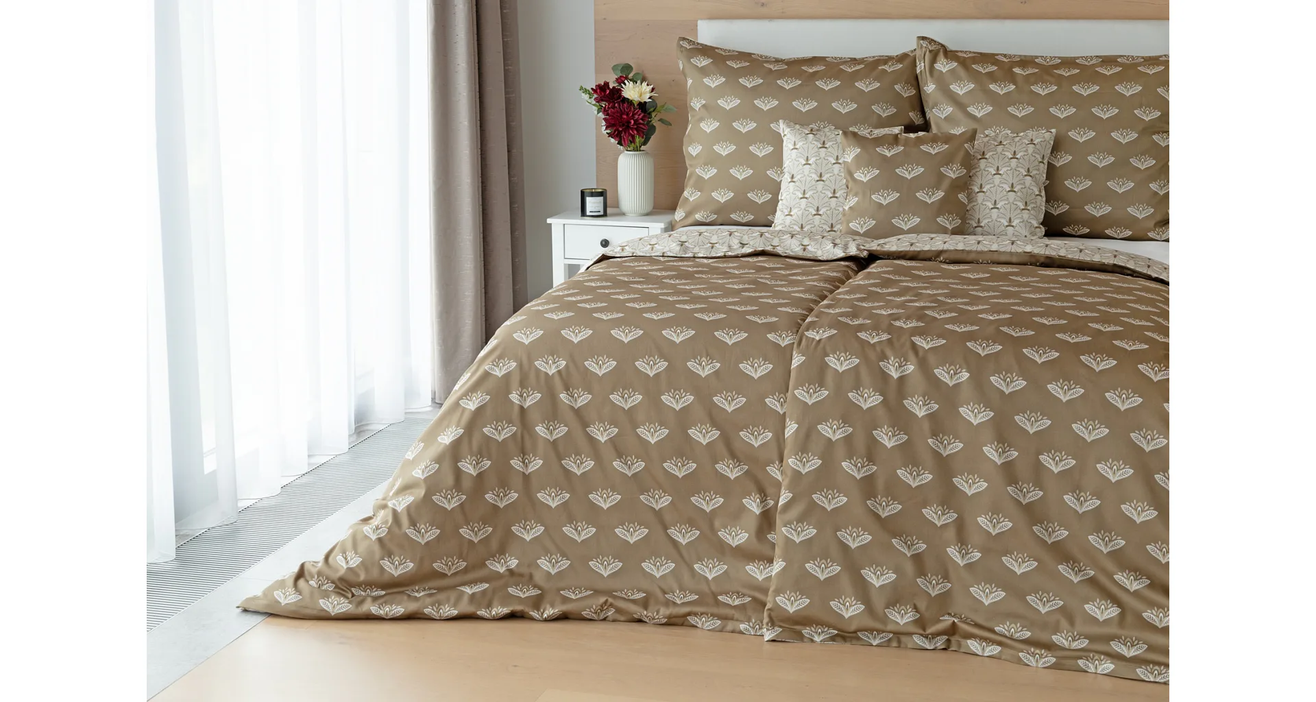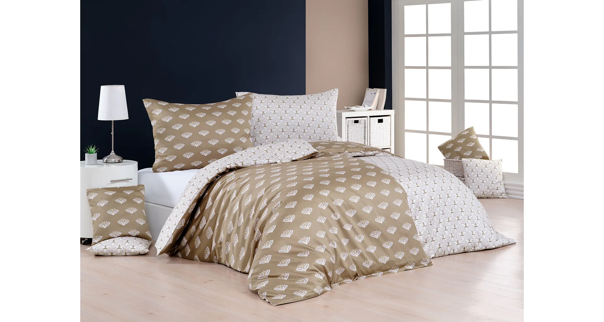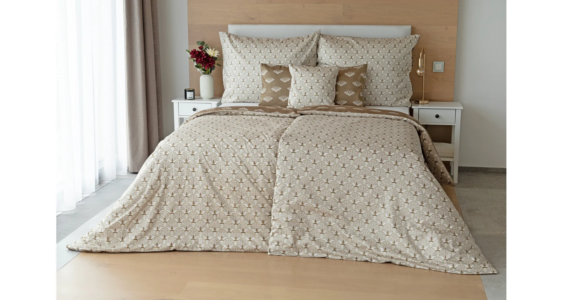 Elegantní saténové povlečení Dario se stane klenotem vaší ložnice. Noblesní vějířový vzor v kombinaci krémově bílé s tmavě bronzovou vyniká z každé strany povlečení na jiném podkladu. Díky tomuto oblíbenému oboustrannému provedení můžete při stlaní hravě experimentovat! O vaše pohodlí se postará hebký bavlněný satén vyrobený ze 100% prvotřídní bavlny.