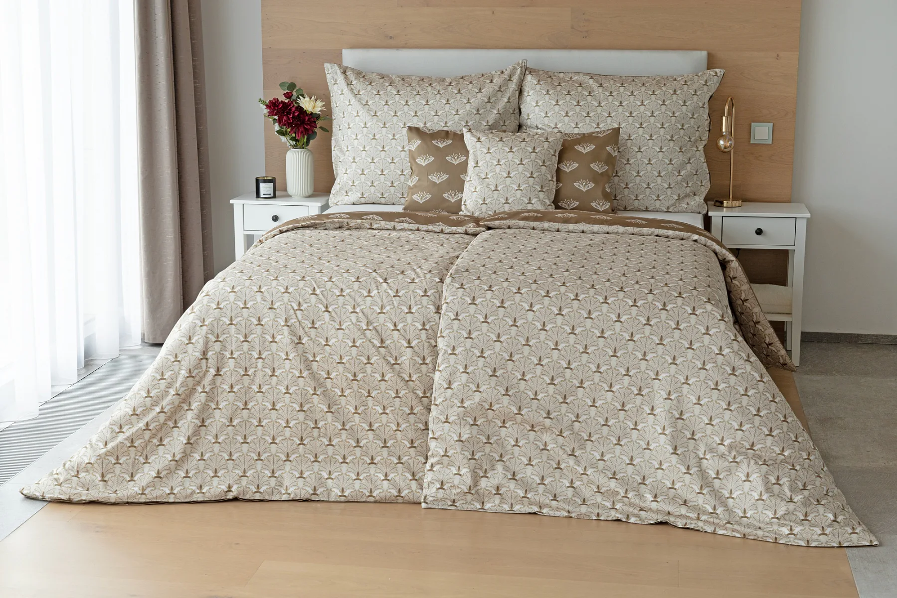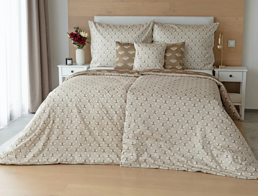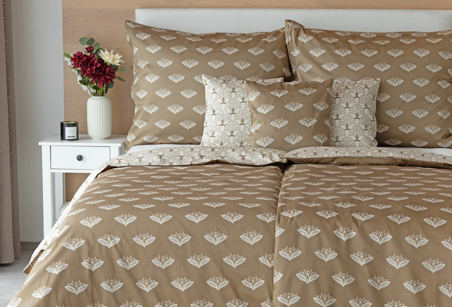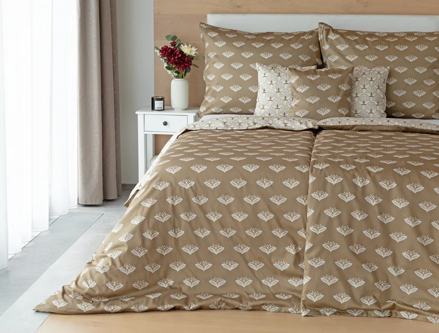 Elegantní saténové povlečení Dario se stane klenotem vaší ložnice. Noblesní vějířový vzor v kombinaci krémově bílé s tmavě bronzovou vyniká z každé strany povlečení na jiném podkladu. Díky tomuto oblíbenému oboustrannému provedení můžete při stlaní hravě experimentovat! O vaše pohodlí se postará hebký bavlněný satén vyrobený ze 100% prvotřídní bavlny.