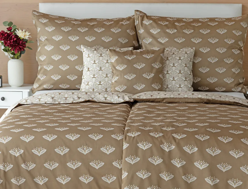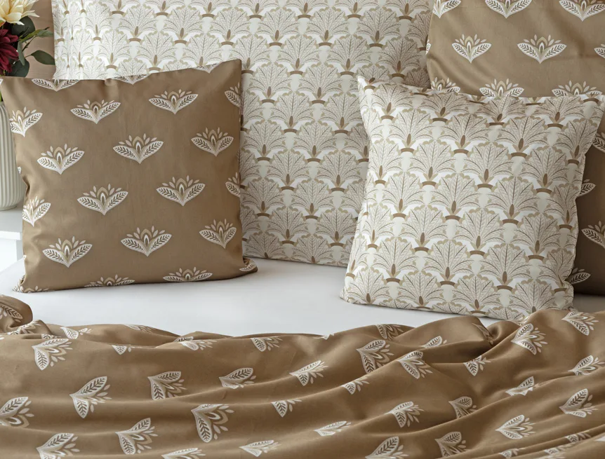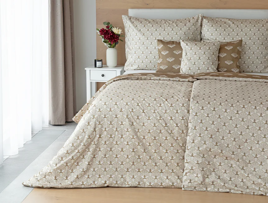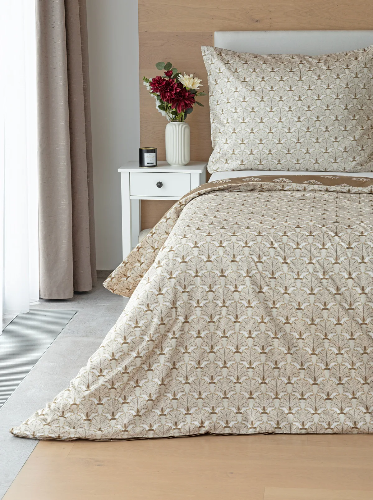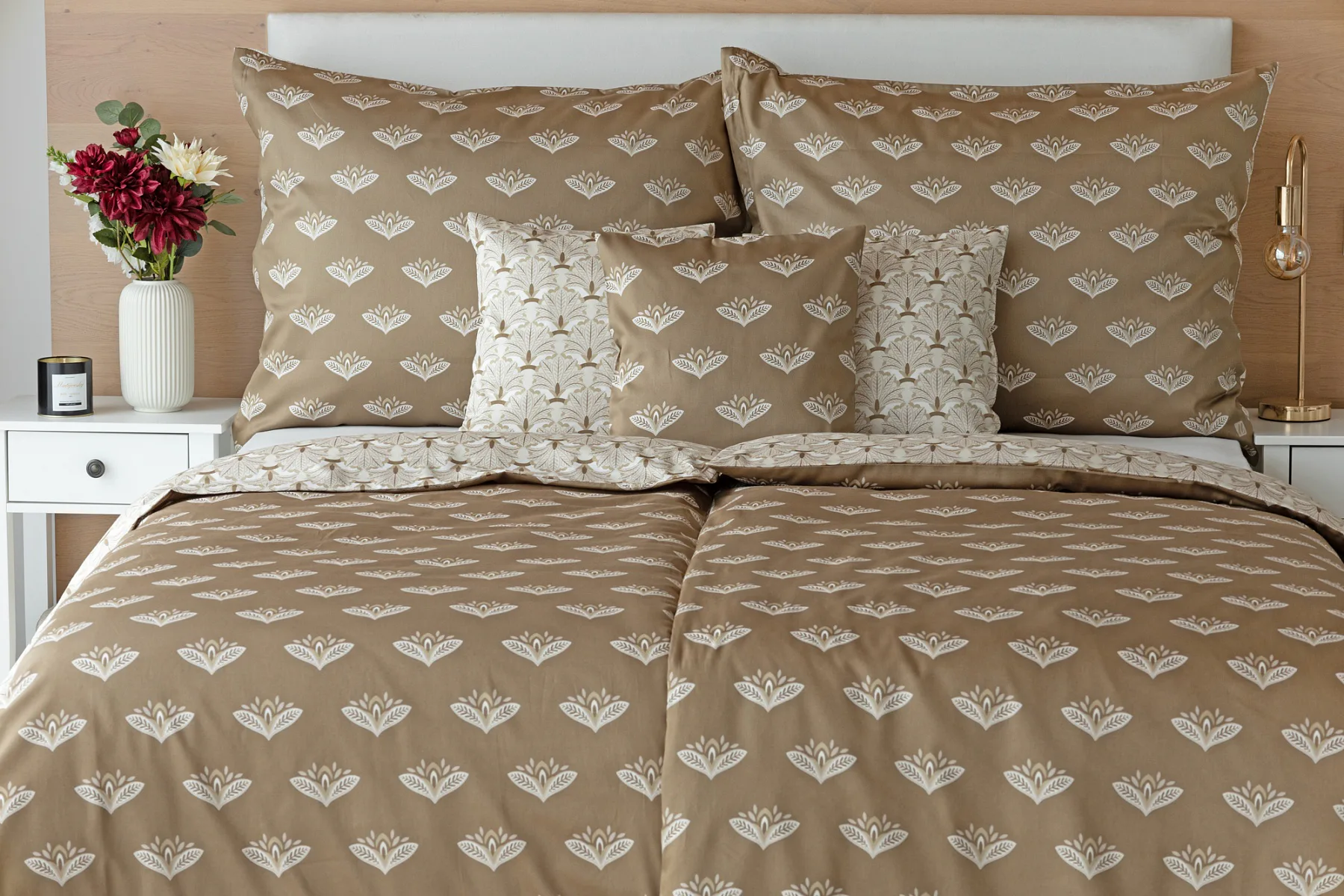 Elegantní saténové povlečení Dario se stane klenotem vaší ložnice. Noblesní vějířový vzor v kombinaci krémově bílé s tmavě bronzovou vyniká z každé strany povlečení na jiném podkladu. Díky tomuto oblíbenému oboustrannému provedení můžete při stlaní hravě experimentovat! O vaše pohodlí se postará hebký bavlněný satén vyrobený ze 100% prvotřídní bavlny.