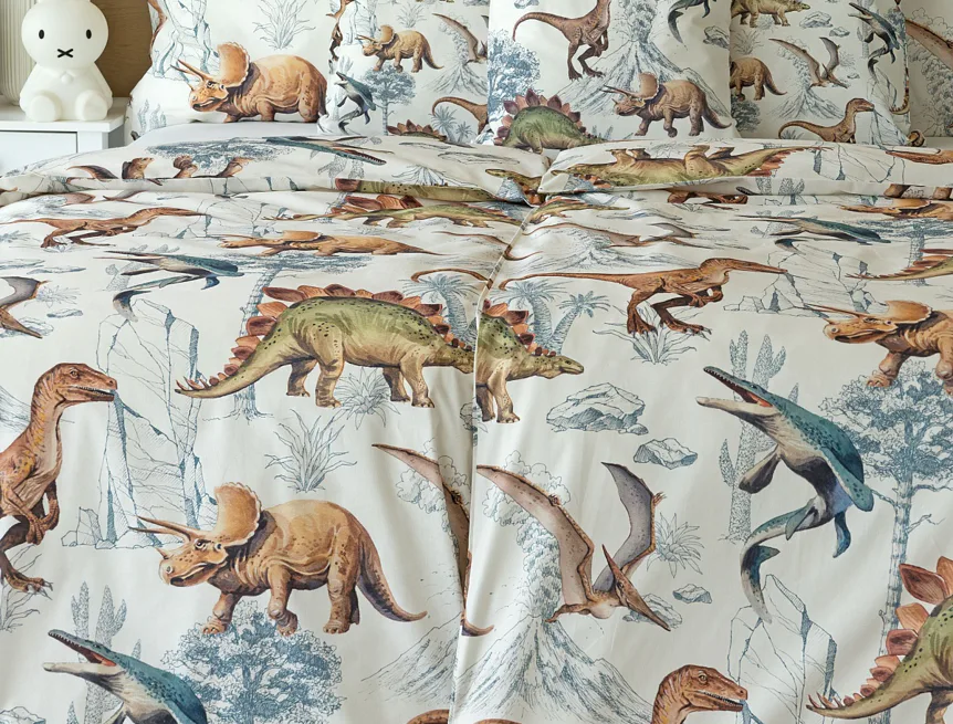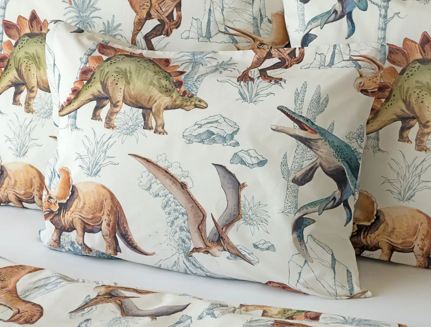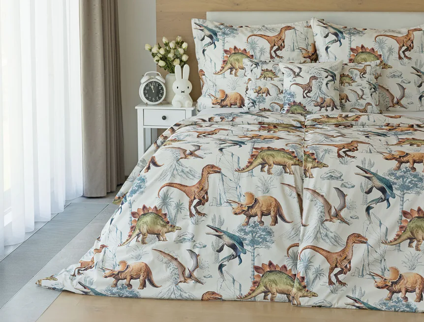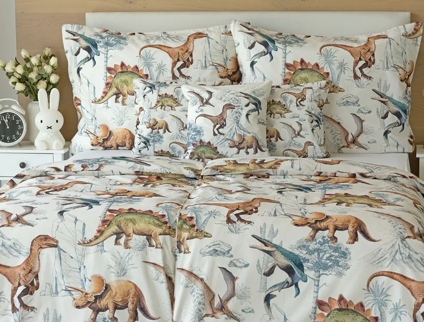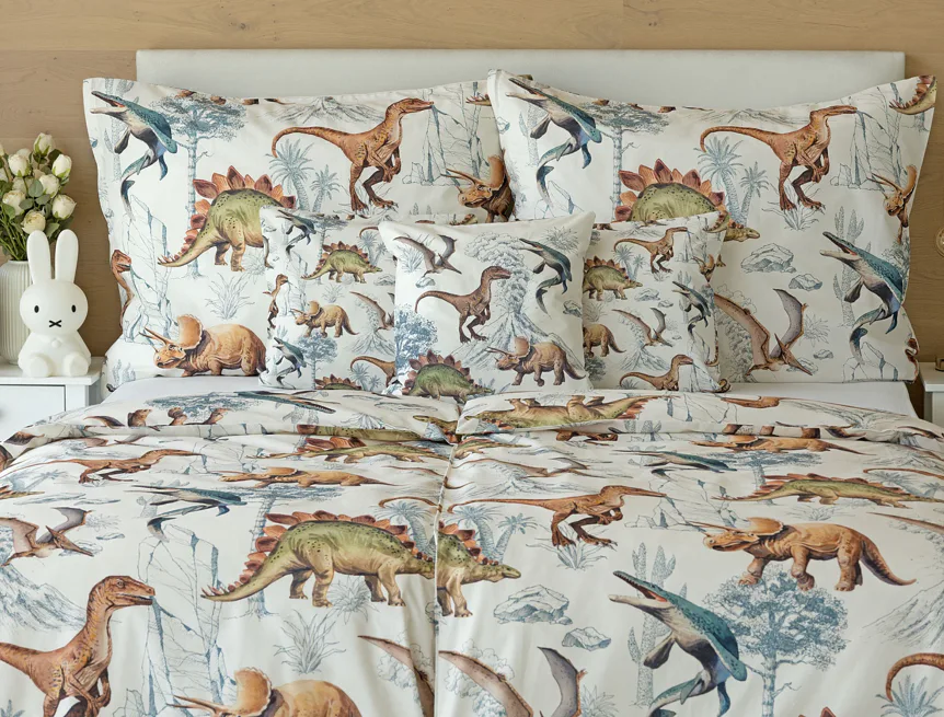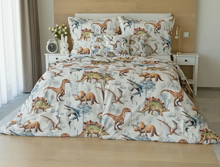 Bavlněné povlečení Dino Land potěší všechny malé i větší milovníky jurského období. Originální design je díky neutrální kombinaci barev vhodný do dívčího i chlapeckého pokoje. O jejich spokojený spánek se postará hebká prvotřídní bavlna.