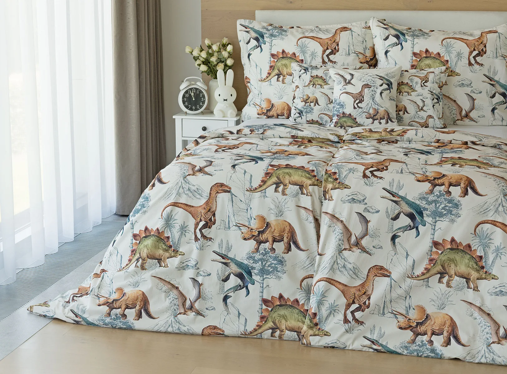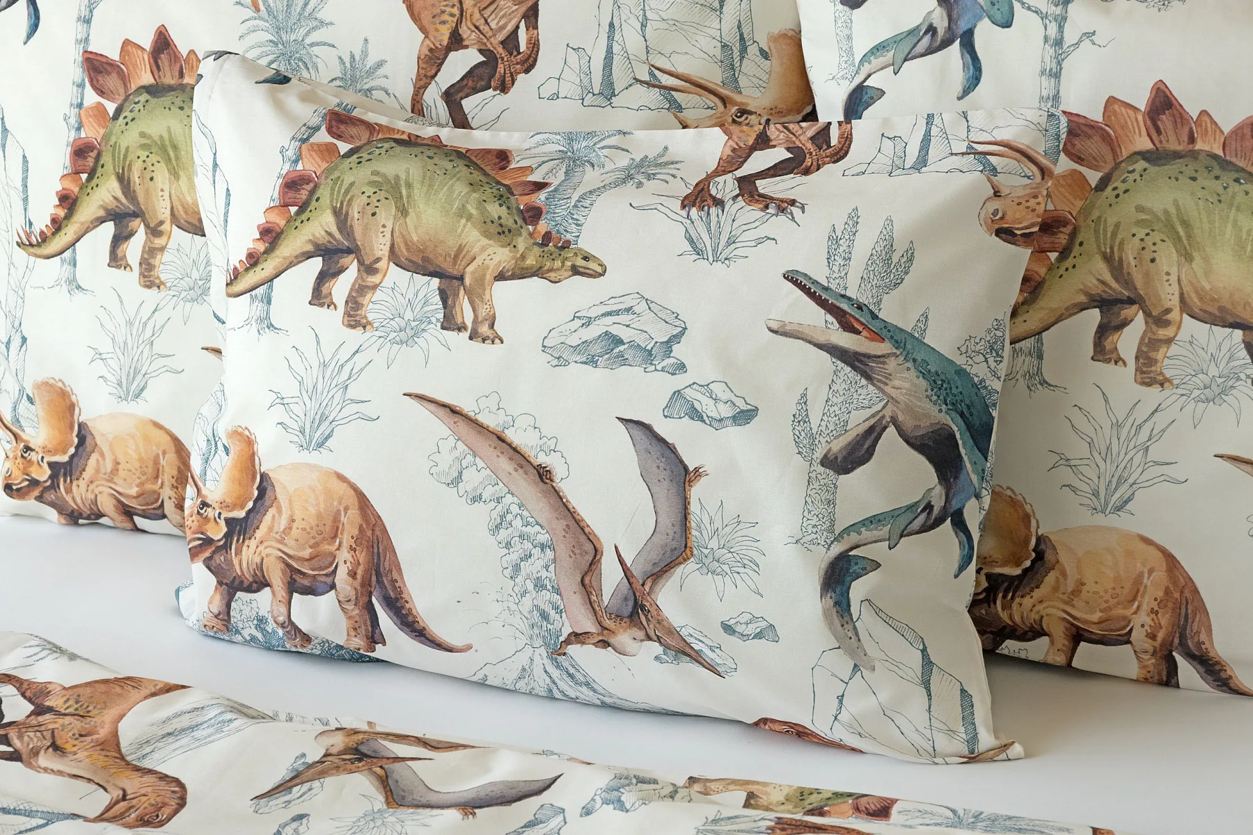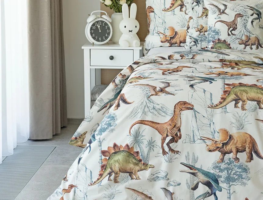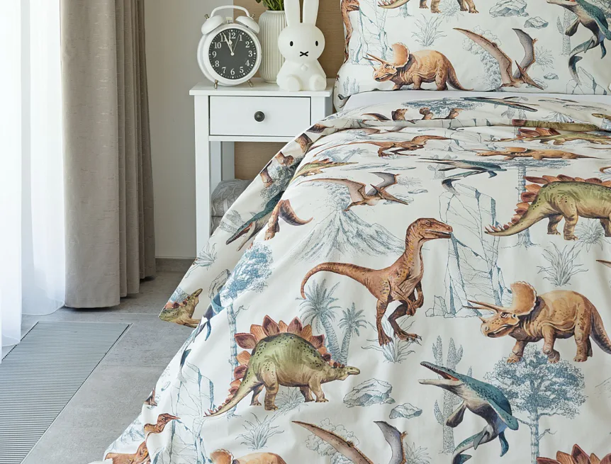 Bavlněné povlečení Dino Land potěší všechny malé i větší milovníky jurského období. Originální design je díky neutrální kombinaci barev vhodný do dívčího i chlapeckého pokoje. O jejich spokojený spánek se postará hebká prvotřídní bavlna.
