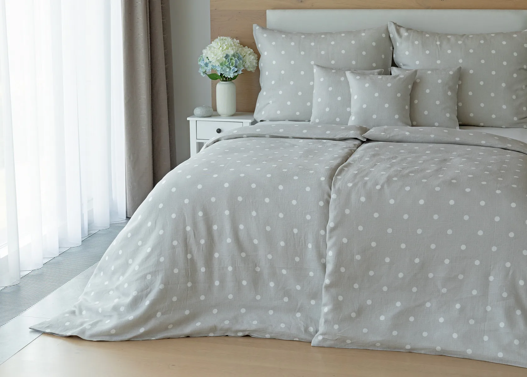 Objevte benefity jedinečného přírodního materiálu a dopřejte si nezaměnitelný komfort s naším lněným povlečením Dotté. Vzor s jemnými puntíky je jako stvořený pro tento ekologicky šetrný materiál a doladí k dokonalosti každý interiér s rustikálním nádechem. Podklad ložního povlečení není jednobarevný! Tvoří ho drobné malé tečky, které ladí vzor Dotté do přírodního šedého tónu.