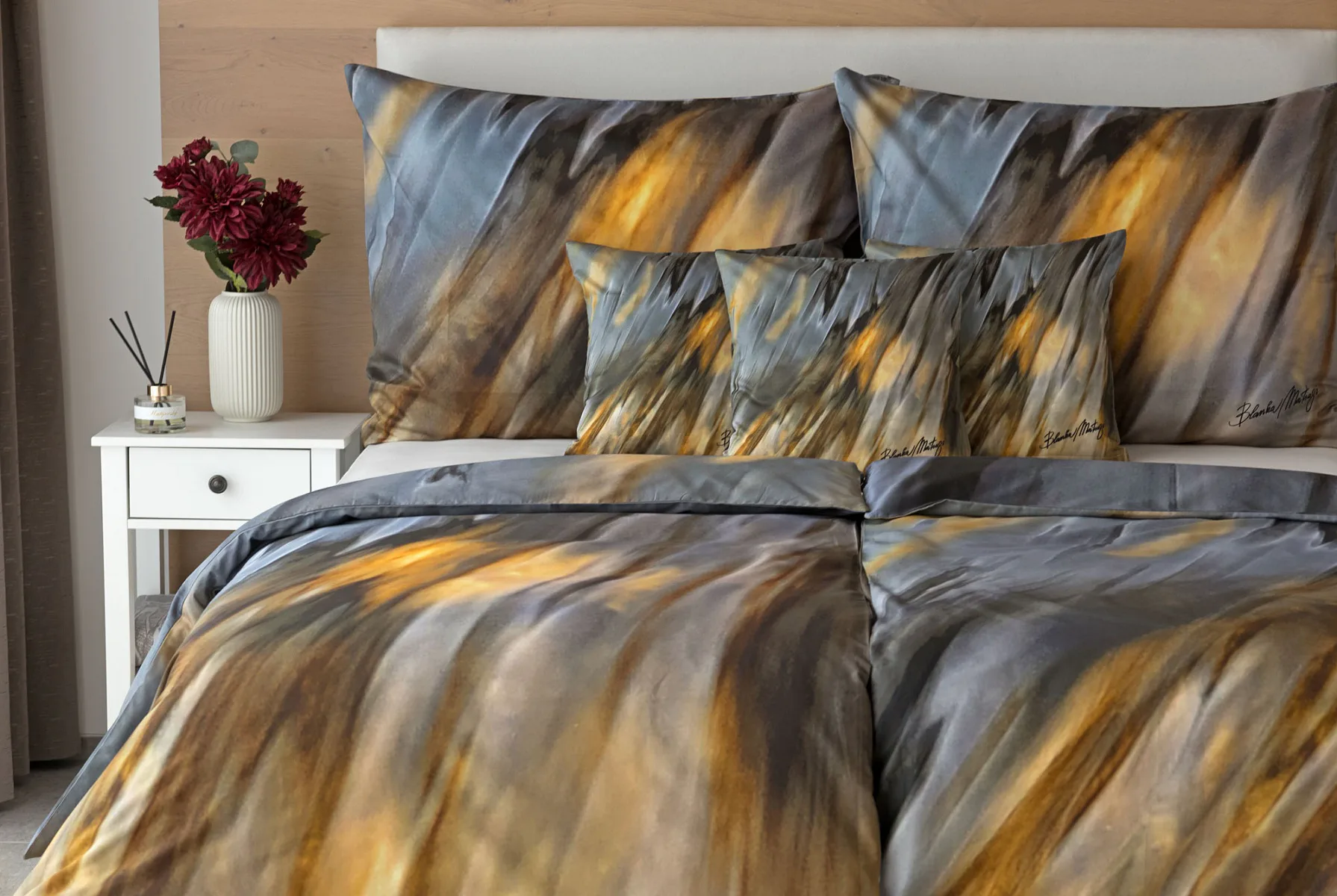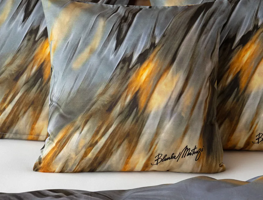 Inspirujte se limitovanou edicí povlečení na motivy kolekce ELEMENTS uznávané módní návrhářky Blanky Matragi. Sama umělkyně tuto kolekci charakterizuje jako oslavu života a návrat ke kořenům. Elegantní, ale přesto velmi odvážné a promyšlené motivy vyzařují autorské inovační nápady a na první pohled zaujmou optickými iluzionistickými prvky.