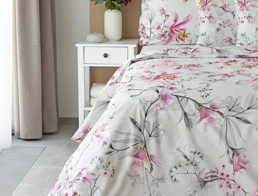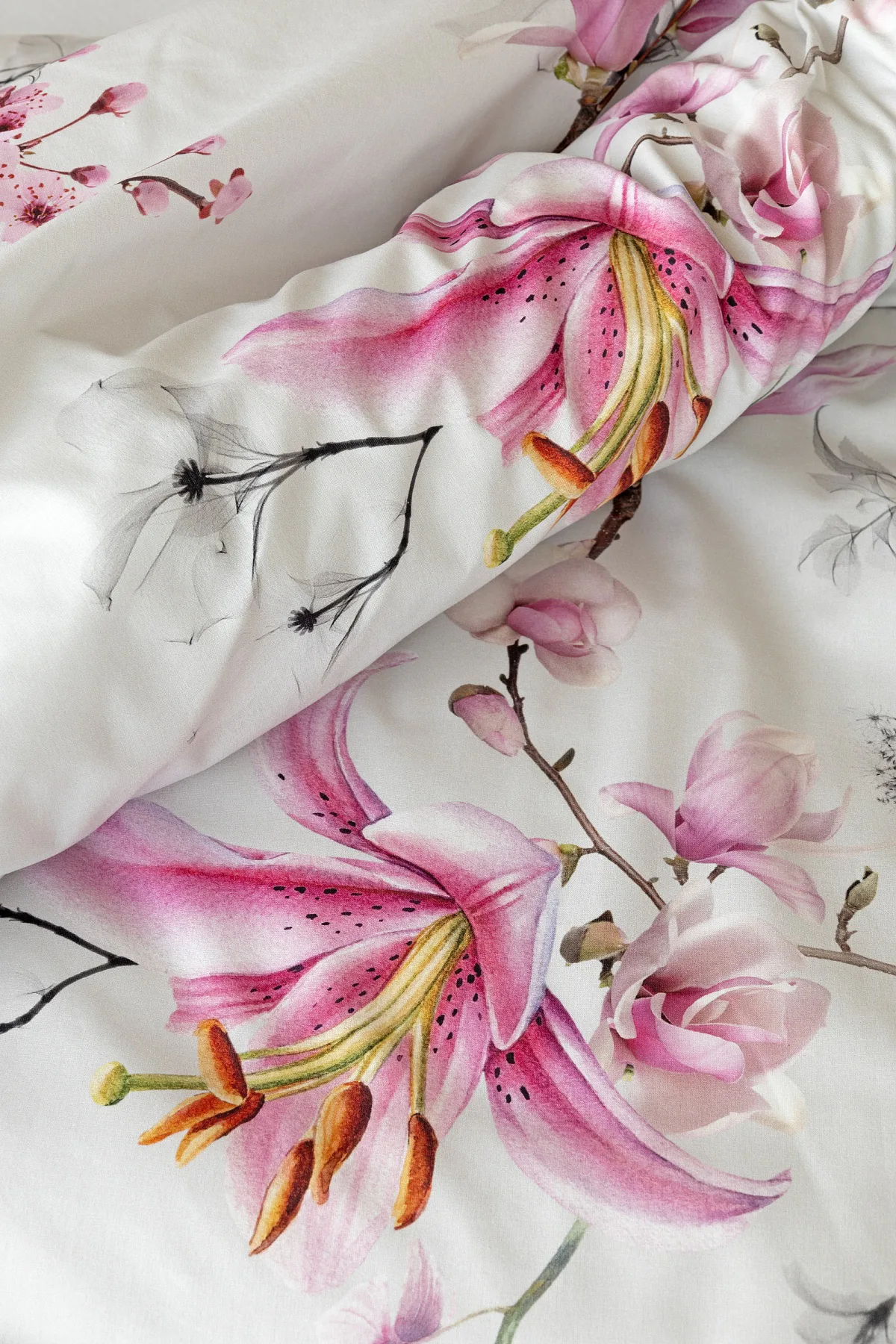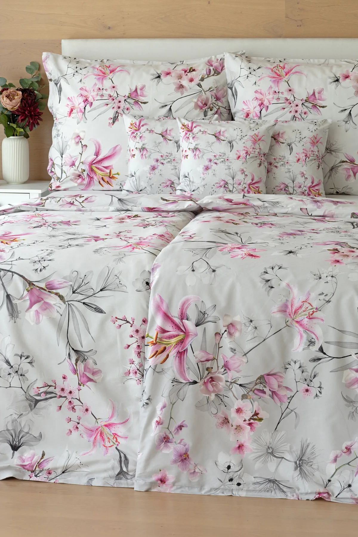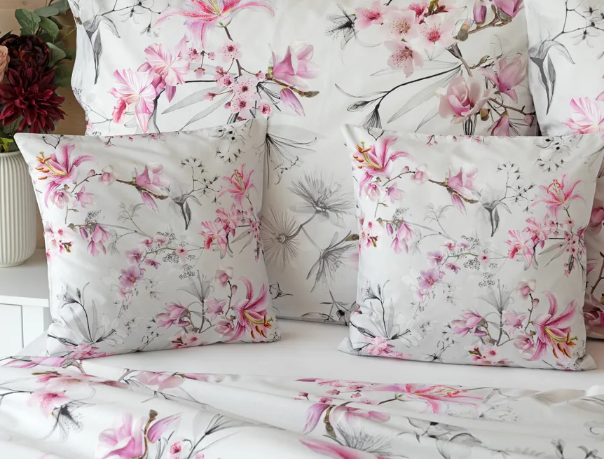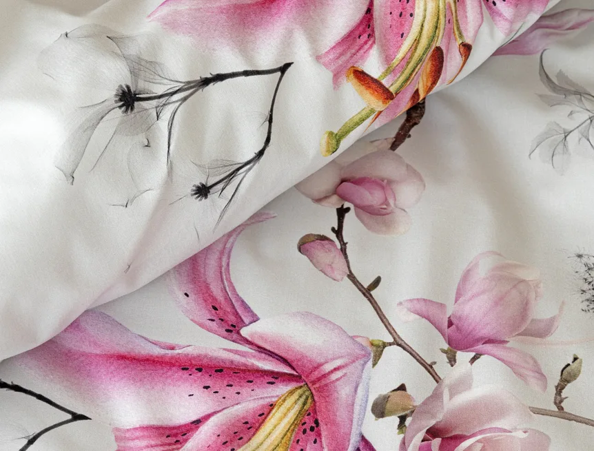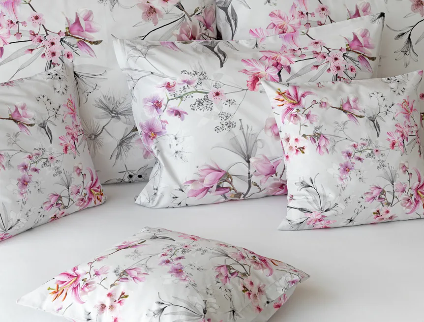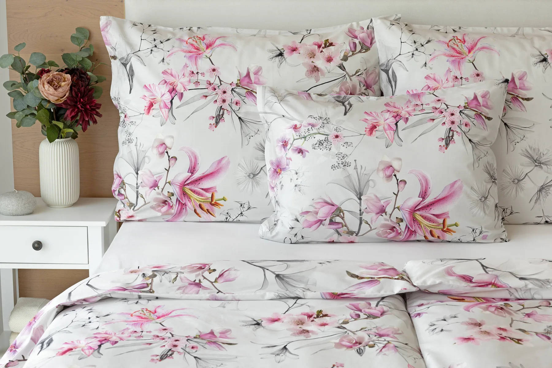 Obklopte se jemností a elegancí s bavlněným povlečením Elisse. Okouzlující vzor kombinuje květy exotických orchidejí a něžných lilií v růžovofialových tónech na světle šedém podkladu. Povlečení je vyrobeno ze 100% prvotřídní bavlny a přináší nejen estetickou hodnotu, ale i výjimečný komfort.
