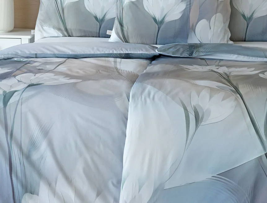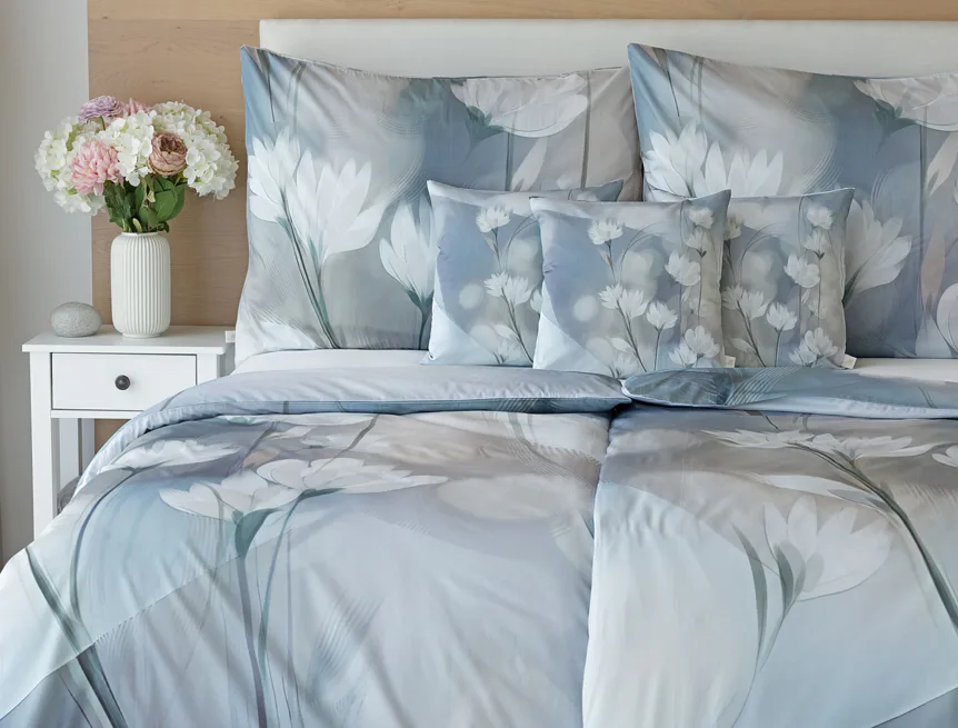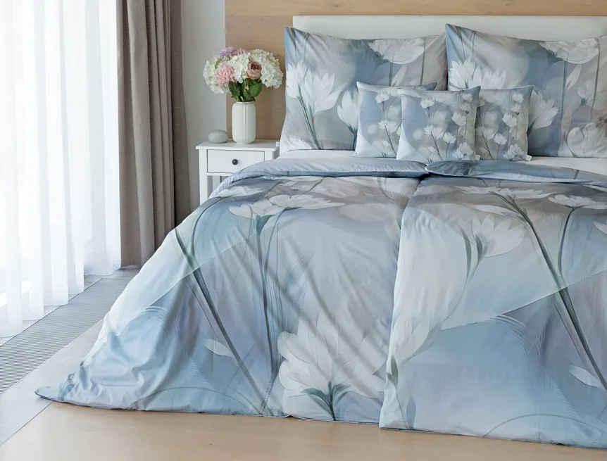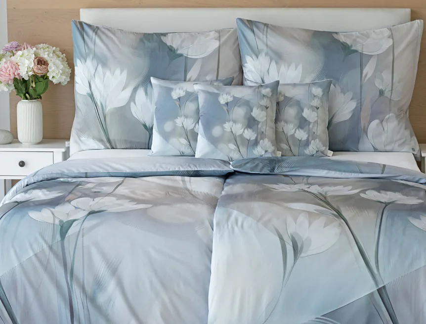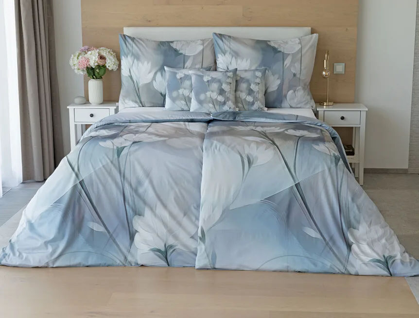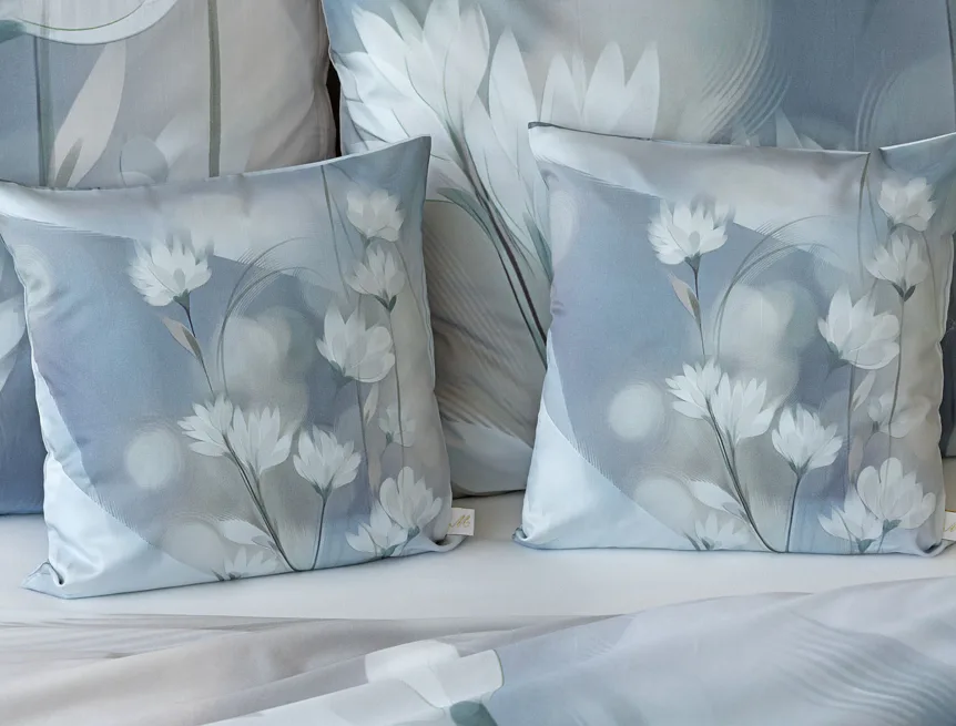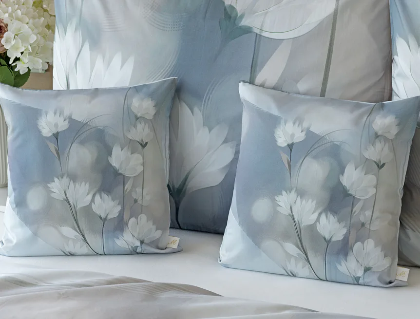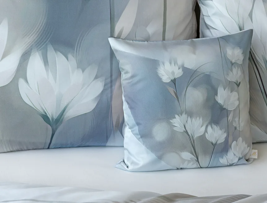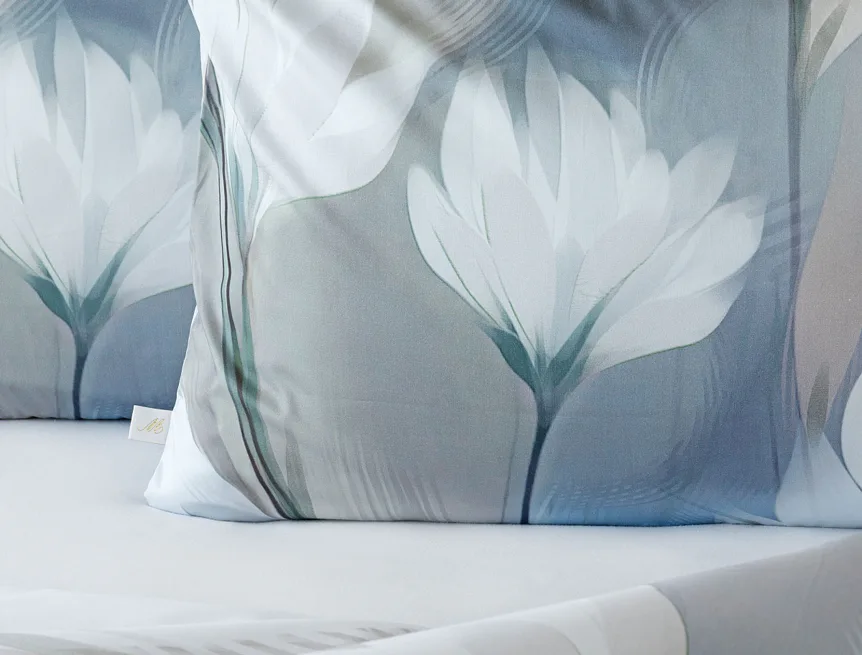 Vzoru Eloise dominuje atraktivní florální motiv v paletě modrých a tlumených pudrových tónů. Povlak na polštář i na přikrývku je z obou stran stejný, vrchní stranu povlaku na polštář zdobí malé logo "M" v pravém dolním rohu. Povlečení je opatřeno komfortním zipovým uzávěrem.