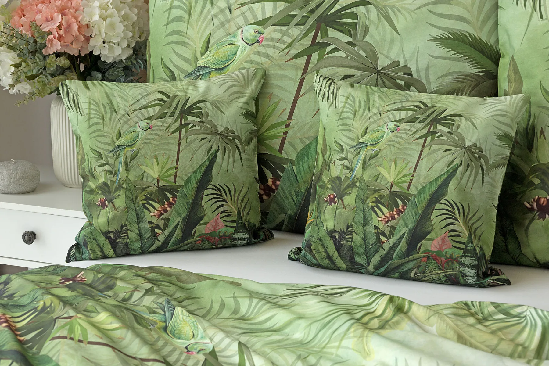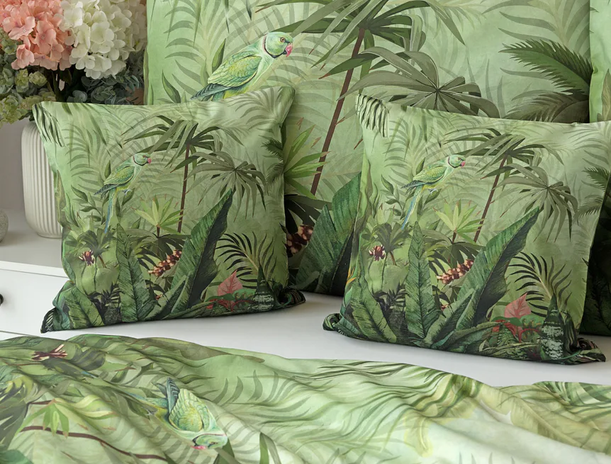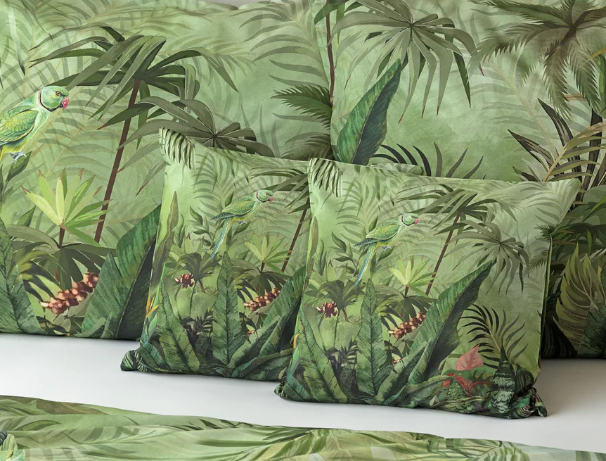 Pokud zrovna nejste na dovolené, nic si z toho nedělejte. S ložním povlečením Exotica si můžete vytvořit vlastní oázu svěžesti a pohody doma v ložnici. Exotický motiv v pestré paletě zelených tónů vyzařuje pozitivní energii, se kterou se budete probouzet do krásných letních dnů.
