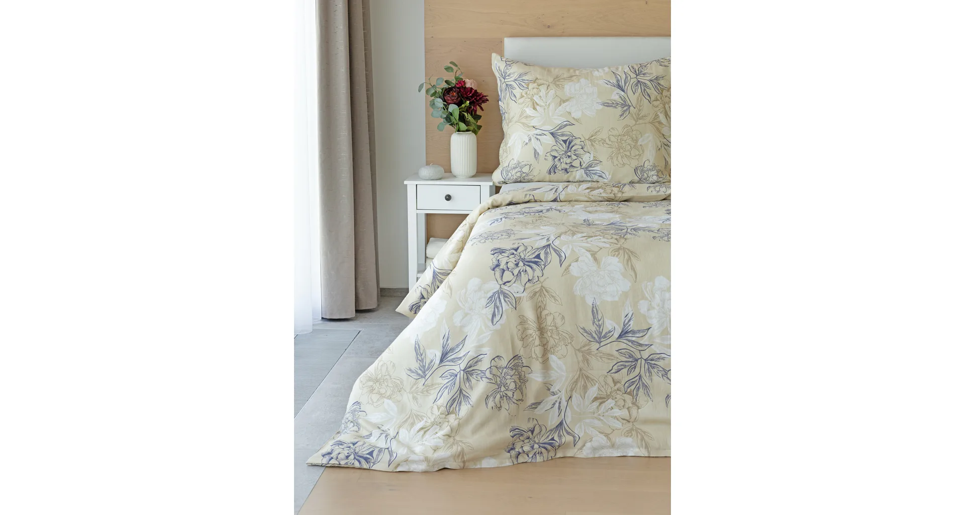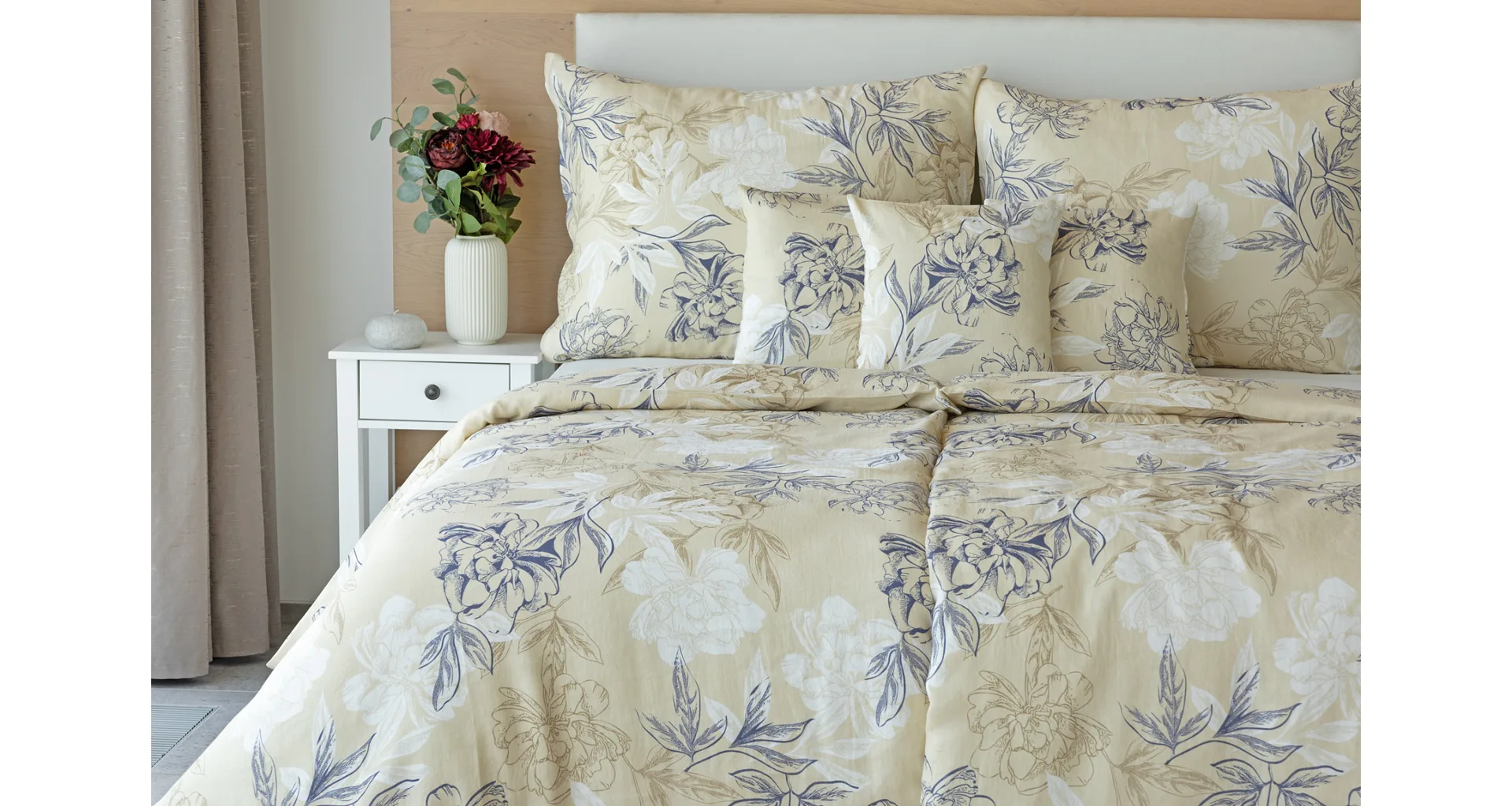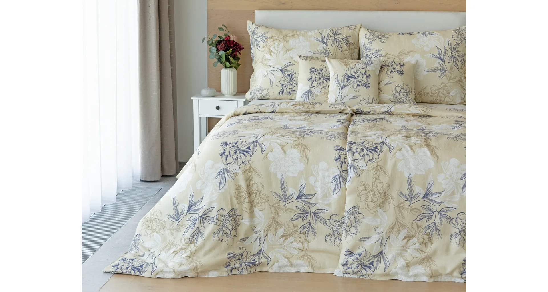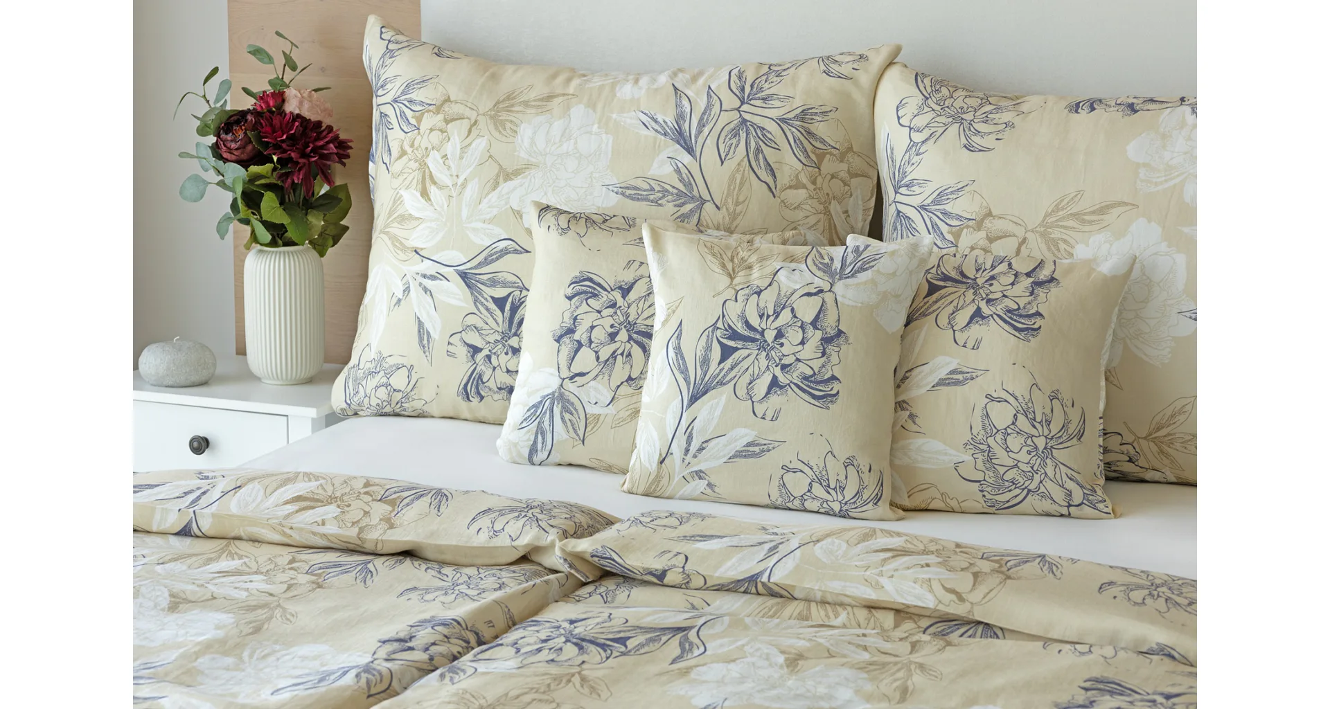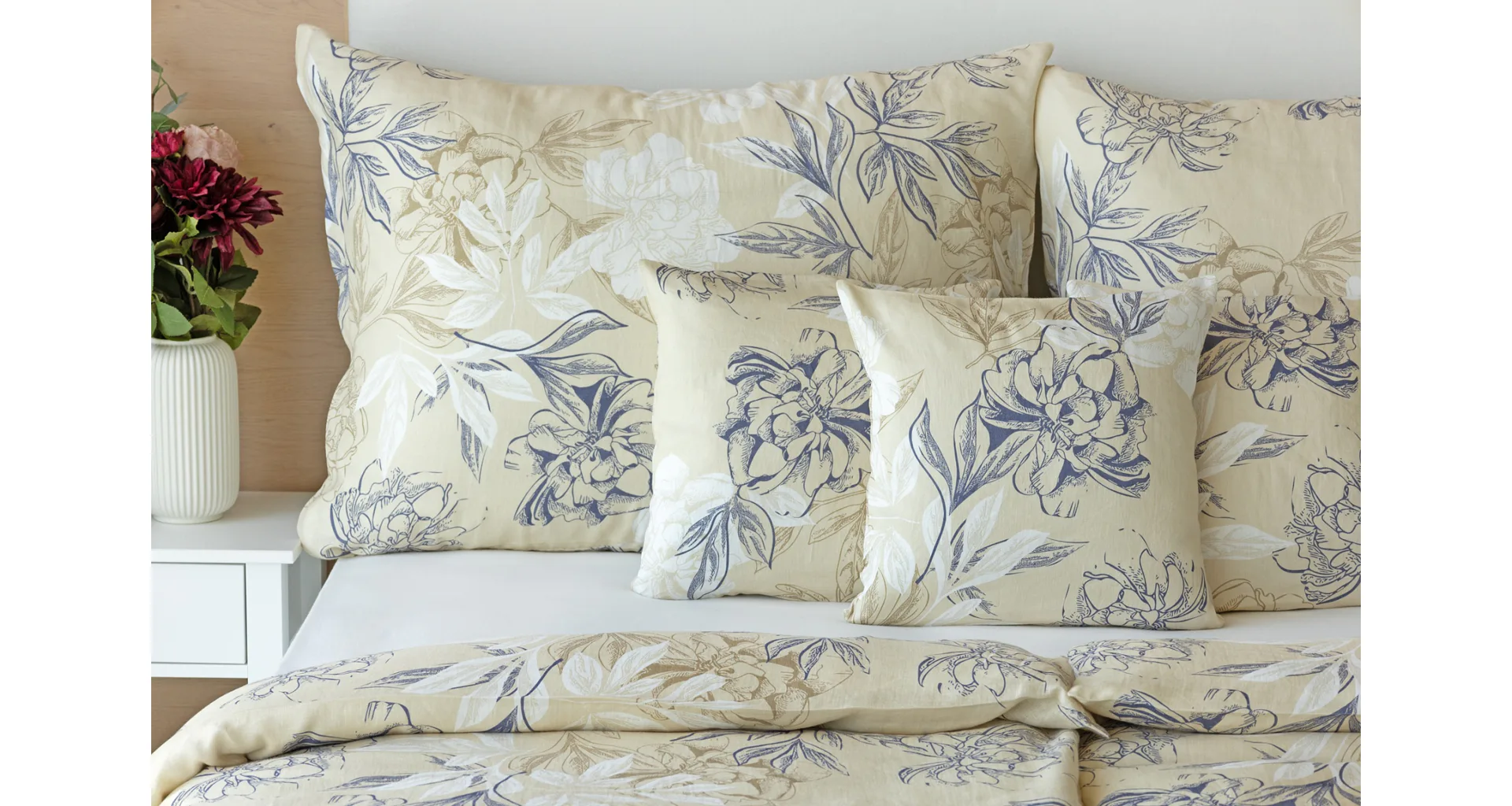 Objevte benefity jedinečného přírodního materiálu a dopřejte si nezaměnitelný komfort s naším lněným povlečením Flora. Jemný květinový motiv v přírodních tónech je jako stvořený pro tento ekologicky šetrný materiál a doladí k dokonalosti každý interiér s rustikálním nádechem.