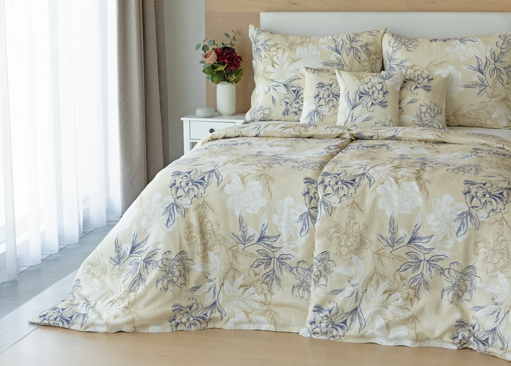 Objevte benefity jedinečného přírodního materiálu a dopřejte si nezaměnitelný komfort s naším lněným povlečením Flora. Jemný květinový motiv v přírodních tónech je jako stvořený pro tento ekologicky šetrný materiál a doladí k dokonalosti každý interiér s rustikálním nádechem.