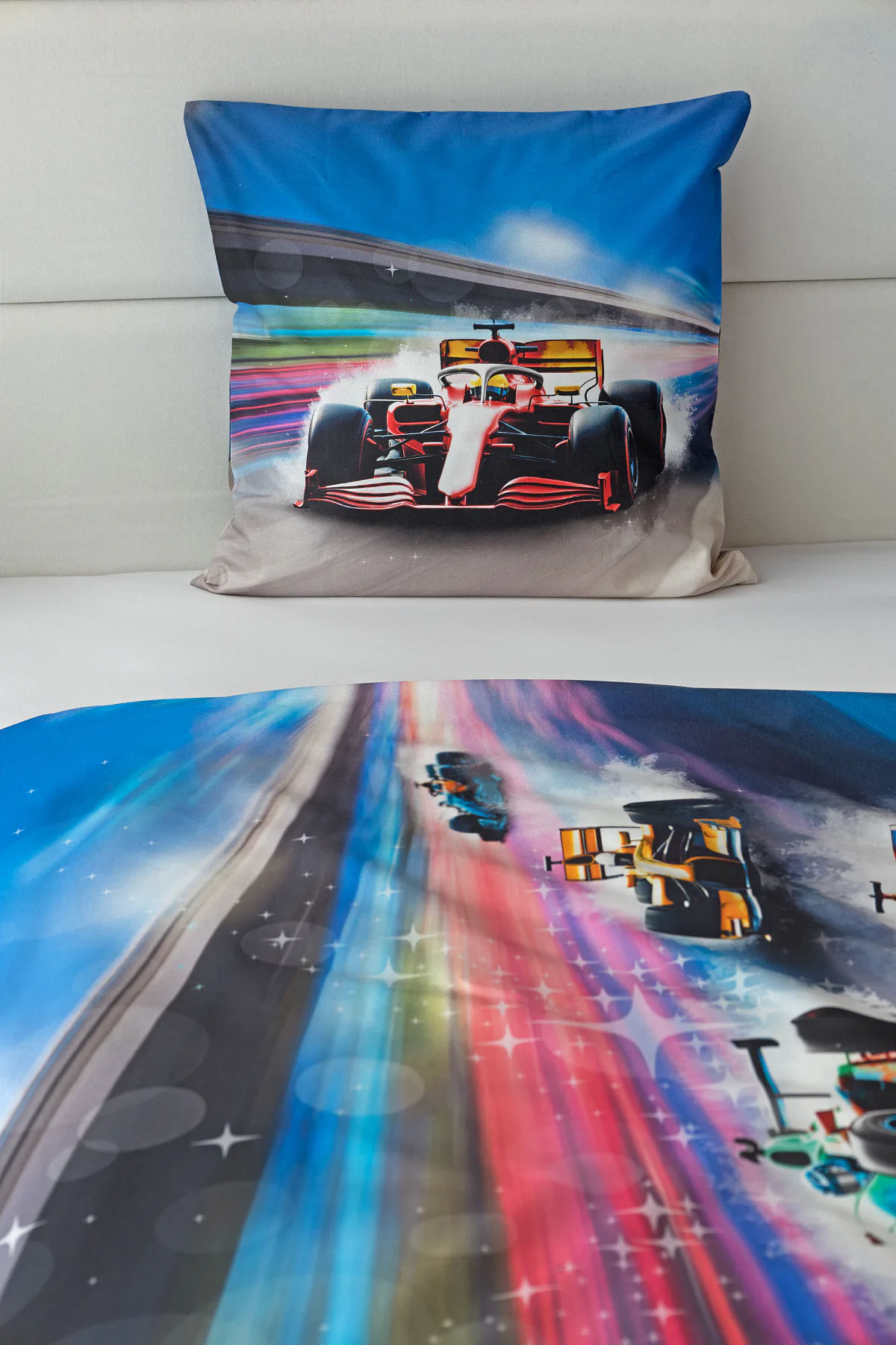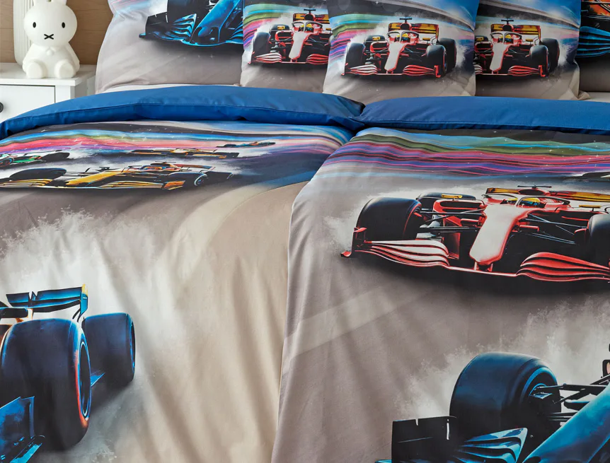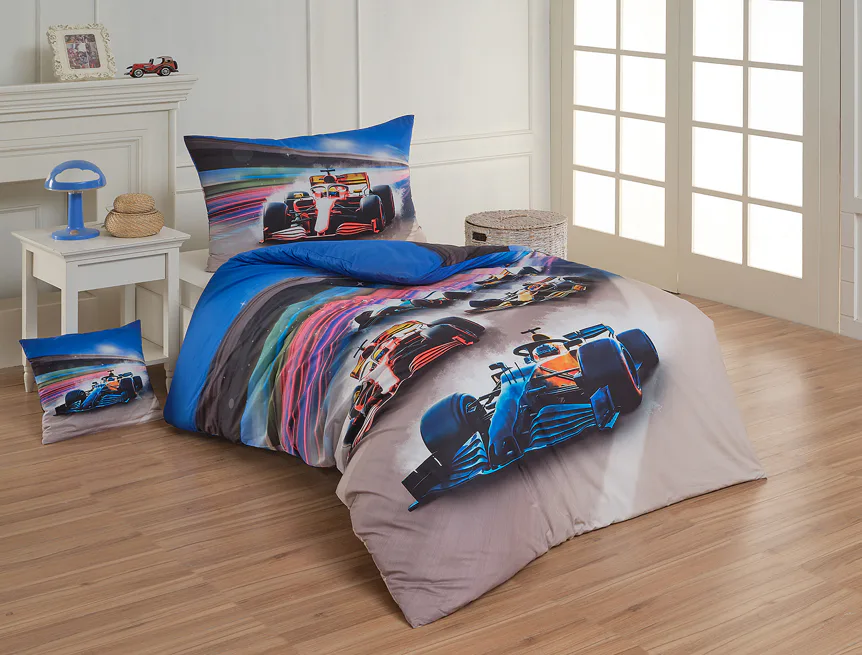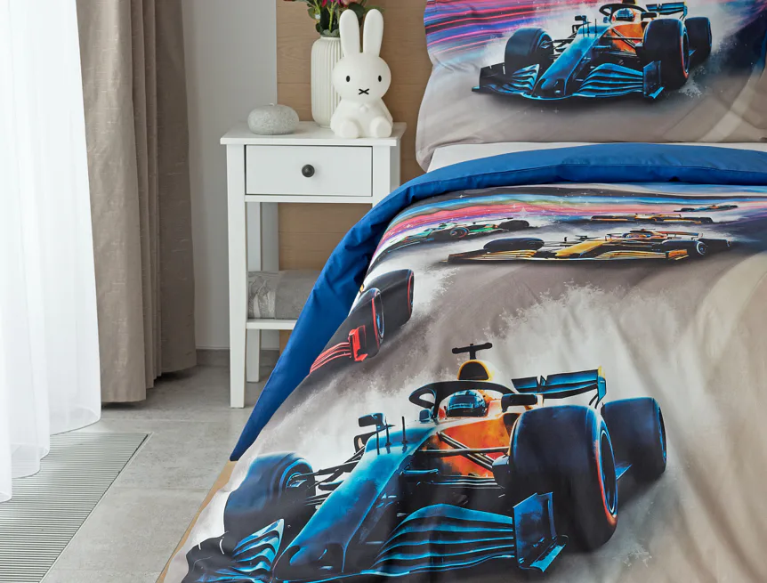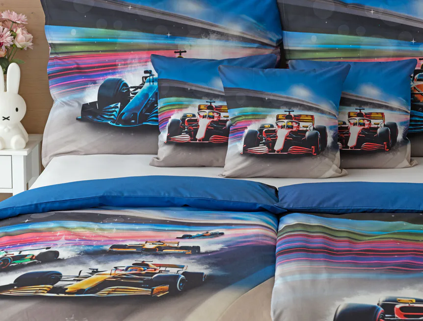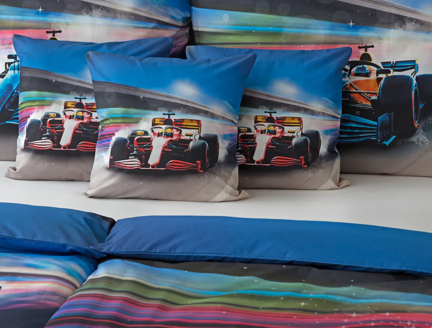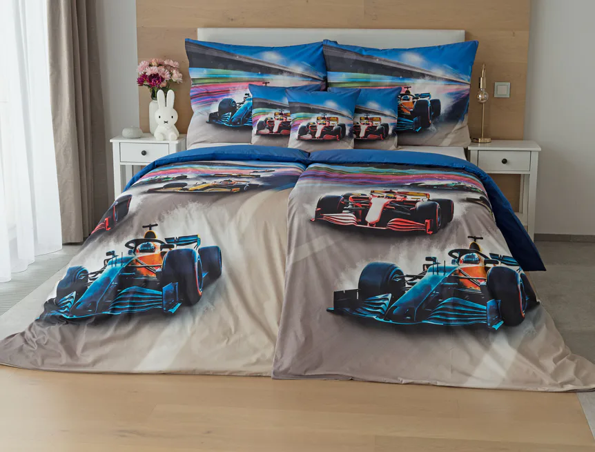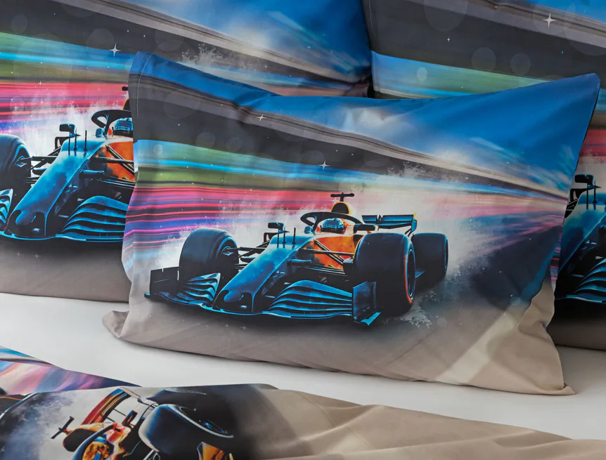 Proměňte dětský pokoj v napínavý závodní okruh plný rychlosti a adrenalinu. Stylové povlečení Formule nadchne malé i velké fanoušky motorsportu. Výrazná kombinace modrých, červených a šedých tónů dodává povlečení moderní a energický vzhled, který okamžitě oživí každý dětský či studentský pokoj. Pro opravdu velké fanoušky v páru máme také inspiraci na dvoulůžko.