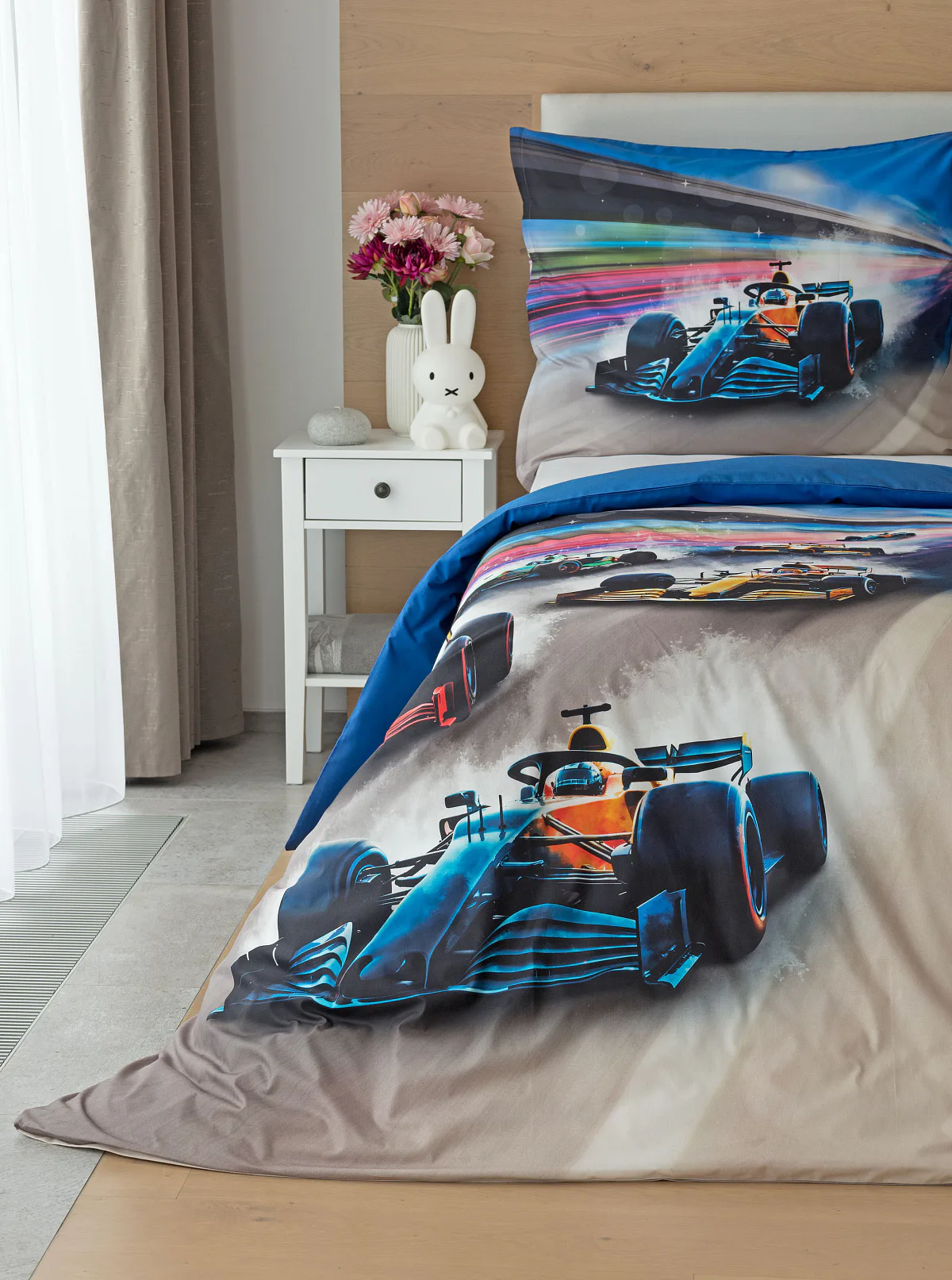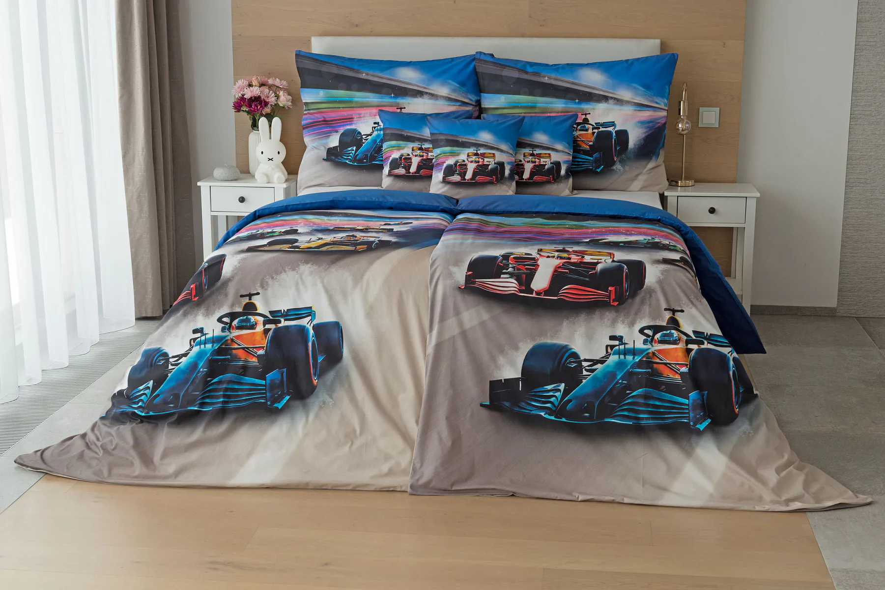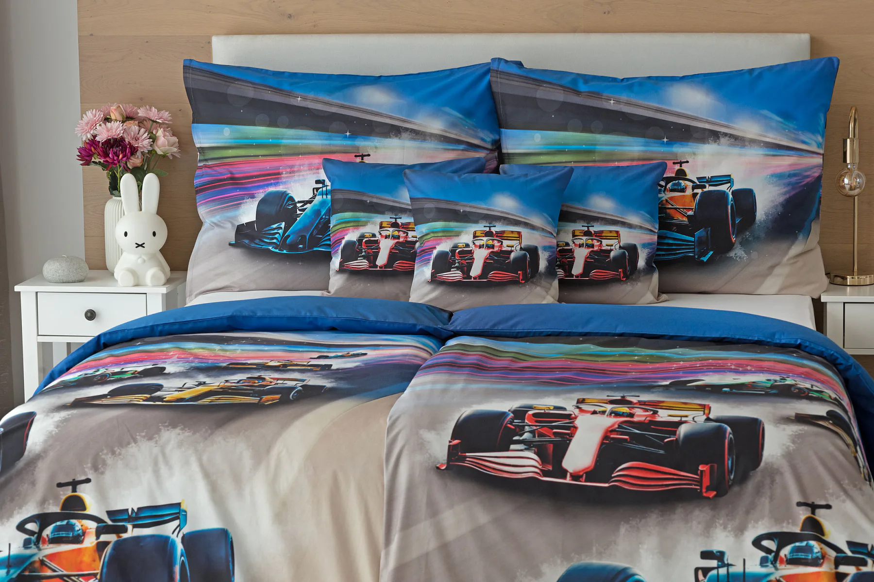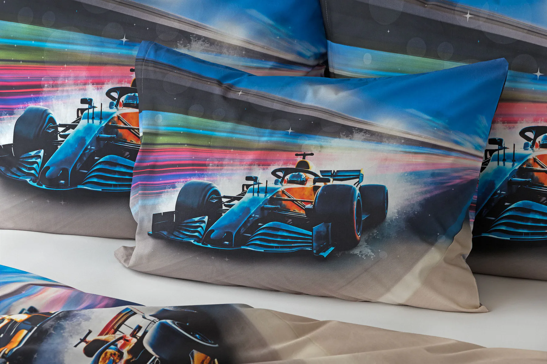 Proměňte dětský pokoj v napínavý závodní okruh plný rychlosti a adrenalinu. Stylové povlečení Formule nadchne malé i velké fanoušky motorsportu. Výrazná kombinace modrých, červených a šedých tónů dodává povlečení moderní a energický vzhled, který okamžitě oživí každý dětský či studentský pokoj. Pro opravdu velké fanoušky v páru máme také inspiraci na dvoulůžko.