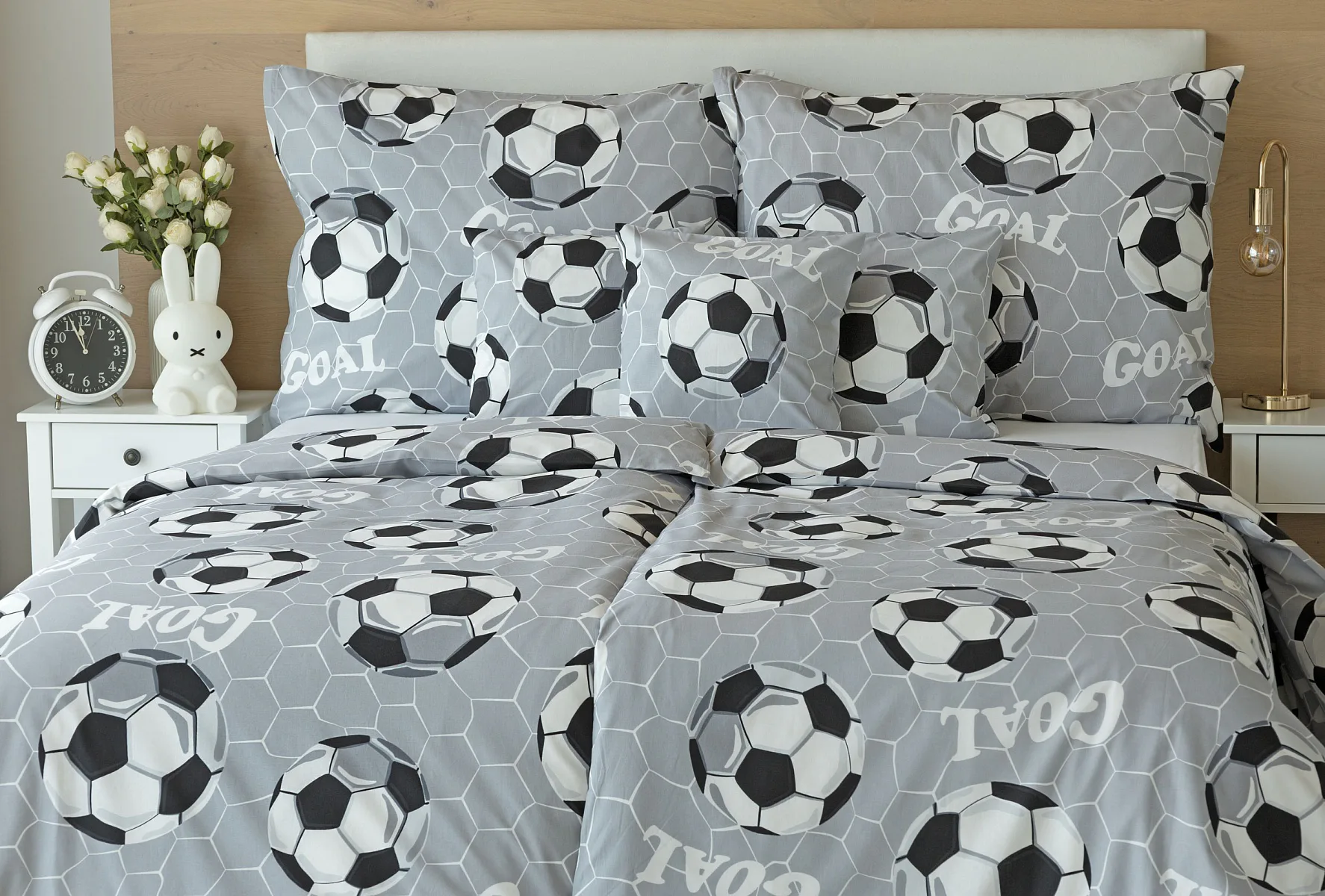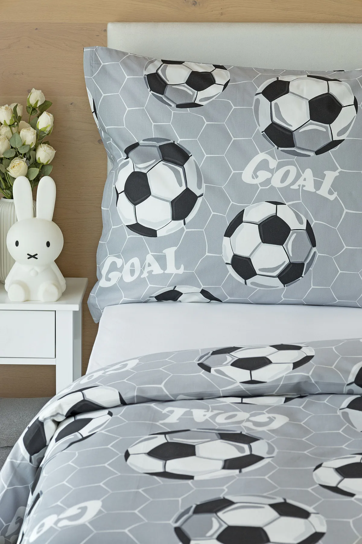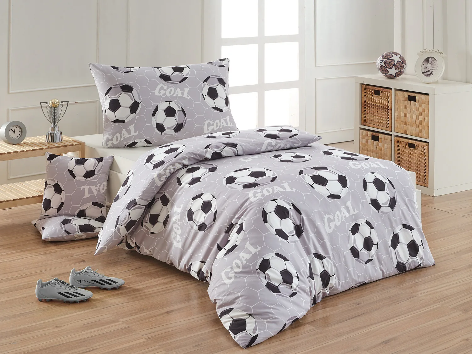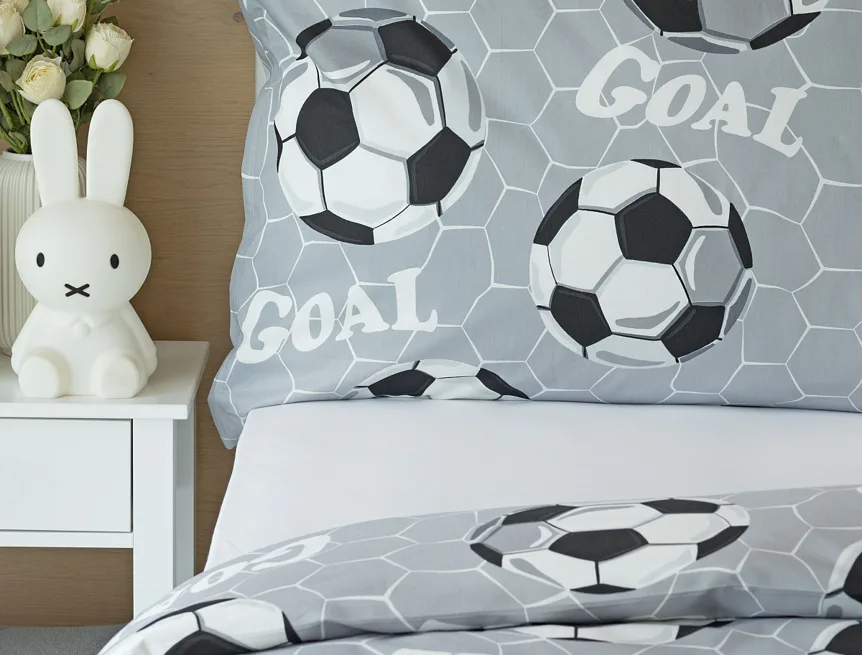 Potěšte své dítko novým bavlněným povlečením Goal s fotbalovou tematikou. Oblíbený sportovní motiv v decentní kombinaci barev potěší malé i větší sportovce. Díky stoprocentní prvotřídní bavlně budou spokojeně usínat děti i rodiče.