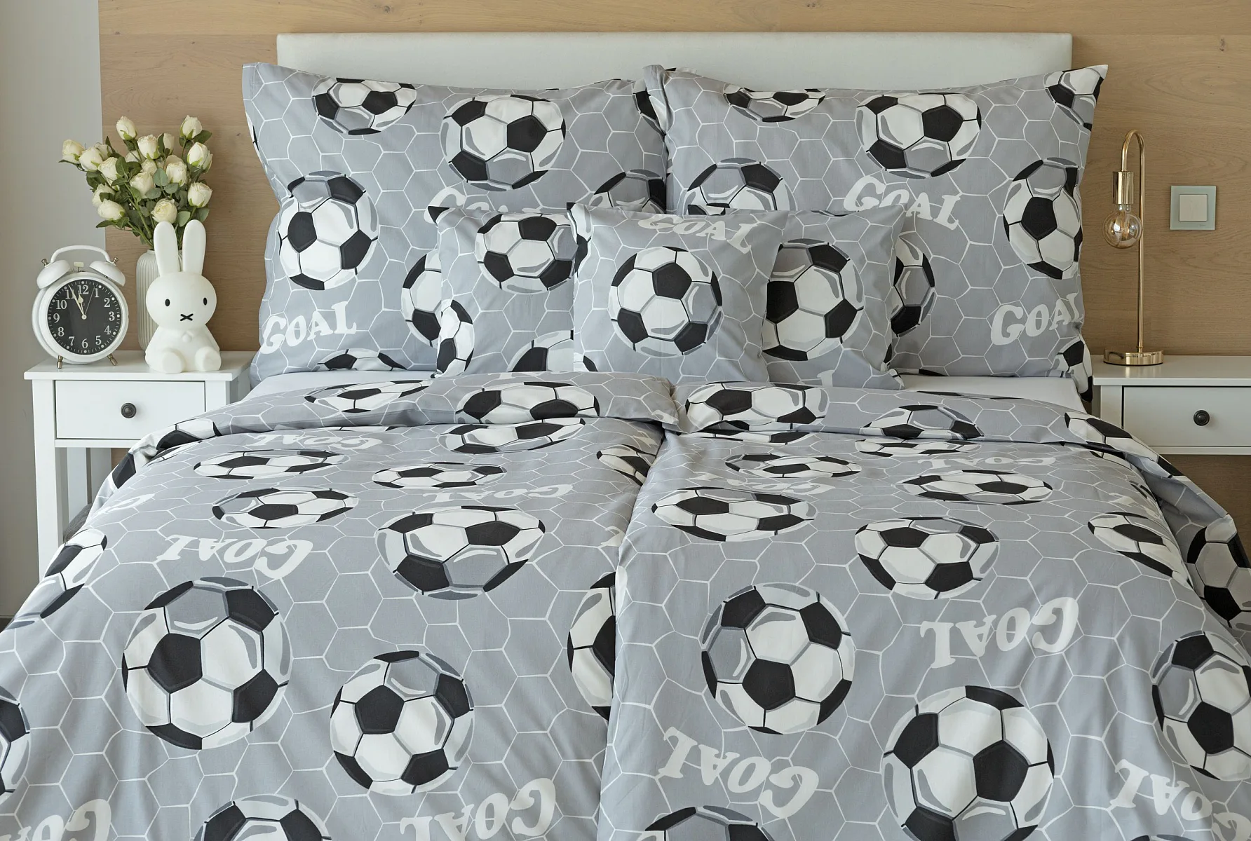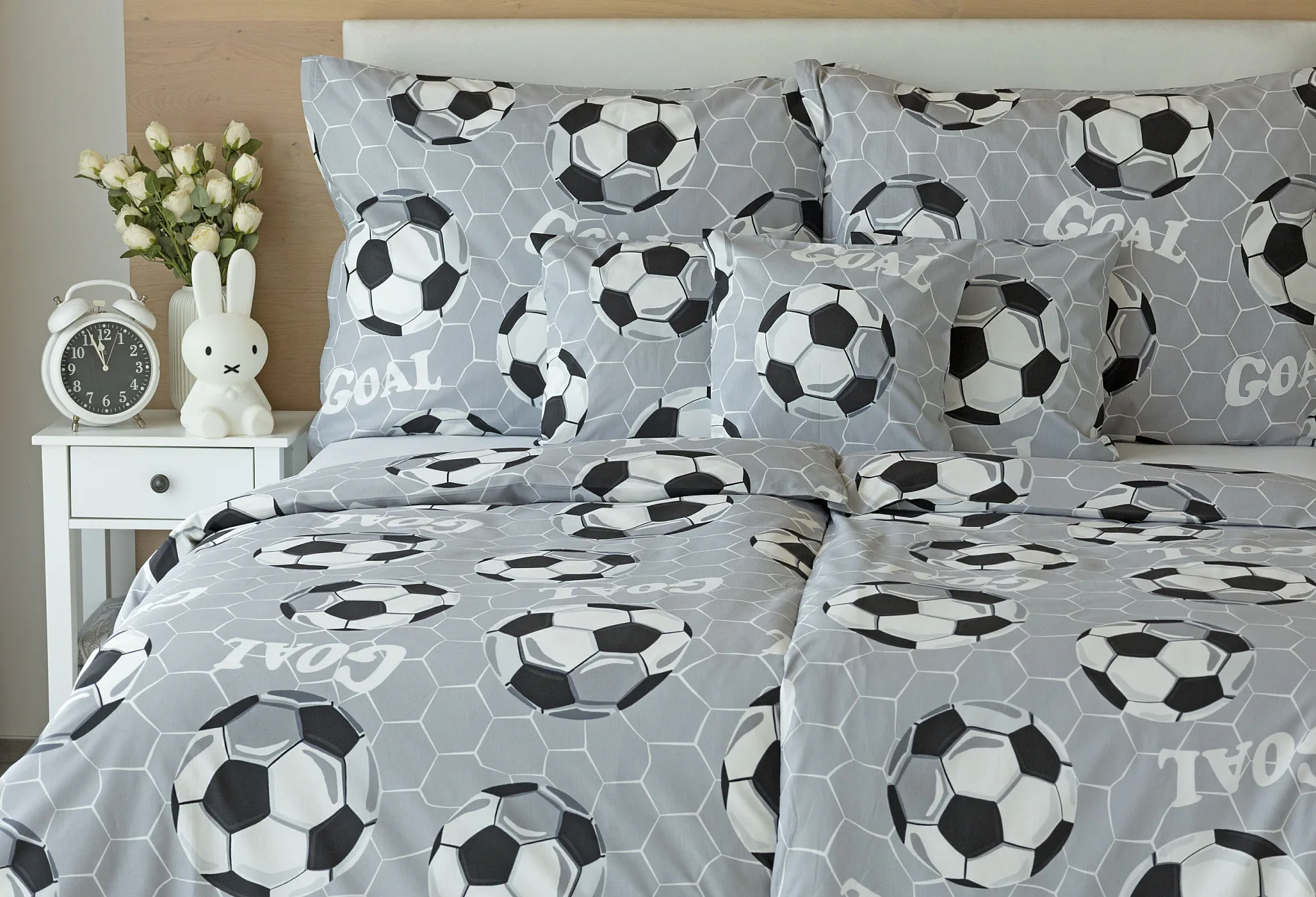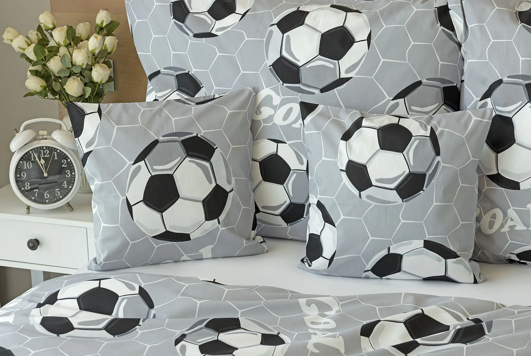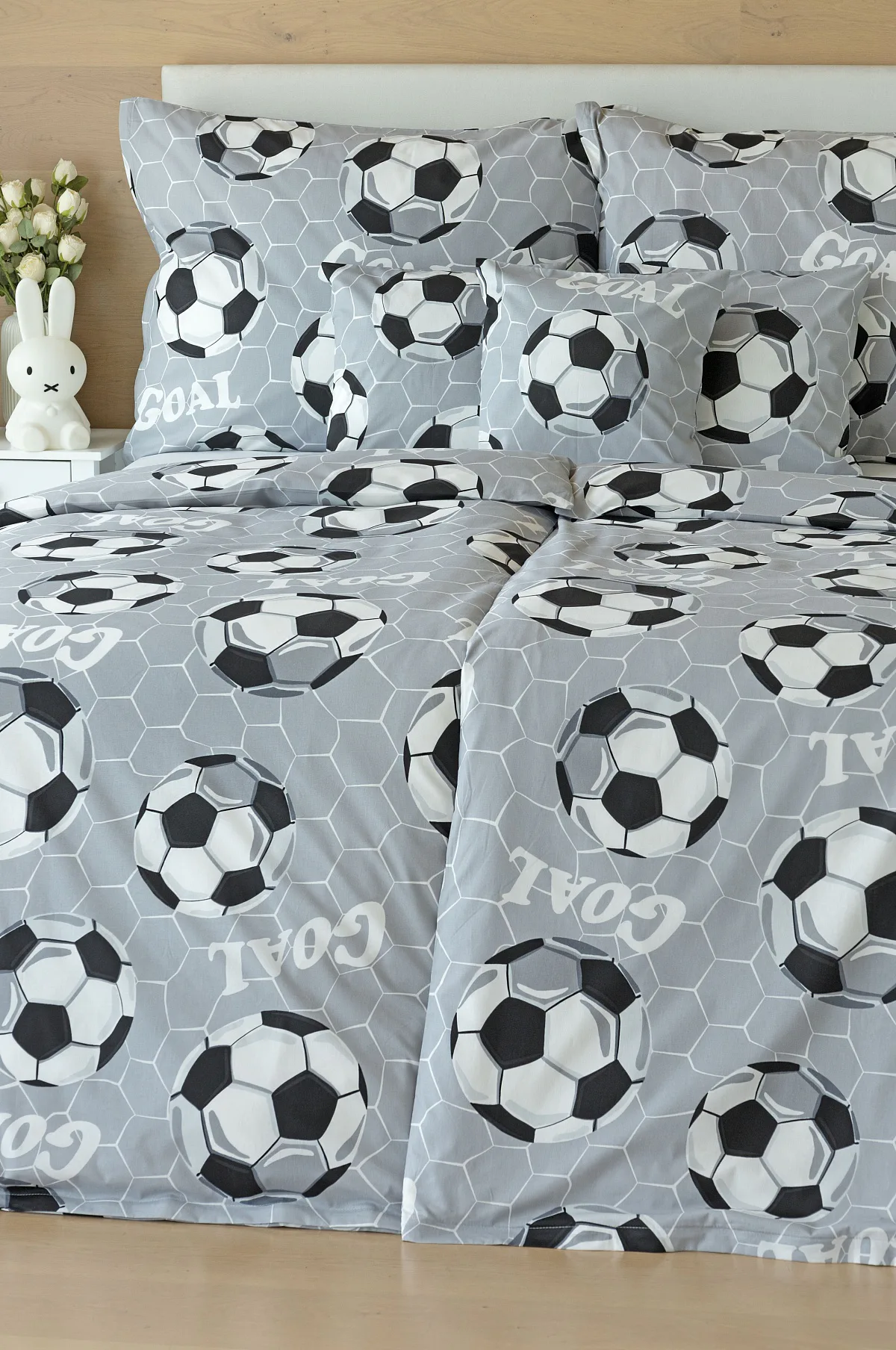 Potěšte své dítko novým bavlněným povlečením Goal s fotbalovou tematikou. Oblíbený sportovní motiv v decentní kombinaci barev potěší malé i větší sportovce. Díky stoprocentní prvotřídní bavlně budou spokojeně usínat děti i rodiče.