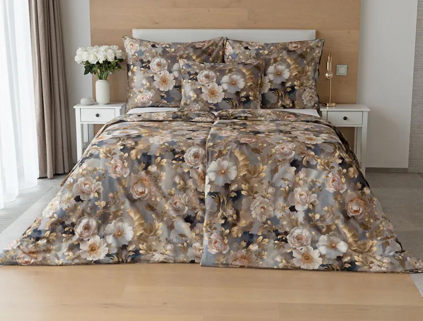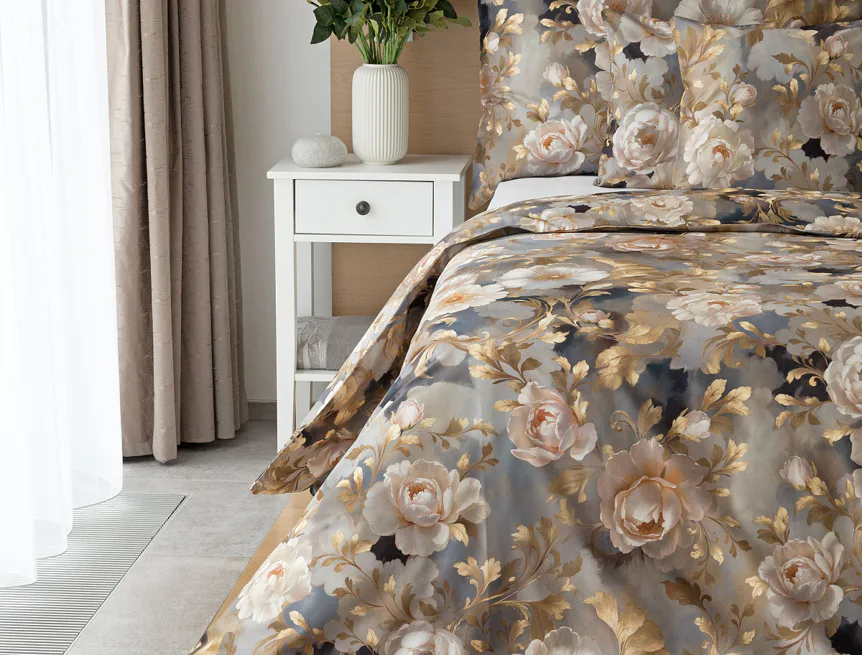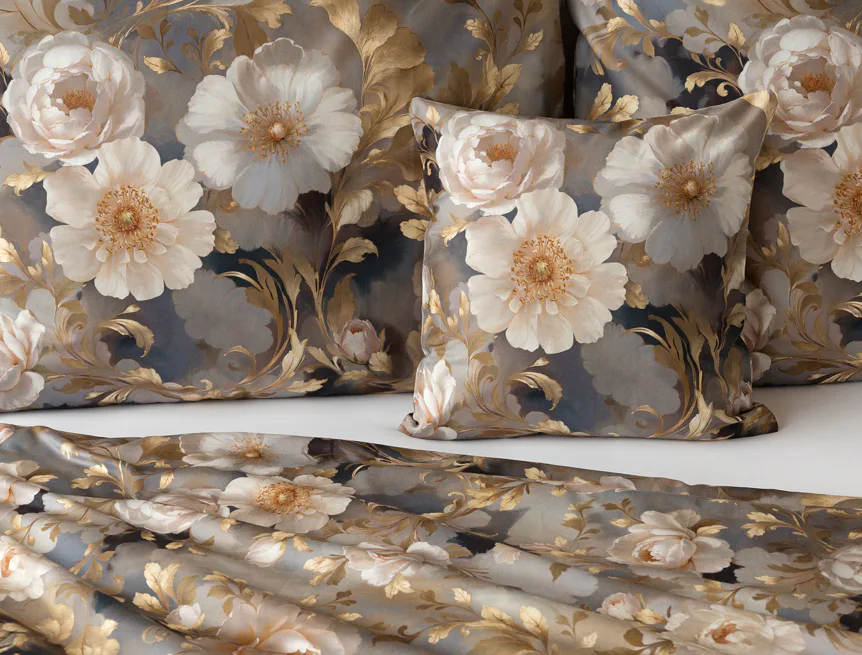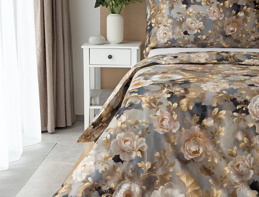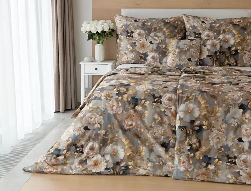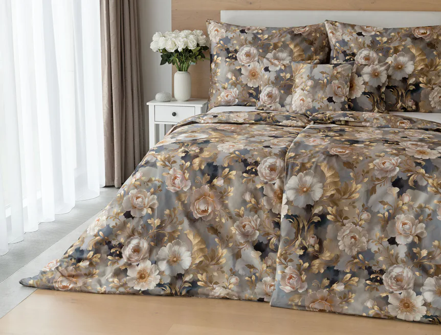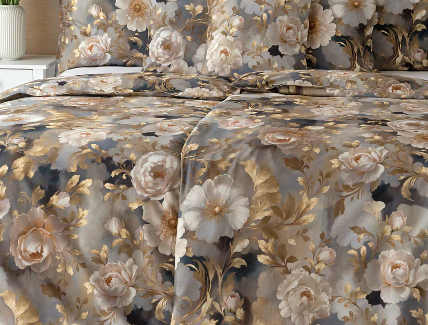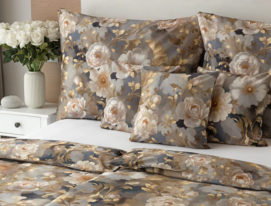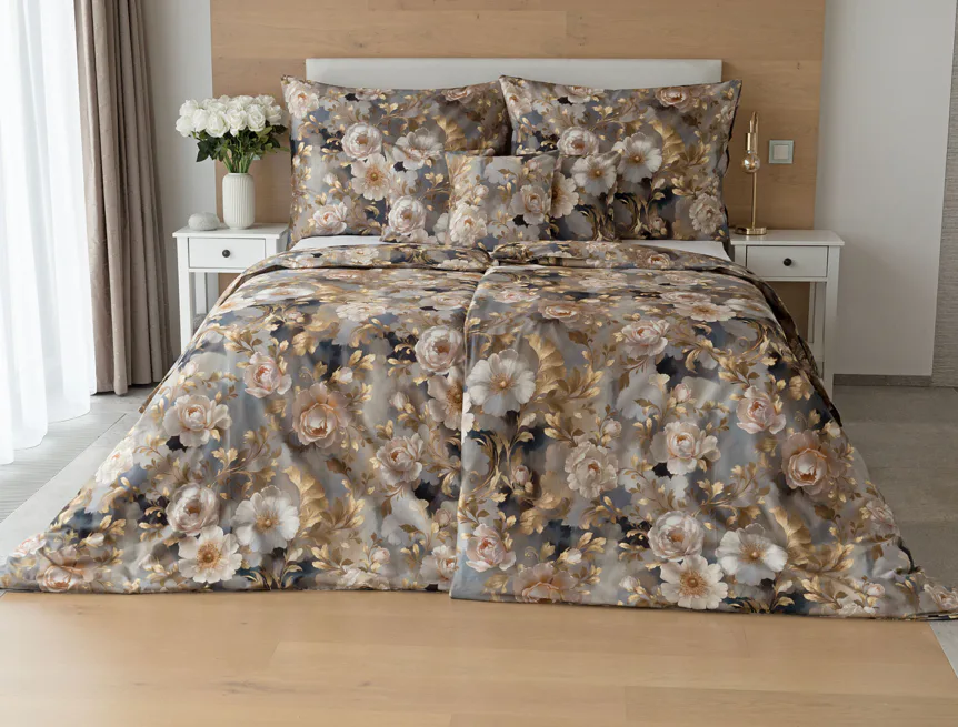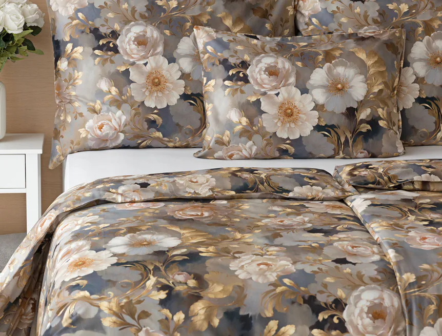 Saténové povlečení Ivelle vnese do vaší ložnice nádech zámecké atmosféry. Zlatavé tóny, které dominují tomuto jedinečnému květinovému vzoru, působí nesmírně elegantním dojmem, a promění každou ložnici v okouzlující oázu odpočinku. O precizní detail tištěného vzoru se postarala nejmodernější digitální technologie a hebký bavlněný satén propůjčil ložnímu povlečení decentní odlesk, který si tento vzor opravdu zaslouží.