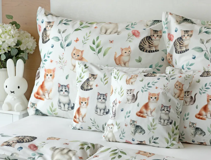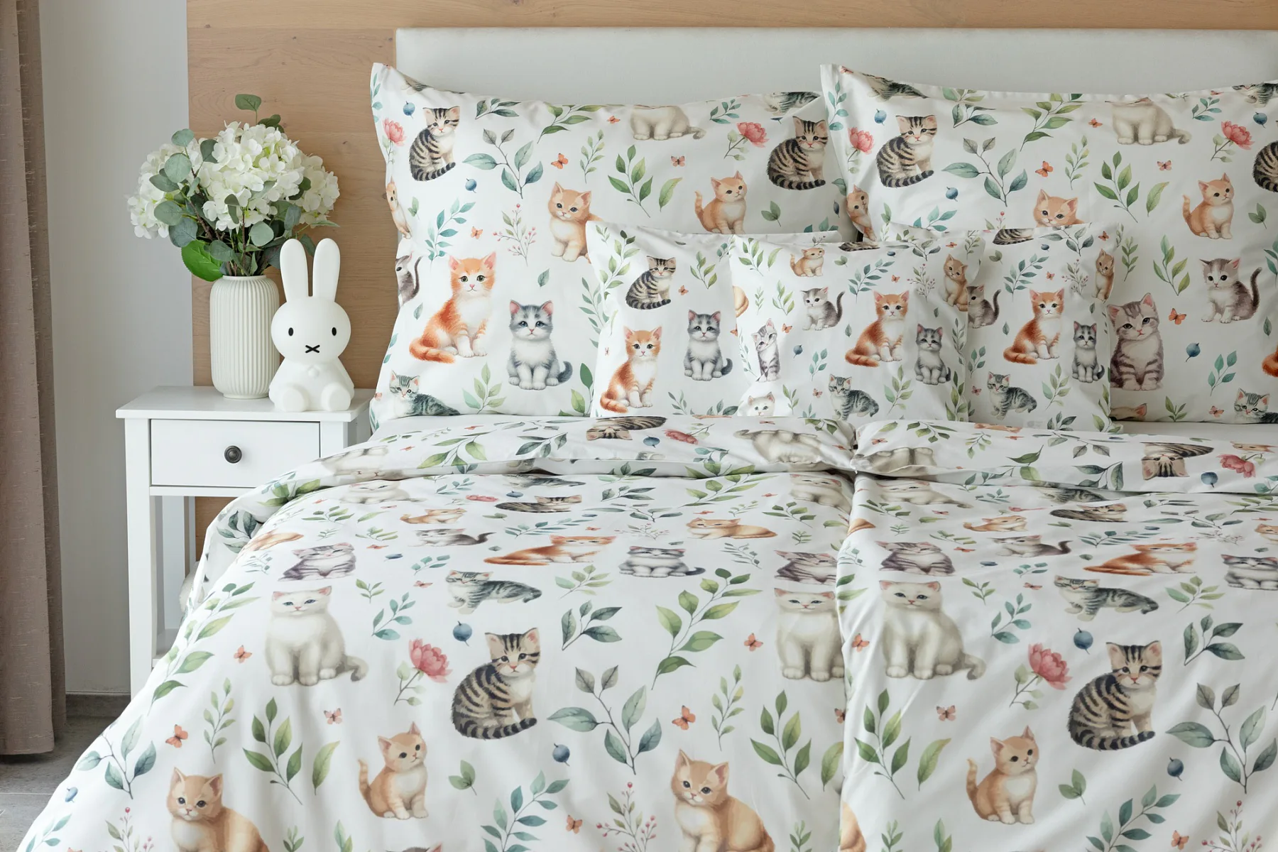 S povlečením Kitty vykouzlíte úsměv na tváři všem malým i velkým milovníkům kočičích mazlíčků! Hravý design je díky neutrální kombinaci barev vhodný pro děvčátka i chlapce. O jejich spokojený spánek se postará hebká prvotřídní bavlna.