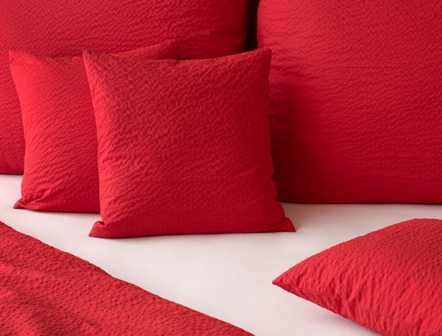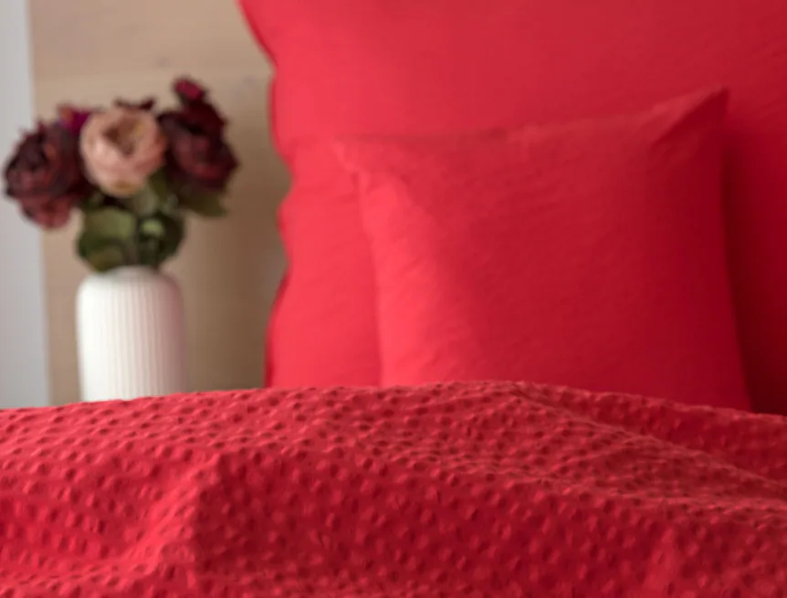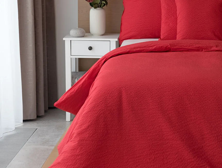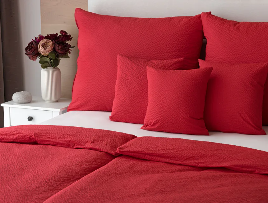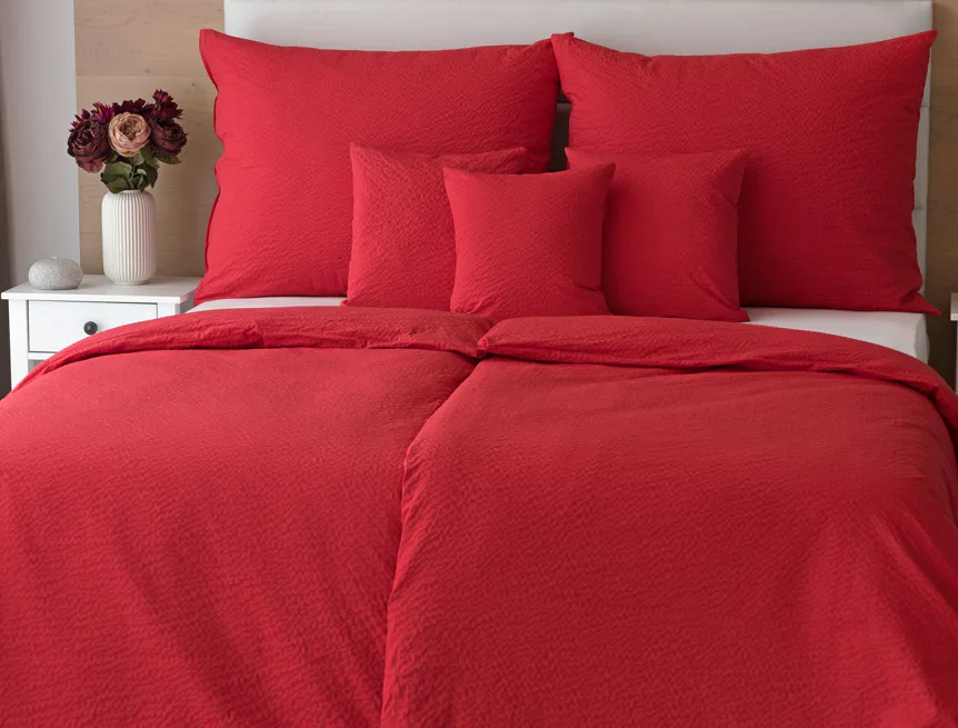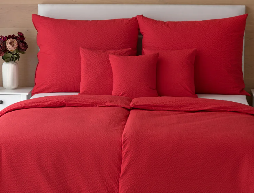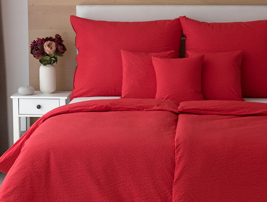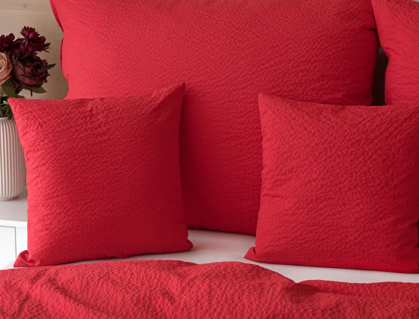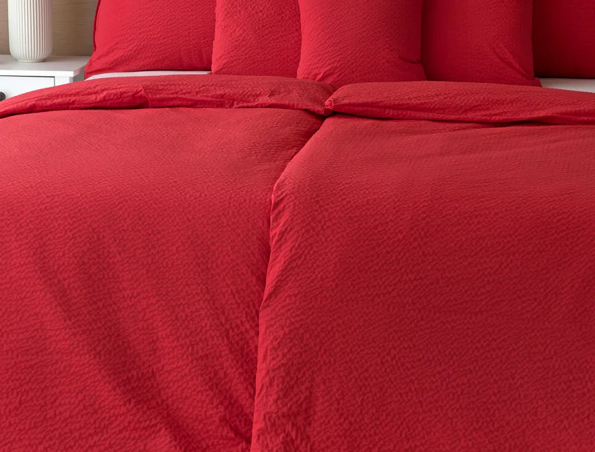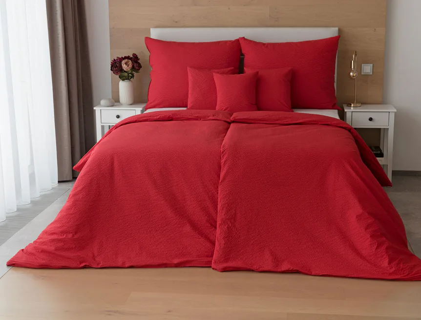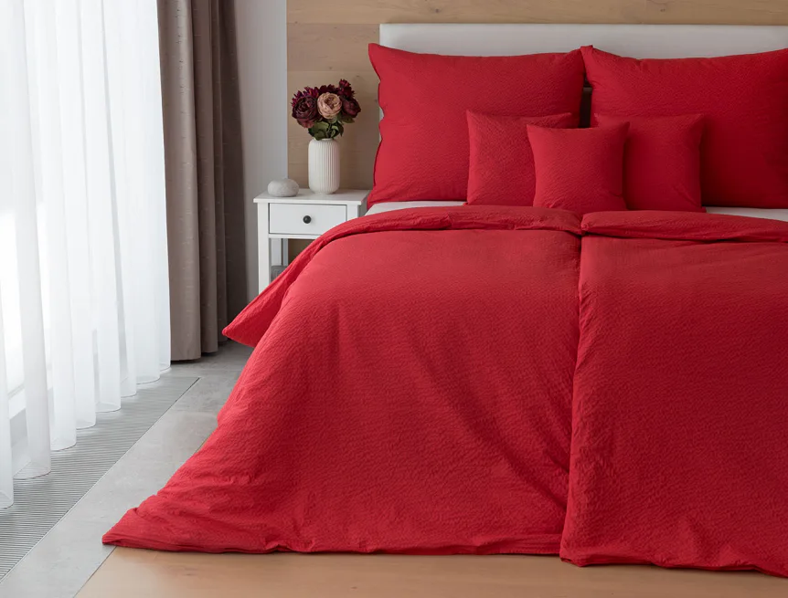 Luxusní červené krepové povlečení v provedení kvalitní 100% bavlny je opatřeno komfortním zipovým uzávěrem. Povlečení se snadno udržuje - nežehlí se.