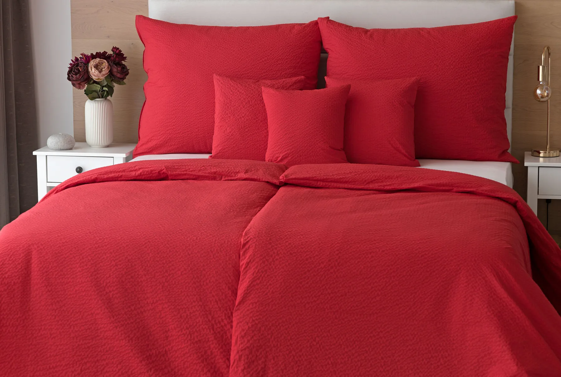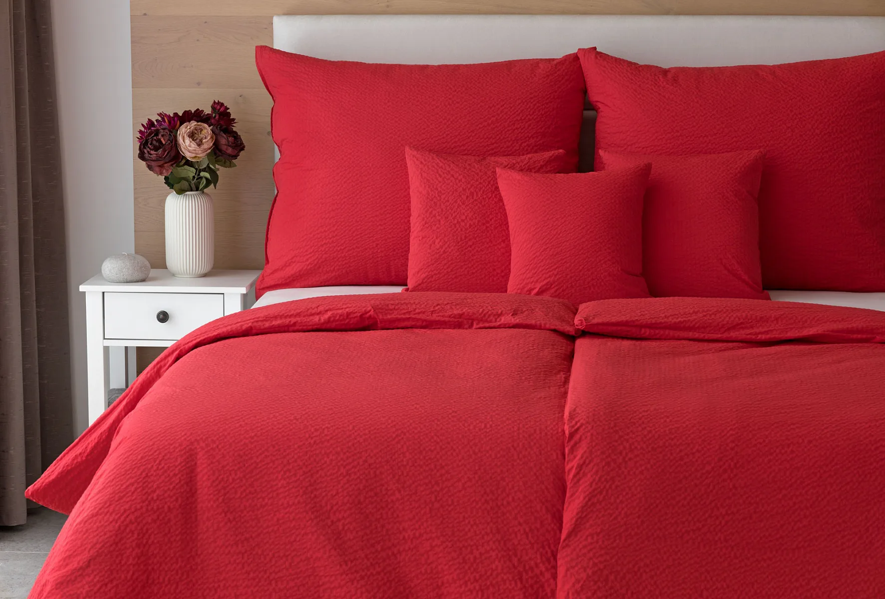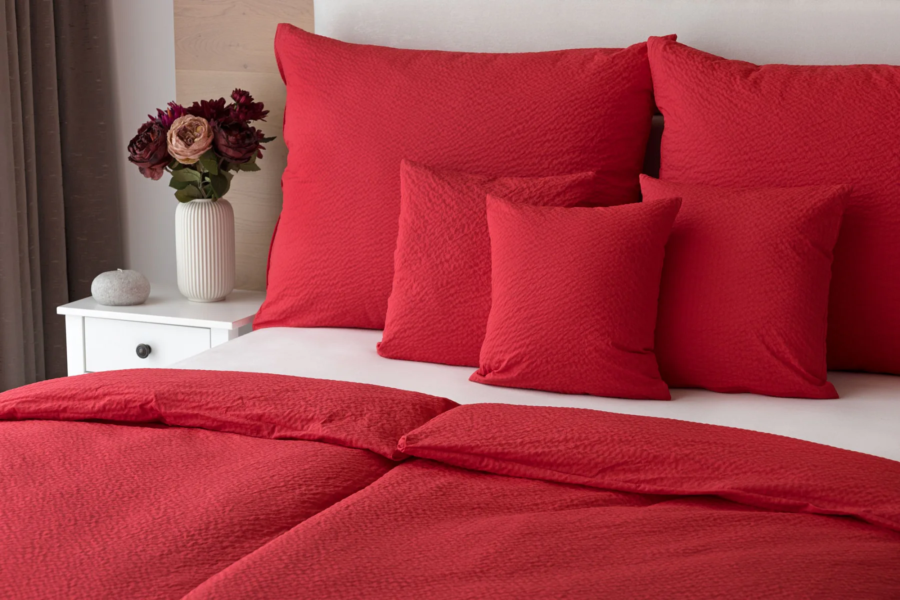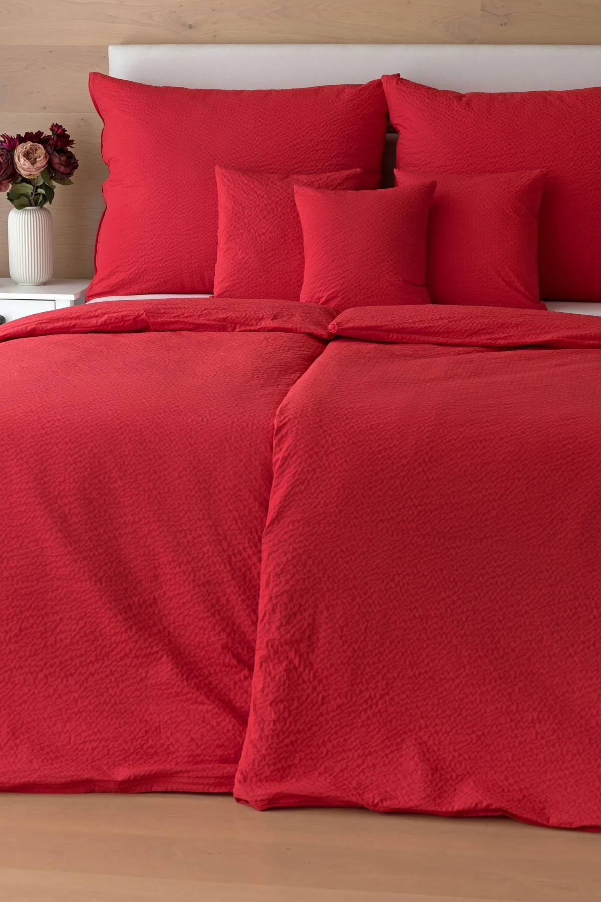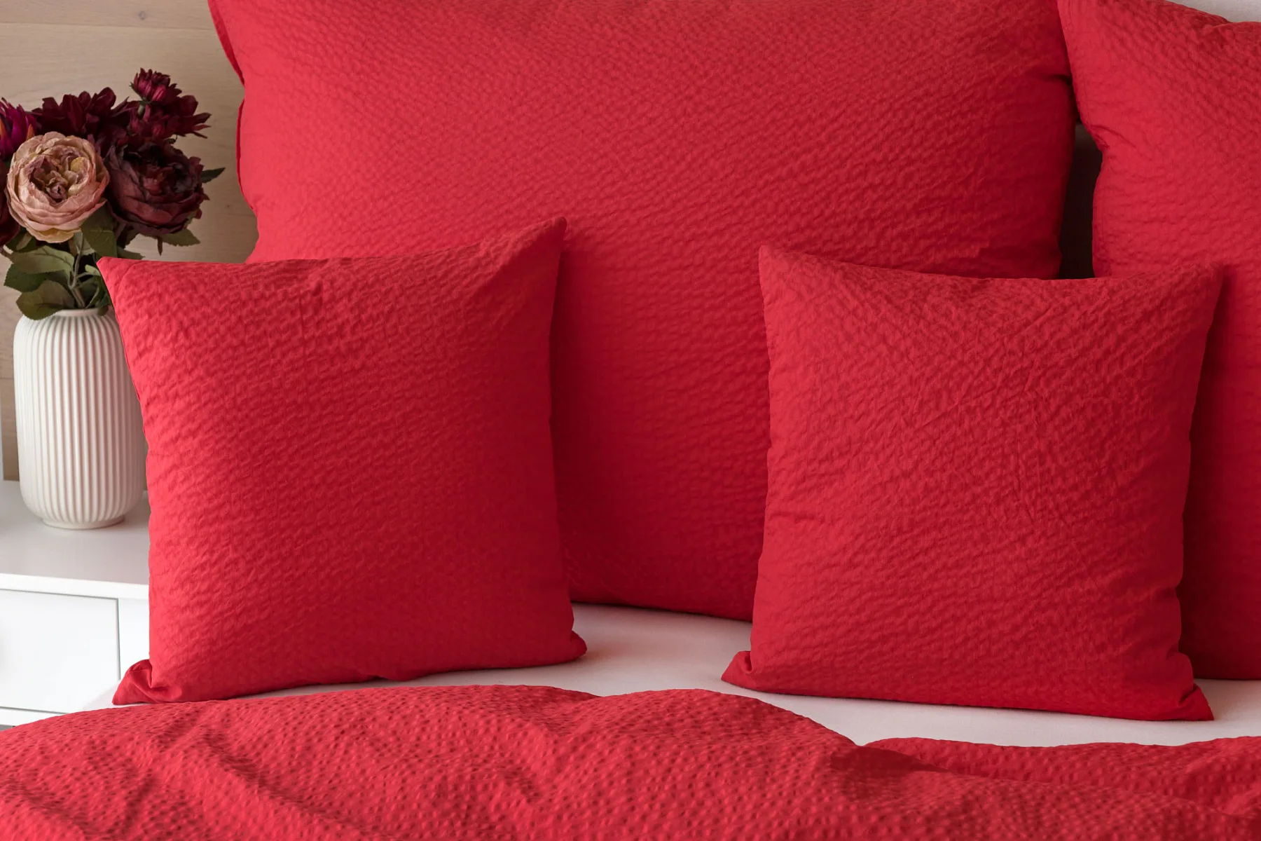Luxusní červené krepové povlečení v provedení kvalitní 100% bavlny je opatřeno komfortním zipovým uzávěrem. Povlečení se snadno udržuje - nežehlí se.
