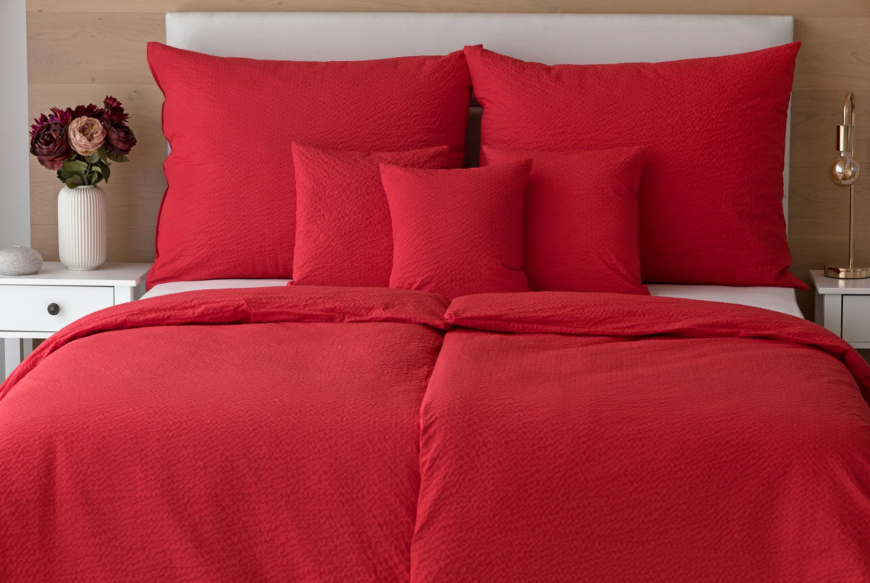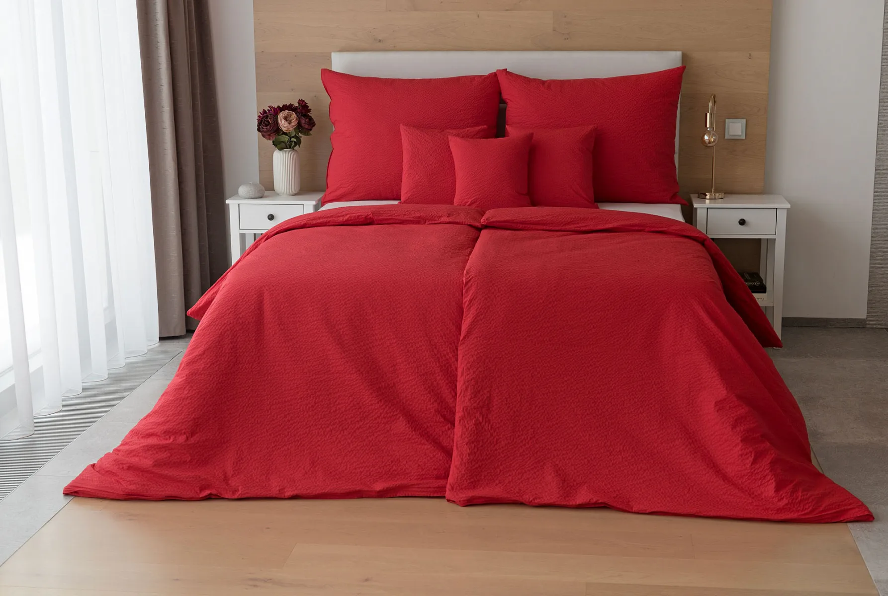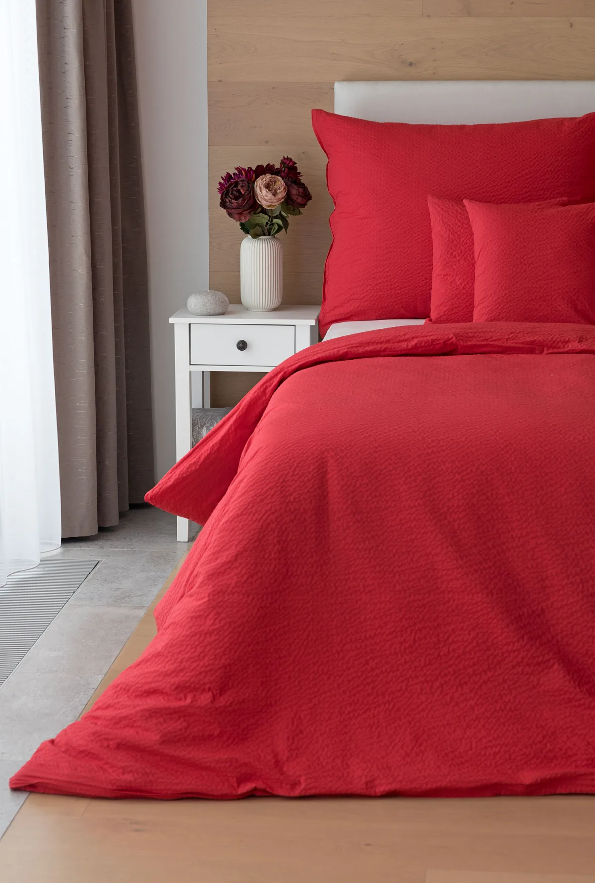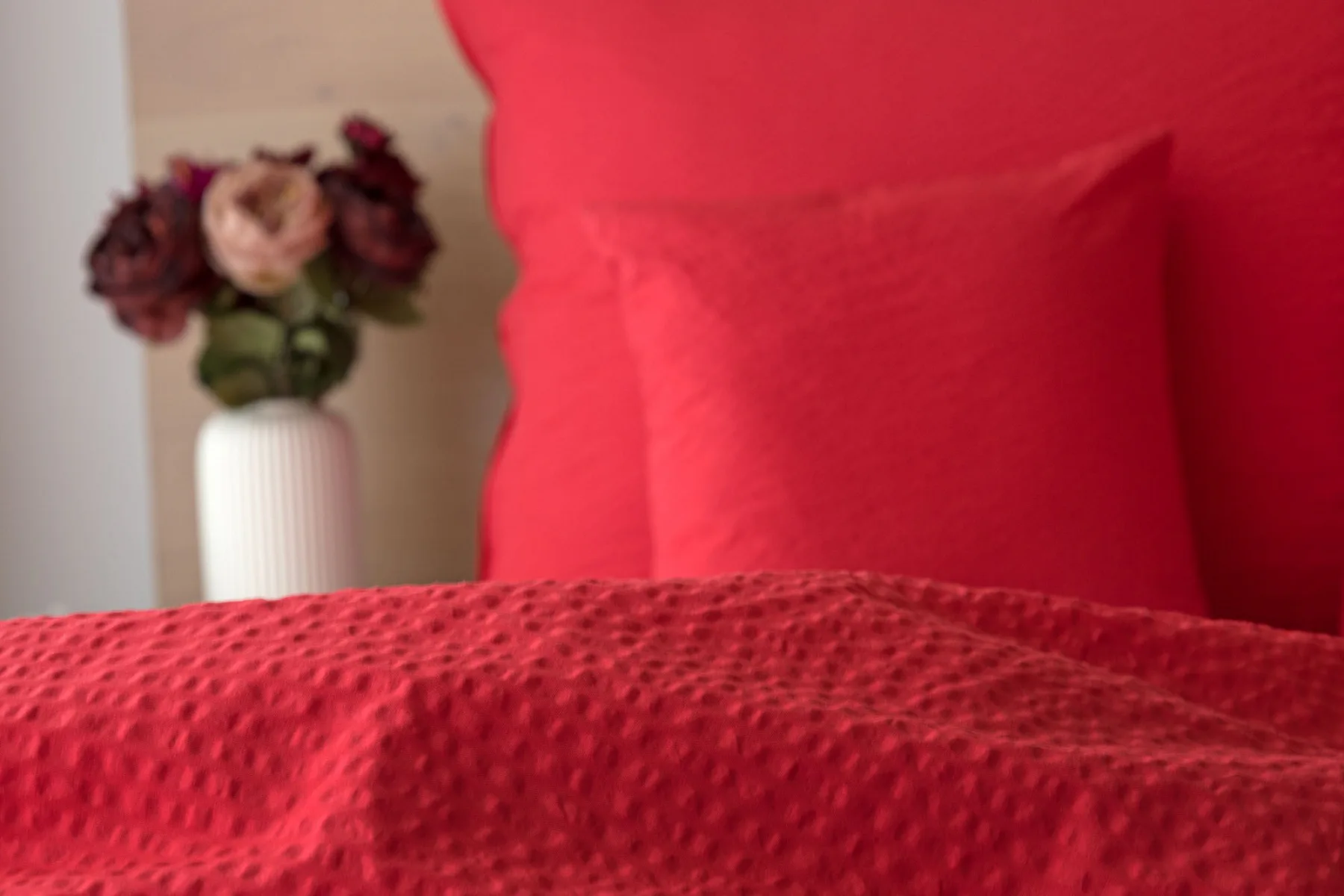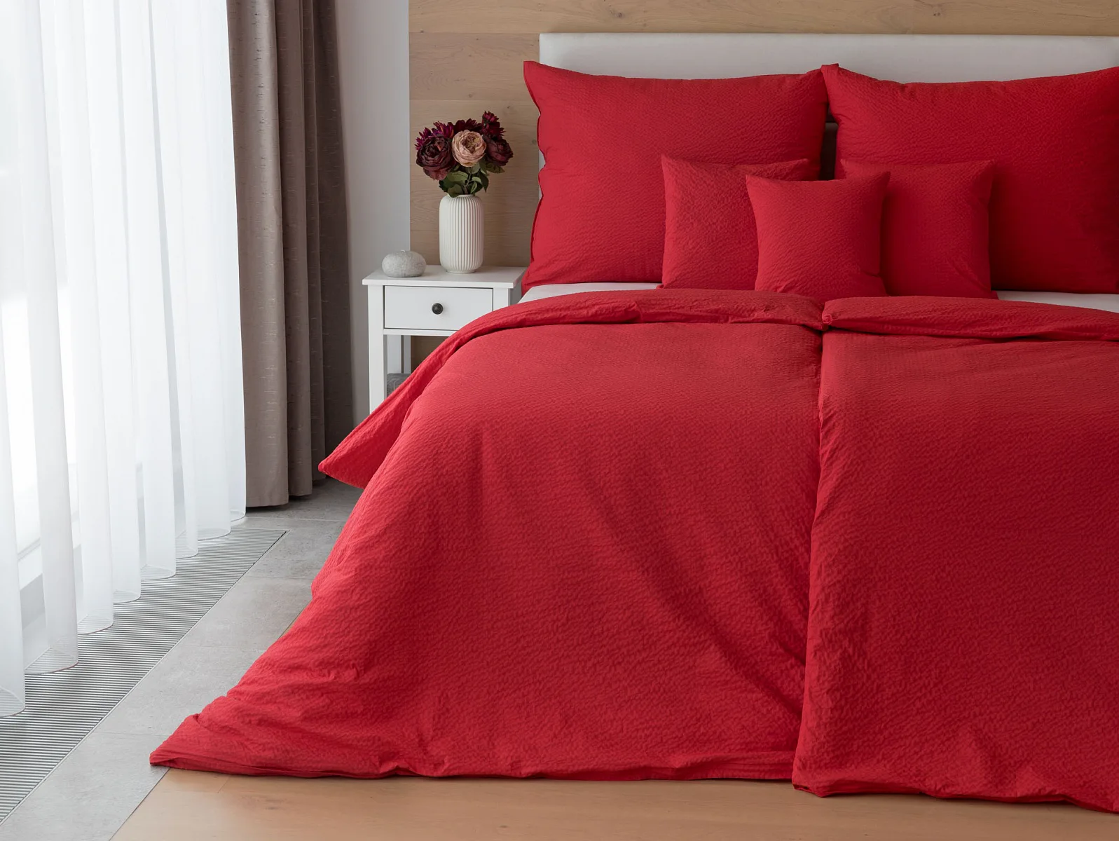Luxusní červené krepové povlečení v provedení kvalitní 100% bavlny je opatřeno komfortním zipovým uzávěrem. Povlečení se snadno udržuje - nežehlí se.