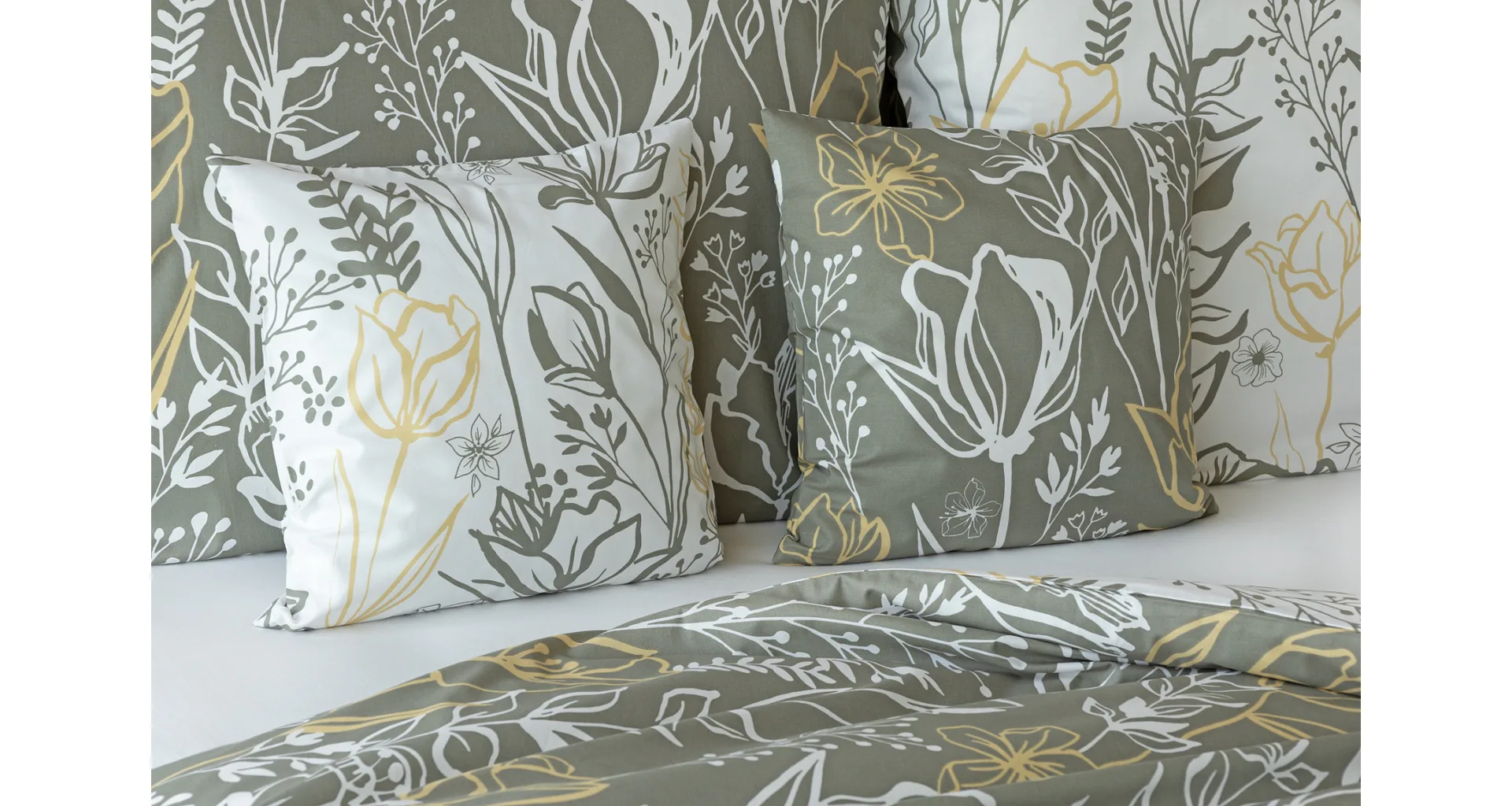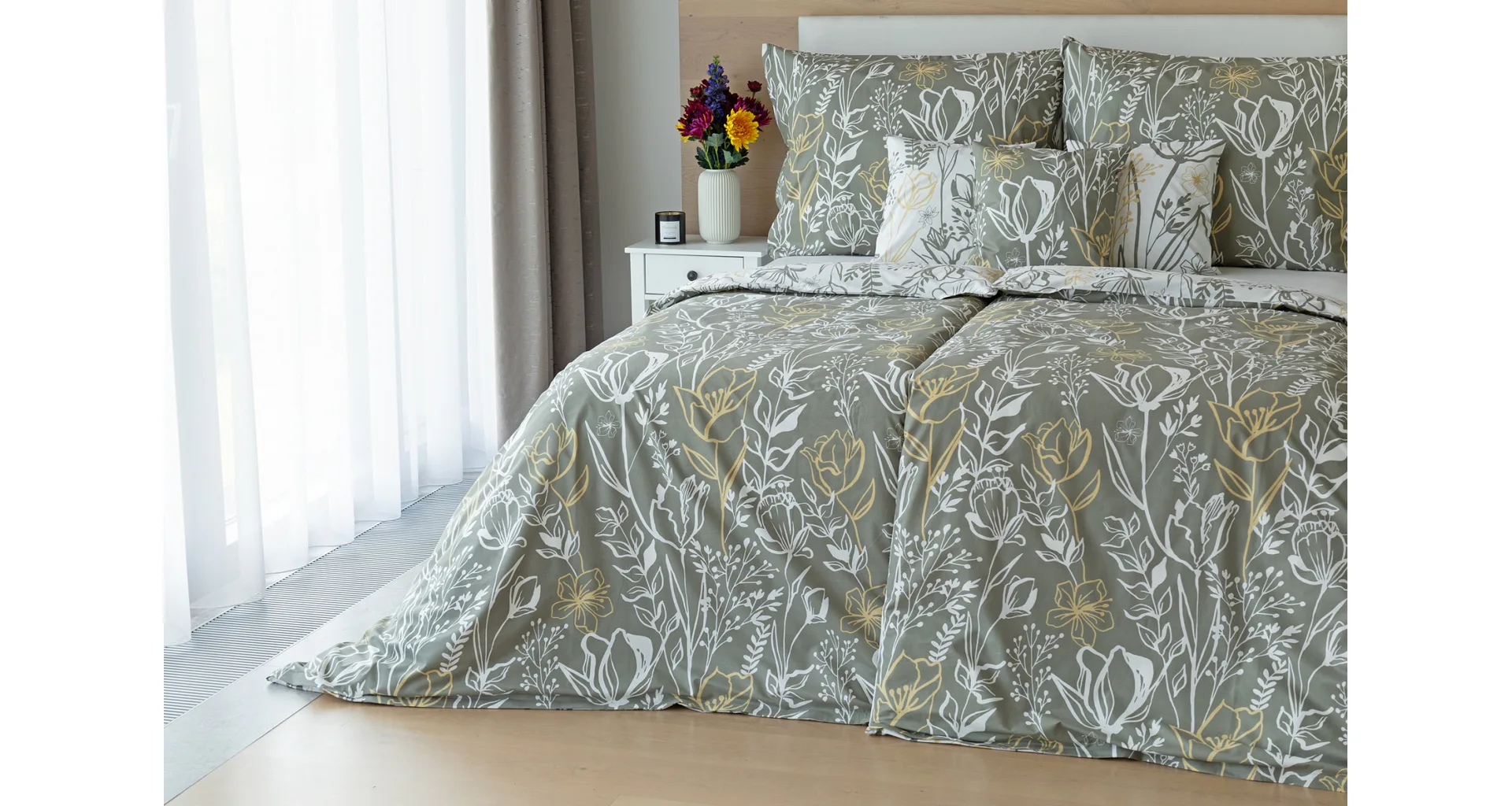 Elegantní květinové povlečení Larissa vnese svěžest a noblesu do vaší ložnice. Jemný florální motiv v kombinaci bílá, zeleno-šedá a béžová vyniká z každé strany povlečení na jiném podkladu. Díky tomuto oblíbenému oboustrannému provedení můžete při stlaní hravě experimentovat!