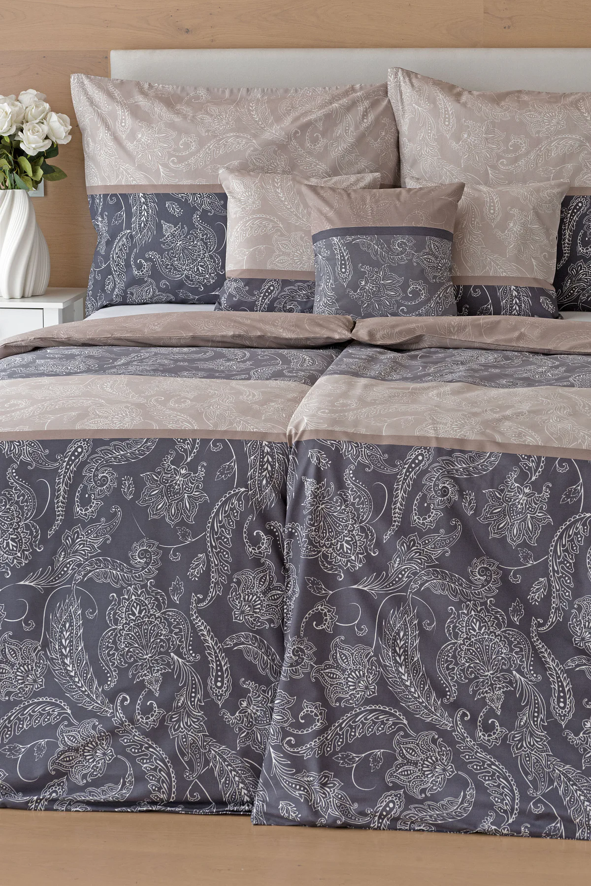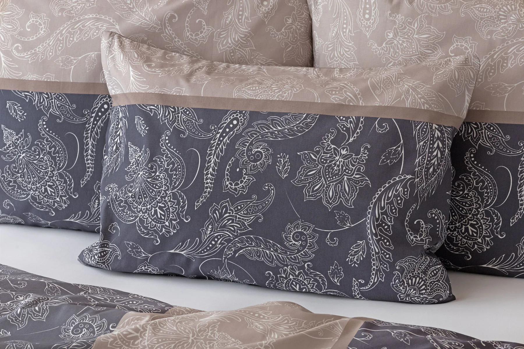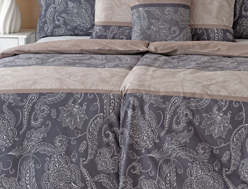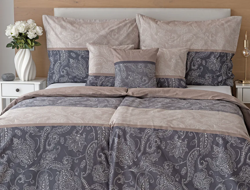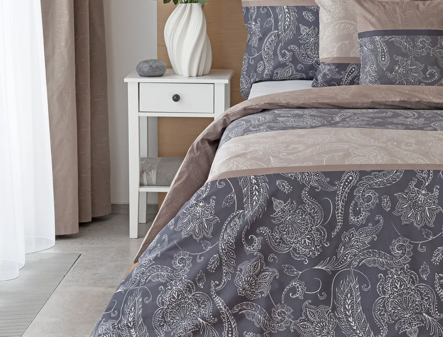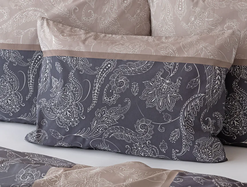 Vneste do své ložnice harmonii, eleganci a nadčasový půvab s bavlněným ložním povlečením Lior, zdobeným klasickým paisley motivem. Ornamentální vzor vyniká svou jemnou kresbou a dokonale ladí jak s moderním, tak s tradičním interiérem. Podklad povlečení tvoří oblíbené hřejivé tóny přírodní béžové a šedé barvy.