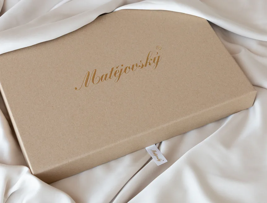 Balení: Povlečení Luna je dodáváno v luxusní dárkové krabici, zabalené do jemného hedvábného papíru. Obal z přírodních surovin podtrhuje jedinečnost tohoto 100% přírodního produktu.