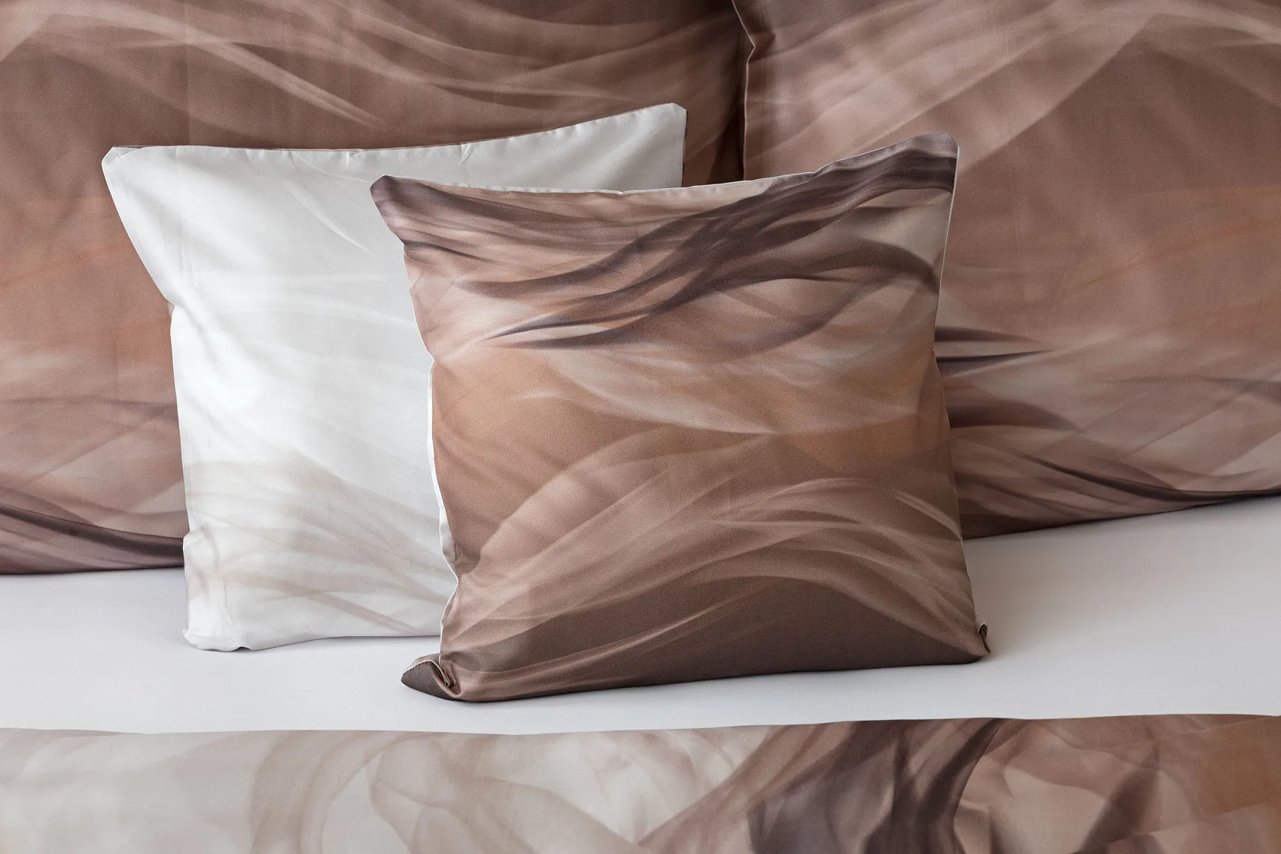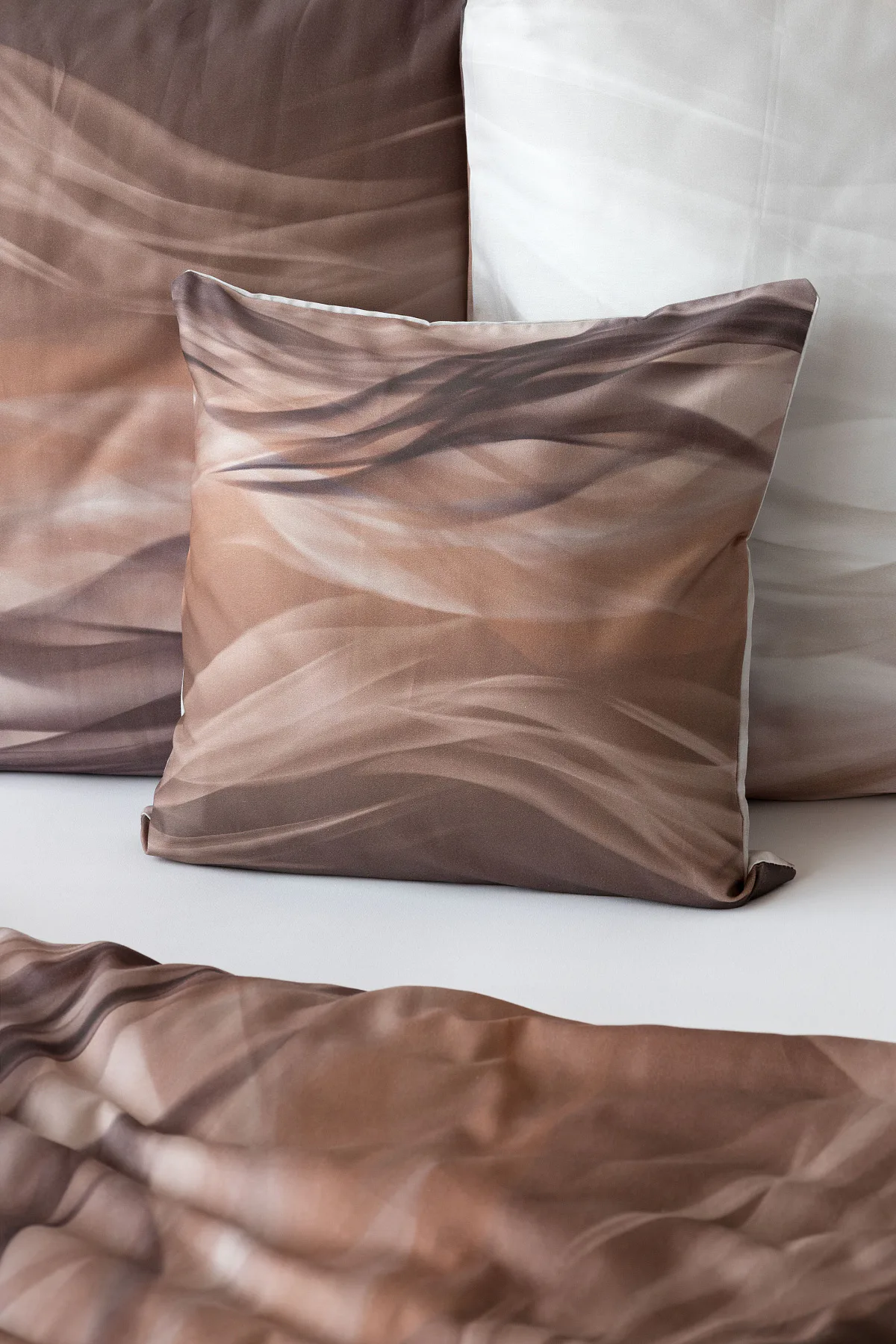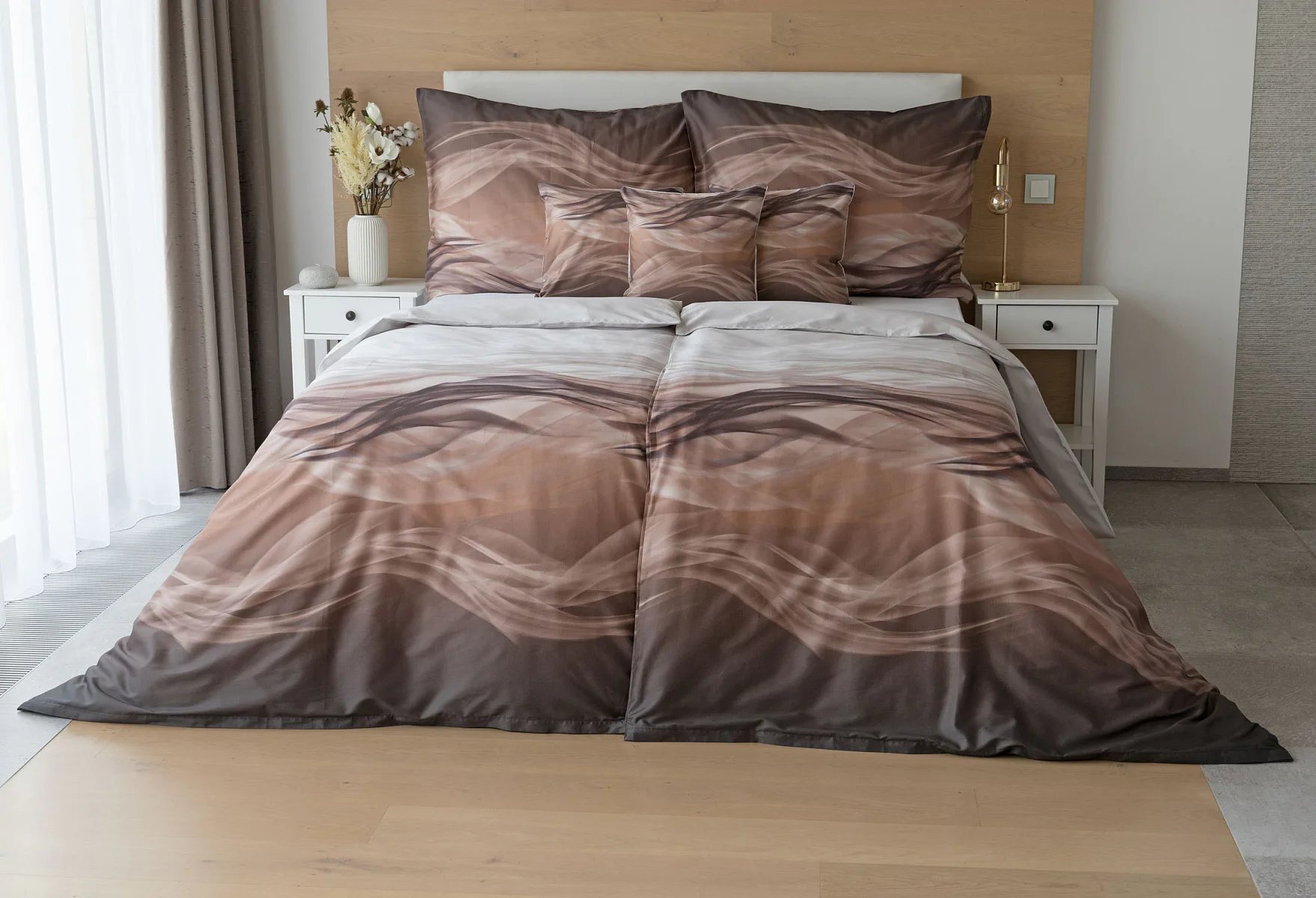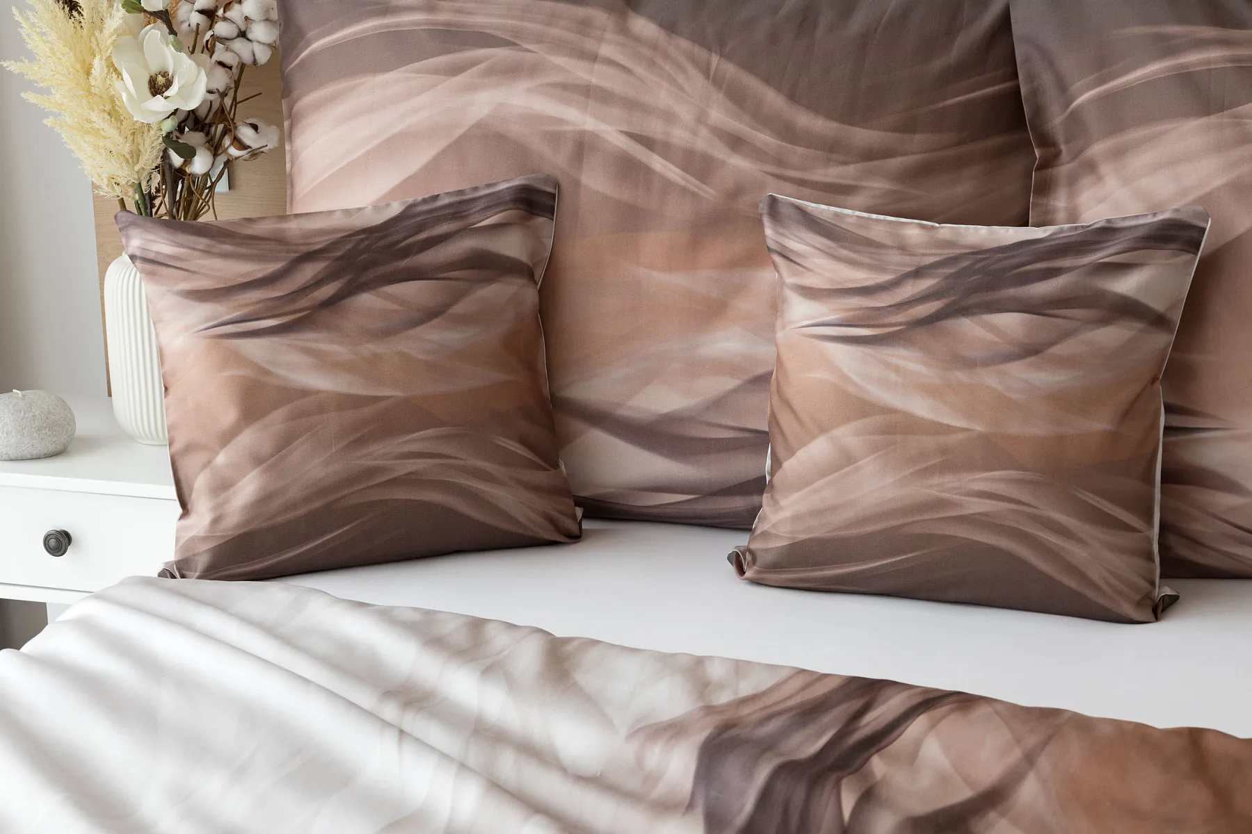 Nechte se unášet na vlnách hřejivé harmonie s ložním povlečením Marni Brown. Abstraktní motiv kombinuje oblíbenou paletu přírodních béžových a hnědých tónů, které navodí v ložnici útulnou atmosféru. Eleganci podtrhuje jemný lesk bavlněného saténu, který je pro tento vzor jako stvořený.