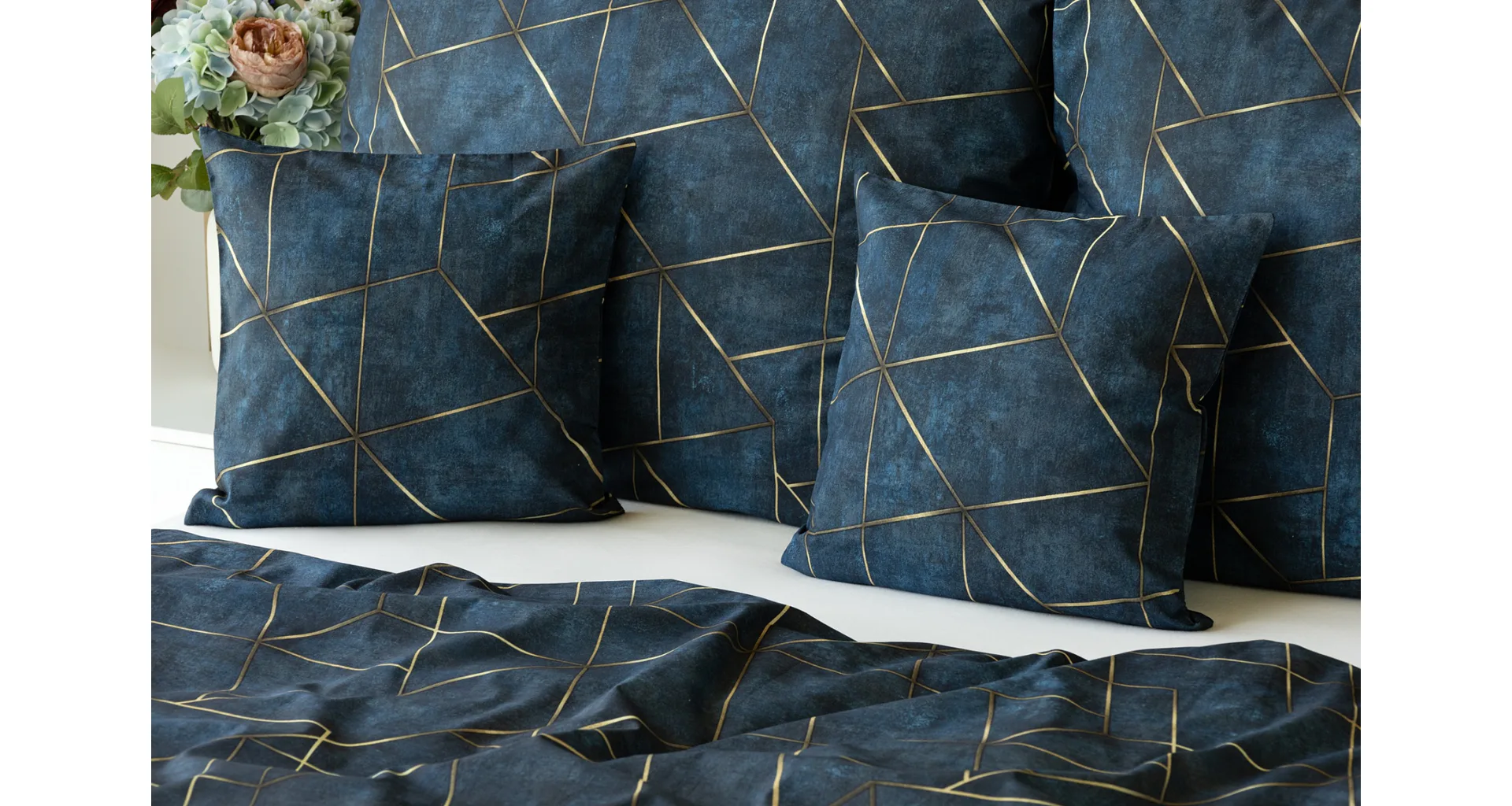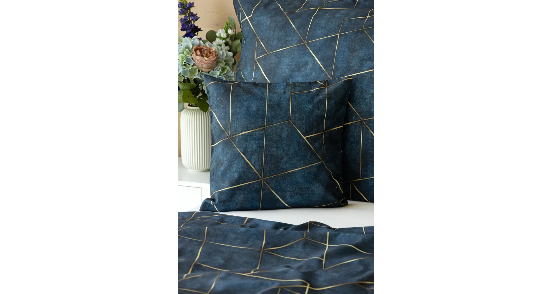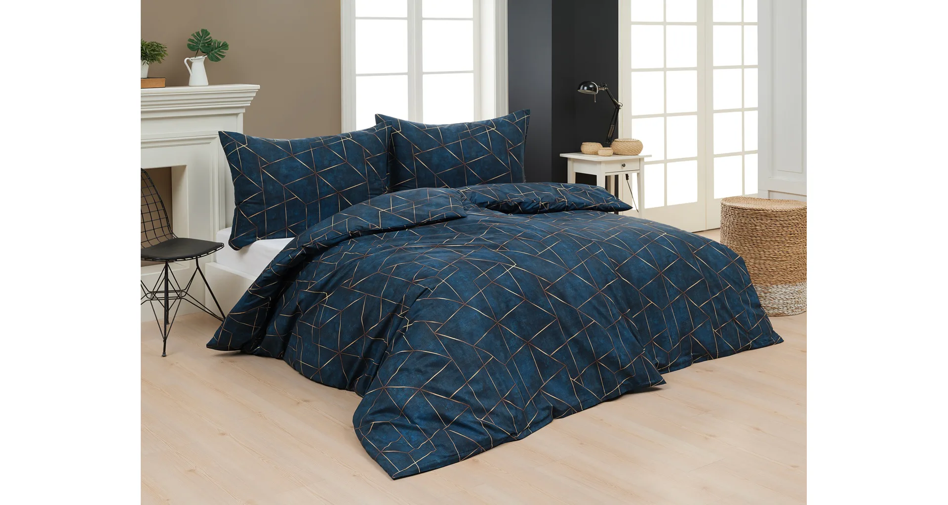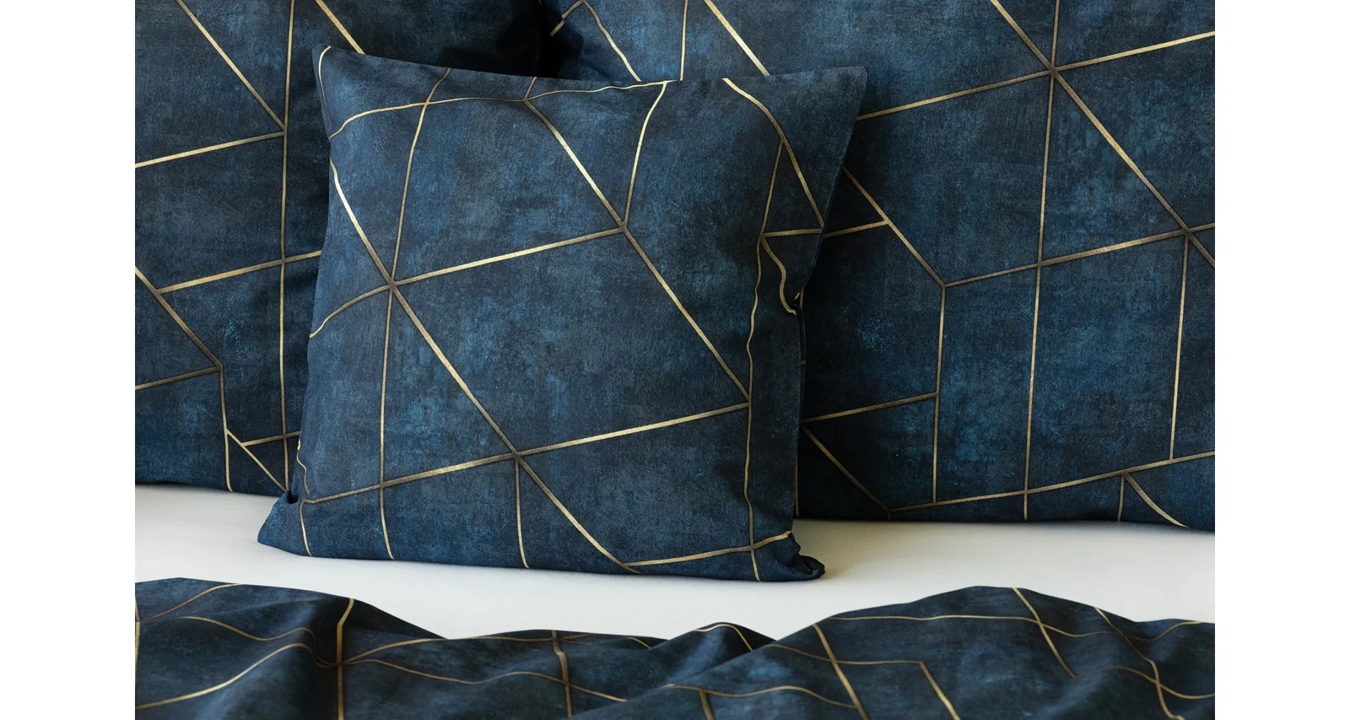 Dopřejte své ložnici dokonale elegantní vzhled s bavlněným ložním povlečením Matis. Vzor, který je jako stvořený do světlého minimalistického interiéru, si jednoduše zamilujete. Podklad v barvě noční oblohy zdobí po celé ploše pískově zlatavý geometrický vzor. Barevné přechody v podkladu i v geometrické linii podtrhují plastický vzhled vzoru. Díky nejmodernějšímu digitálnímu tisku vyniká motiv v precizním detailu.