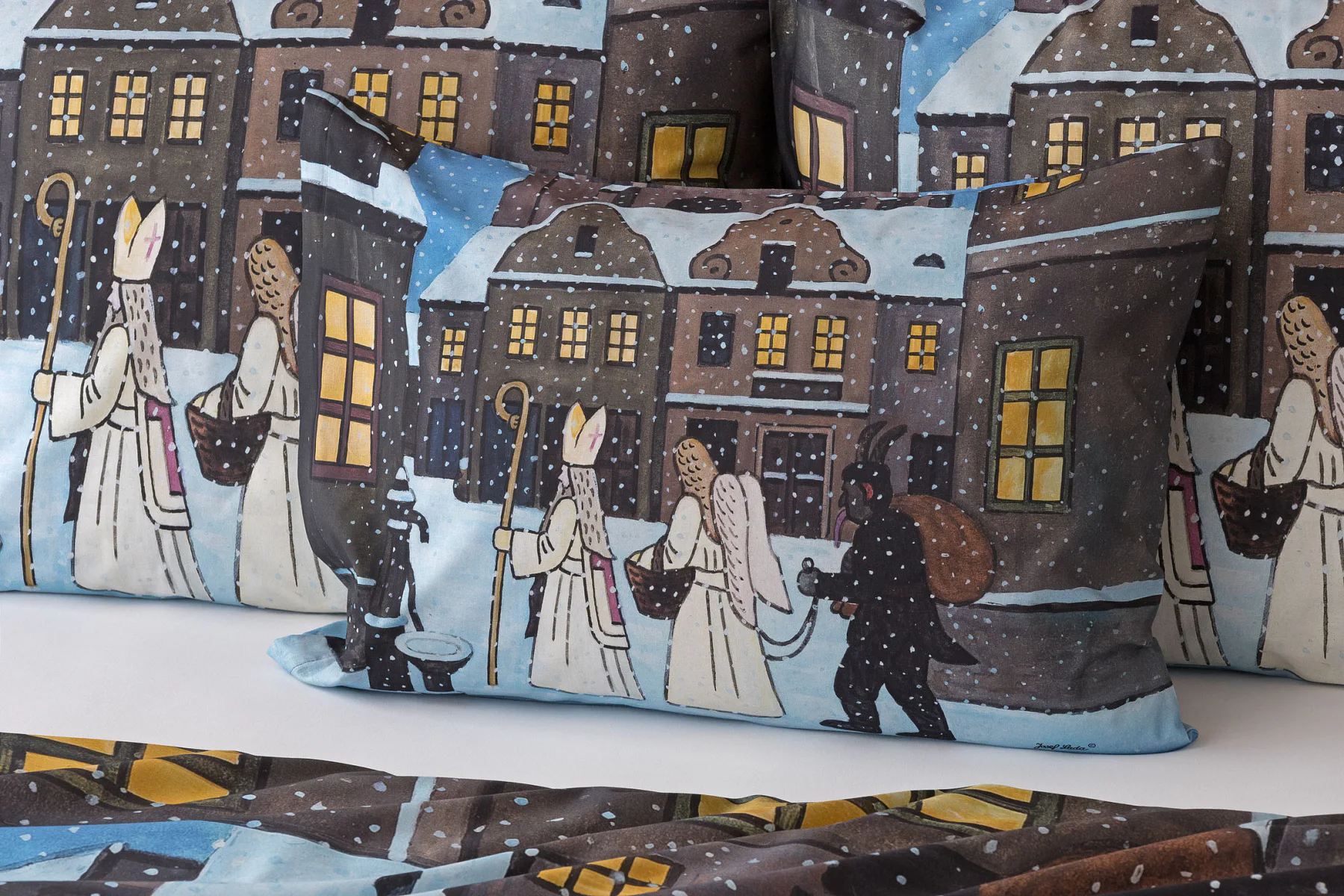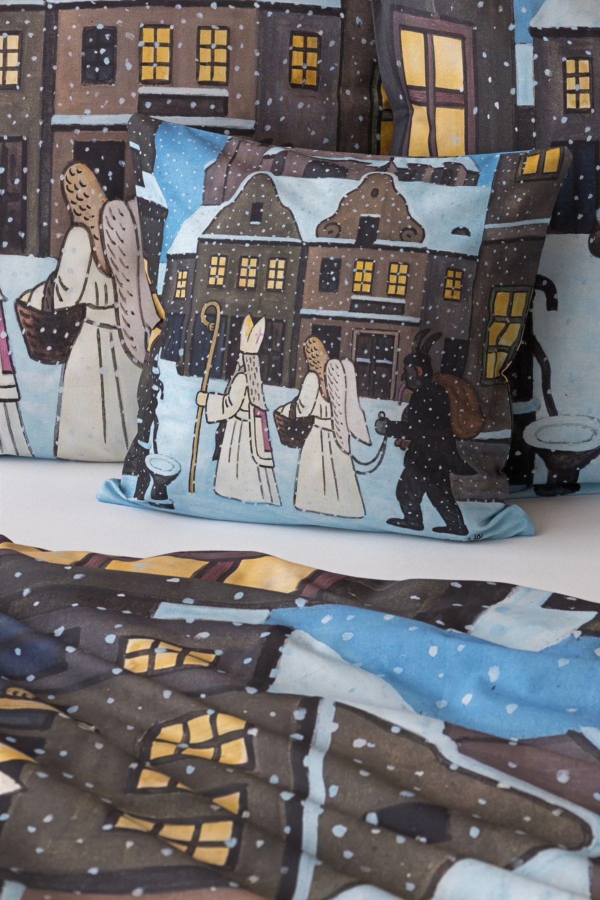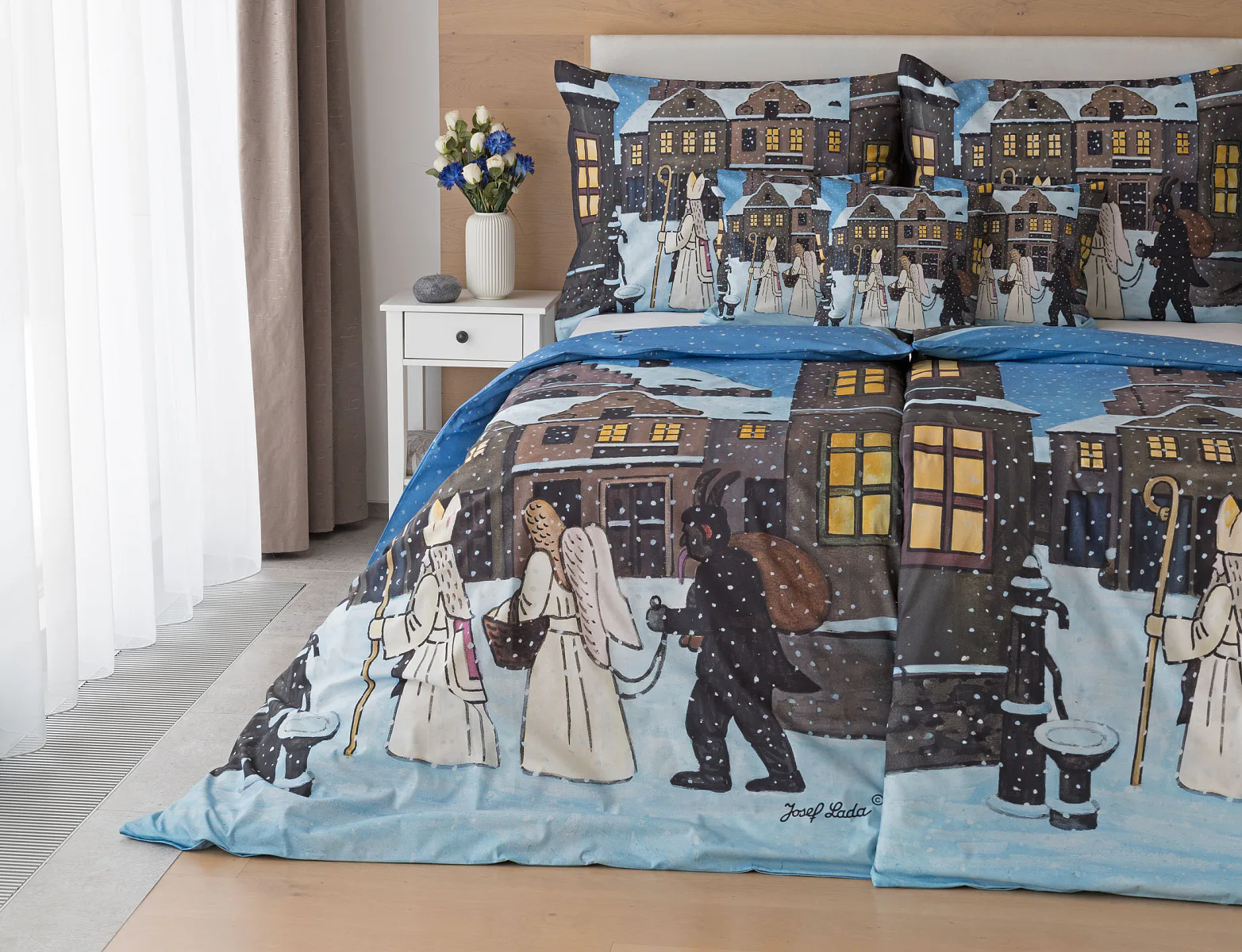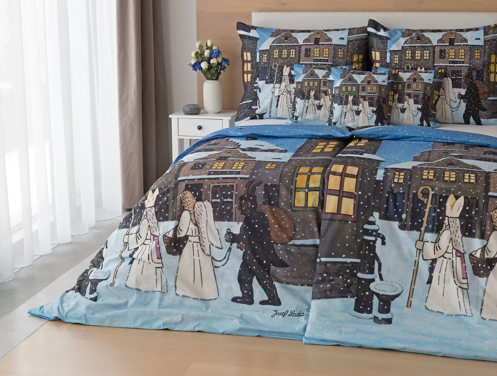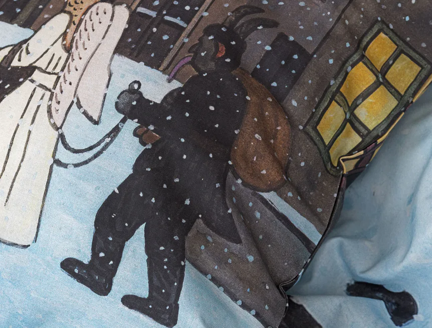 Pozvěte k sobě domů kouzlo nestárnoucích kreseb Josefa Lady, které jsou pro mnohé z nás symbolem dětství, harmonického venkova a české tradice. Motiv inspirovaný lidovou tradicí Mikuláše, anděla a čerta zachycuje kouzlo adventního období a připomíná oblíbený zvyk spojený s očekáváním Vánoc.