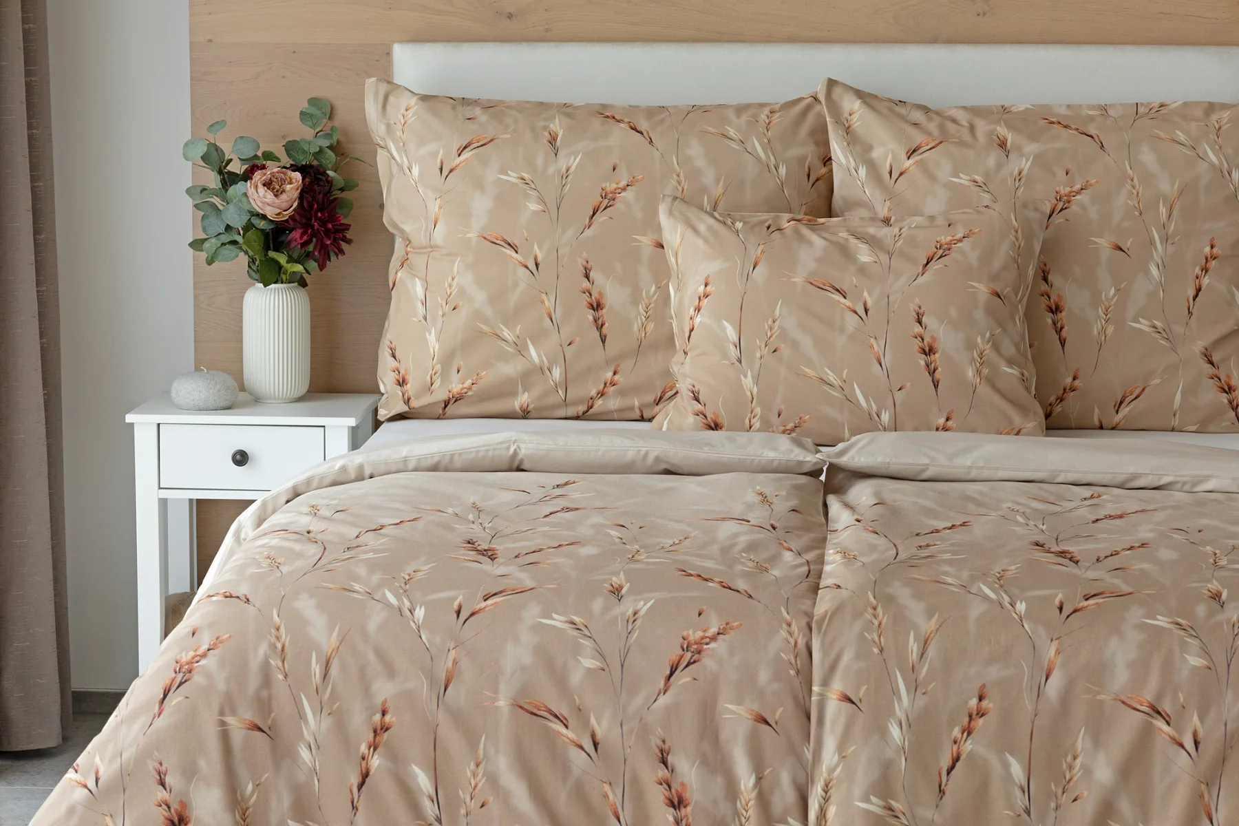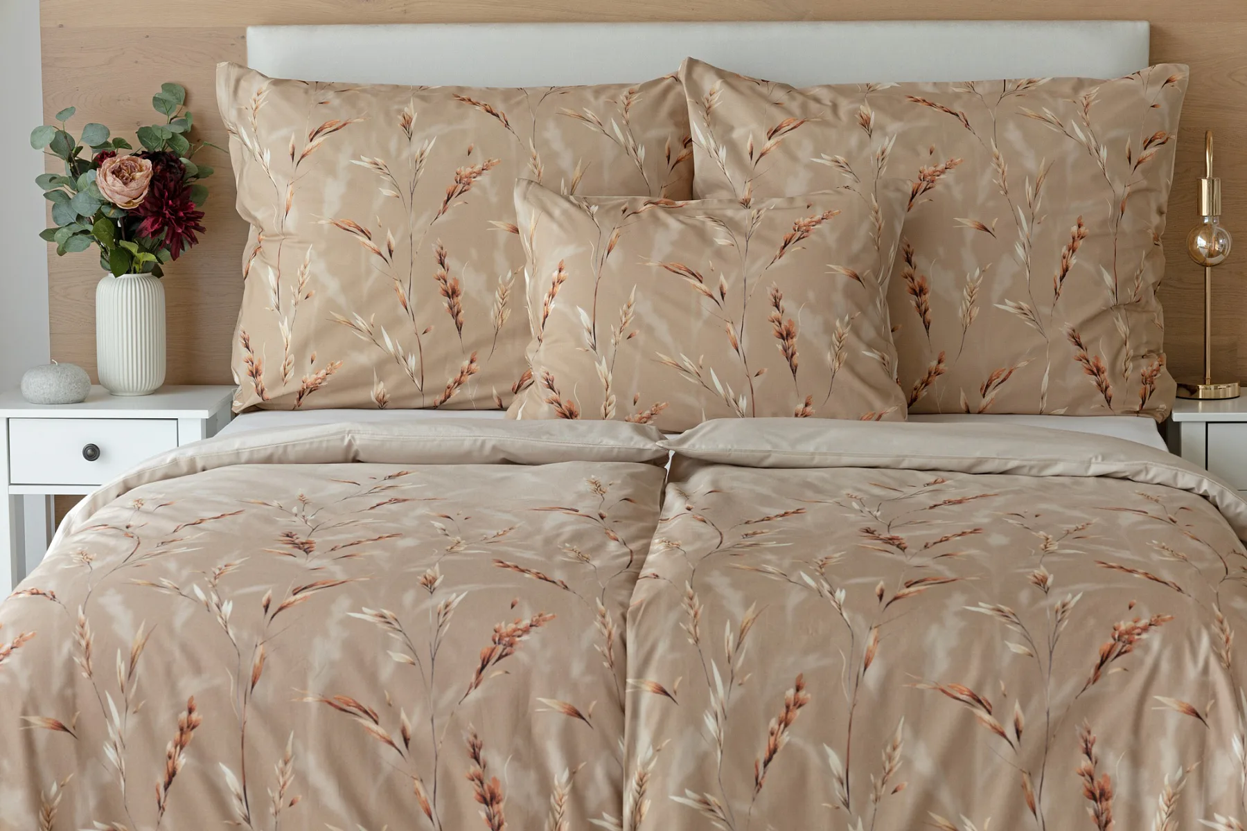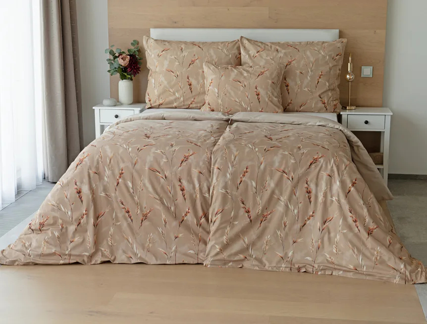 Vychutnejte si zasloužené chvíle odpočinku s bavlněným povlečením Natura. Vzory klasů v jemných béžových a hnědých tónech evokují přírodní krásu a teplo venkova. Povlečení je vyrobeno ze 100% prvotřídní bavlny, která zajišťuje maximální komfort a zaručí váš zdravý spánek.