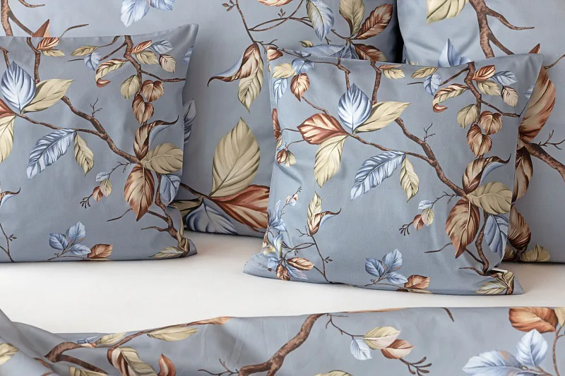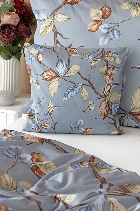 Ložní povlečení Nobilis vás nadchne ve všech ohledech. Na první pohled si zamilujete jednoduchý florální motiv v hřejivých barvách a na první dotek podlehnete kouzlu hebkého mako saténu ze 100% bavlny, který se postará o váš spokojený spánek. Podkladová barva ložního povlečení je kovově modrošedá.