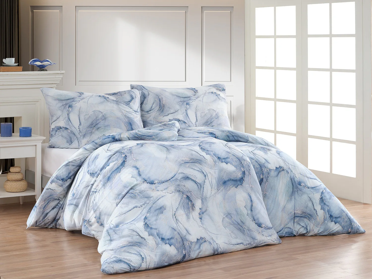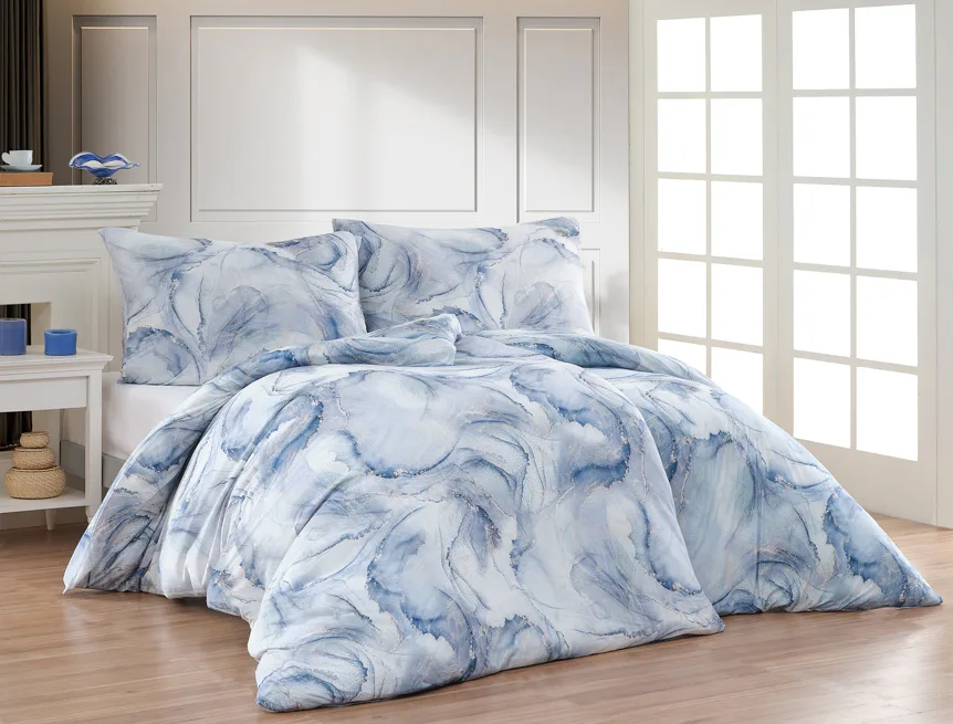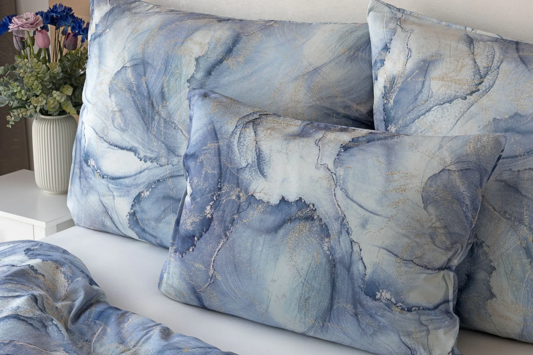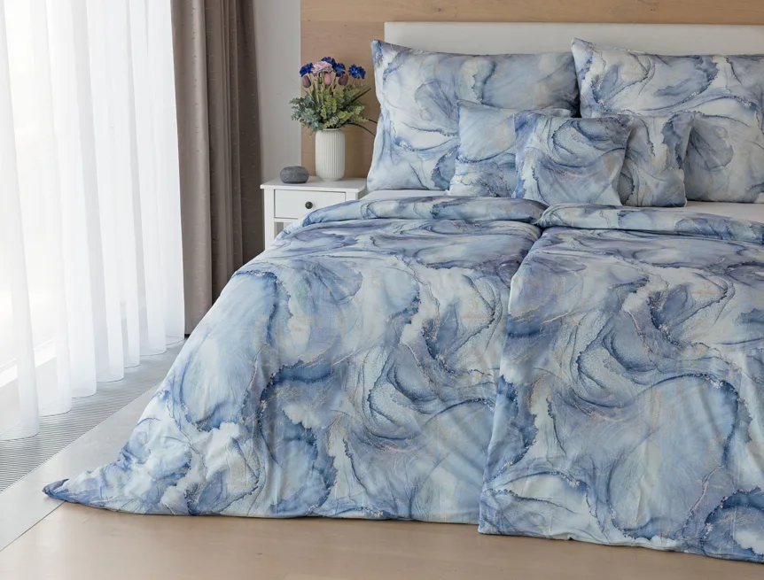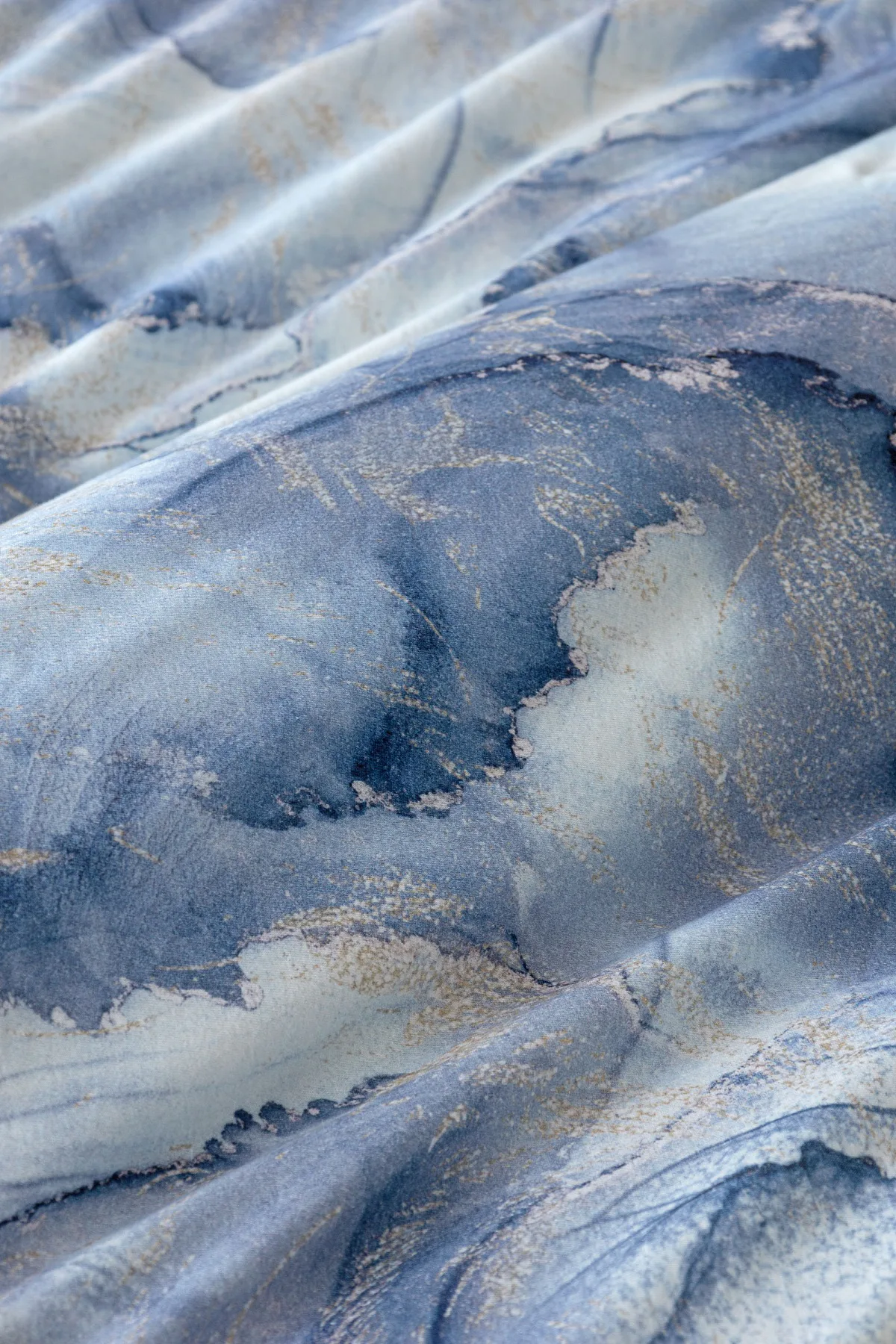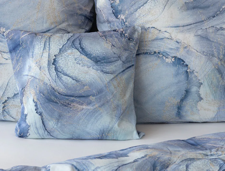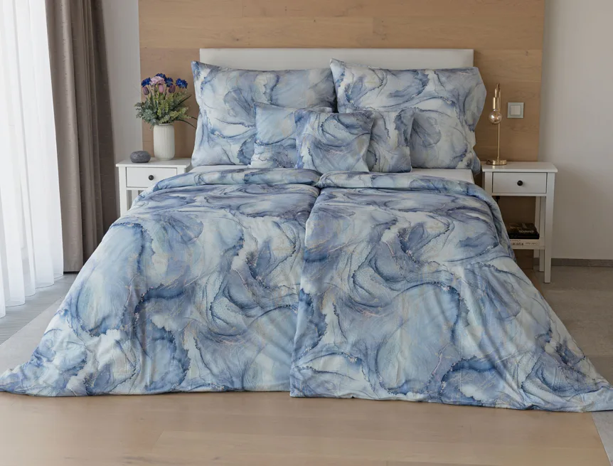Pro novou kolekci ložního povlečení Mako jersey jsme pečlivě vybírali motivy, které tomuto pružnému materiálu sluší. Abstraktní vzor Odine, který je tvořen paletou modrých tónů protkaných zlatavými prvky, rozzáří vaši ložnici.