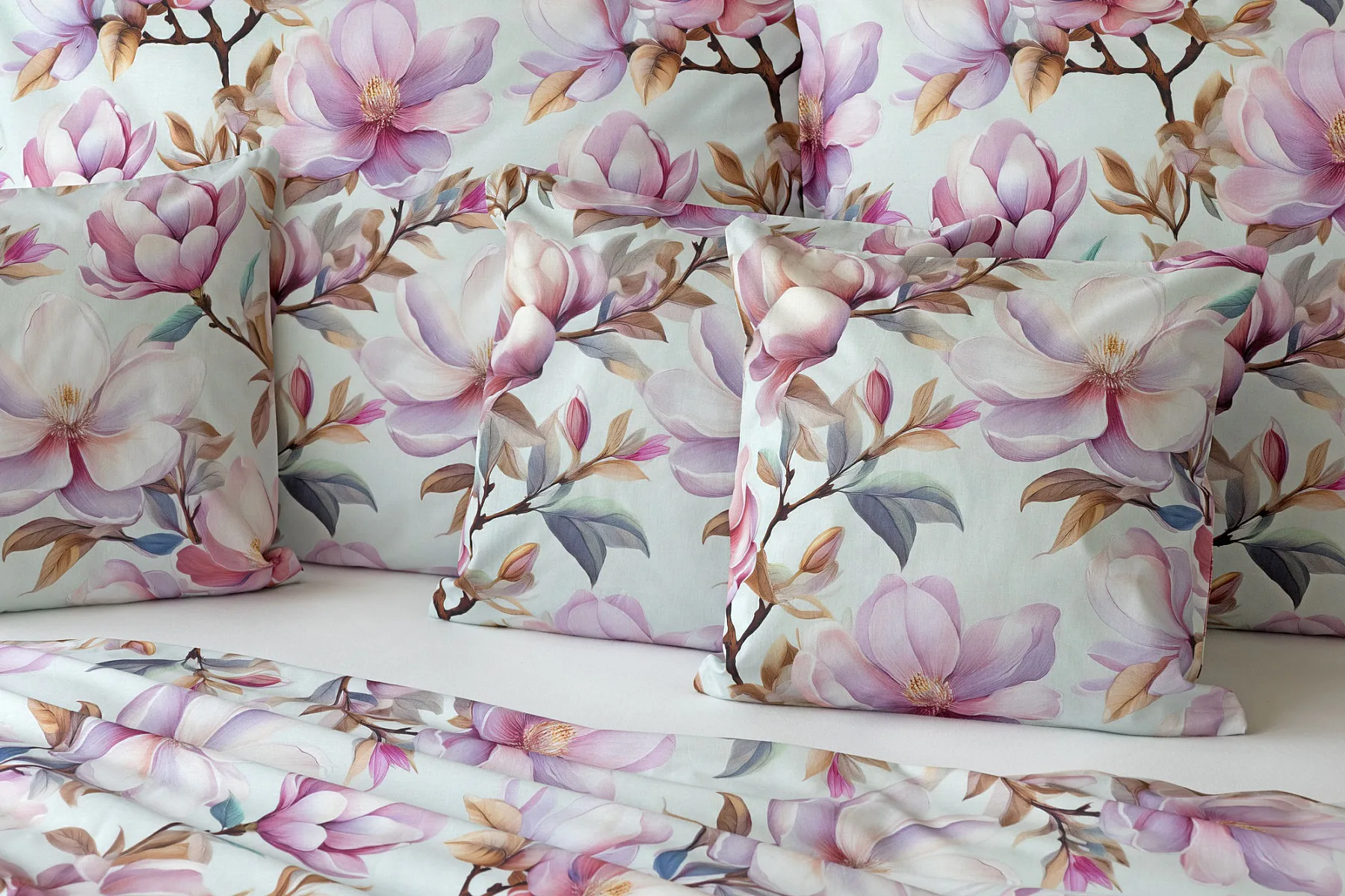 Bavlněné povlečení Pinkie vás okouzlí na první pohled originálním květinovým vzorem, kterému dominují odstíny pudrové a růžové barvy, doplněné jemnými prvky v paletě hnědých a petrolejových tónů. Květinový motiv je zasazen do tlumeného modrozeleného podkladu a díky nejmodernějšímu digitálnímu tisku vyniká v precizním detailu.