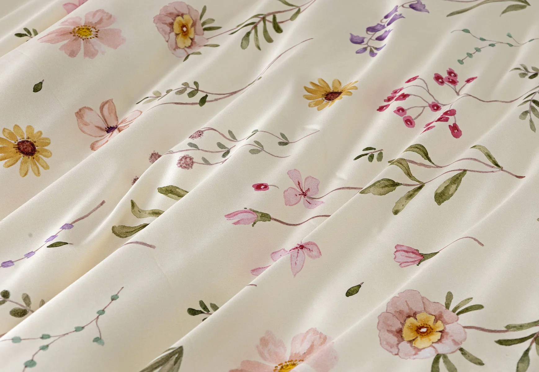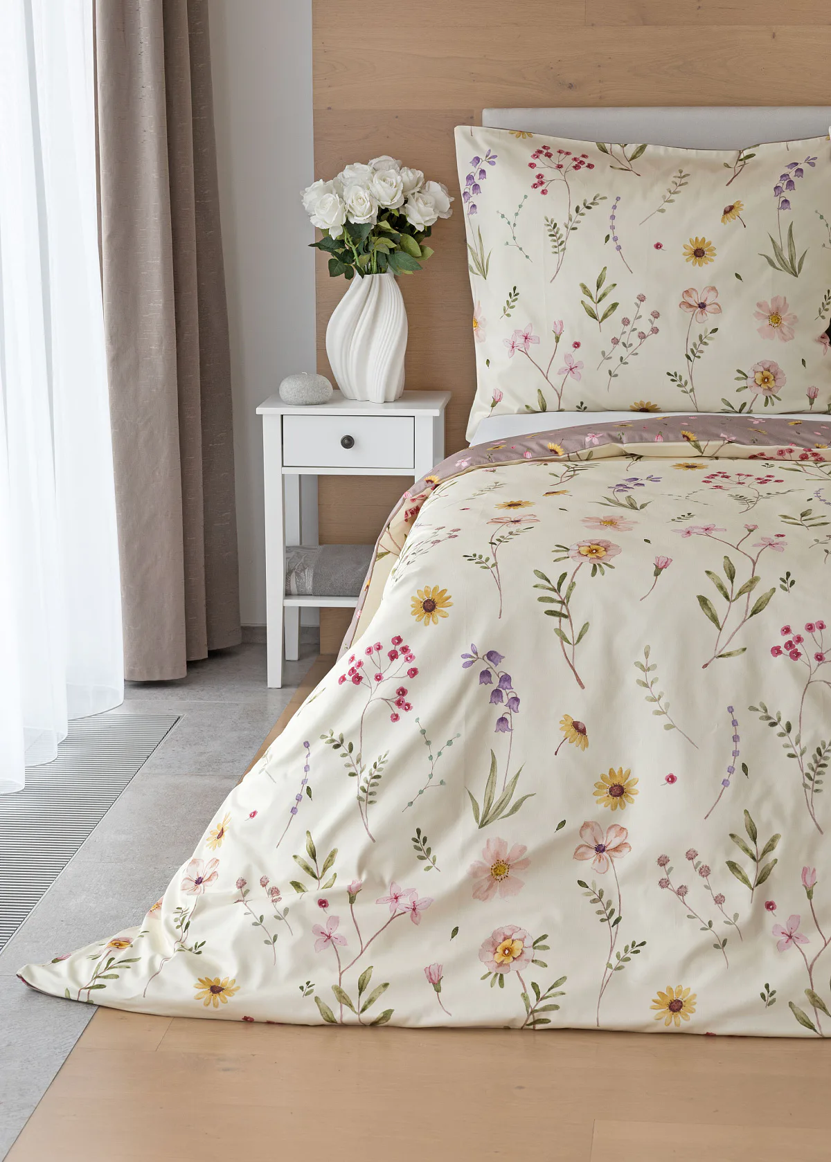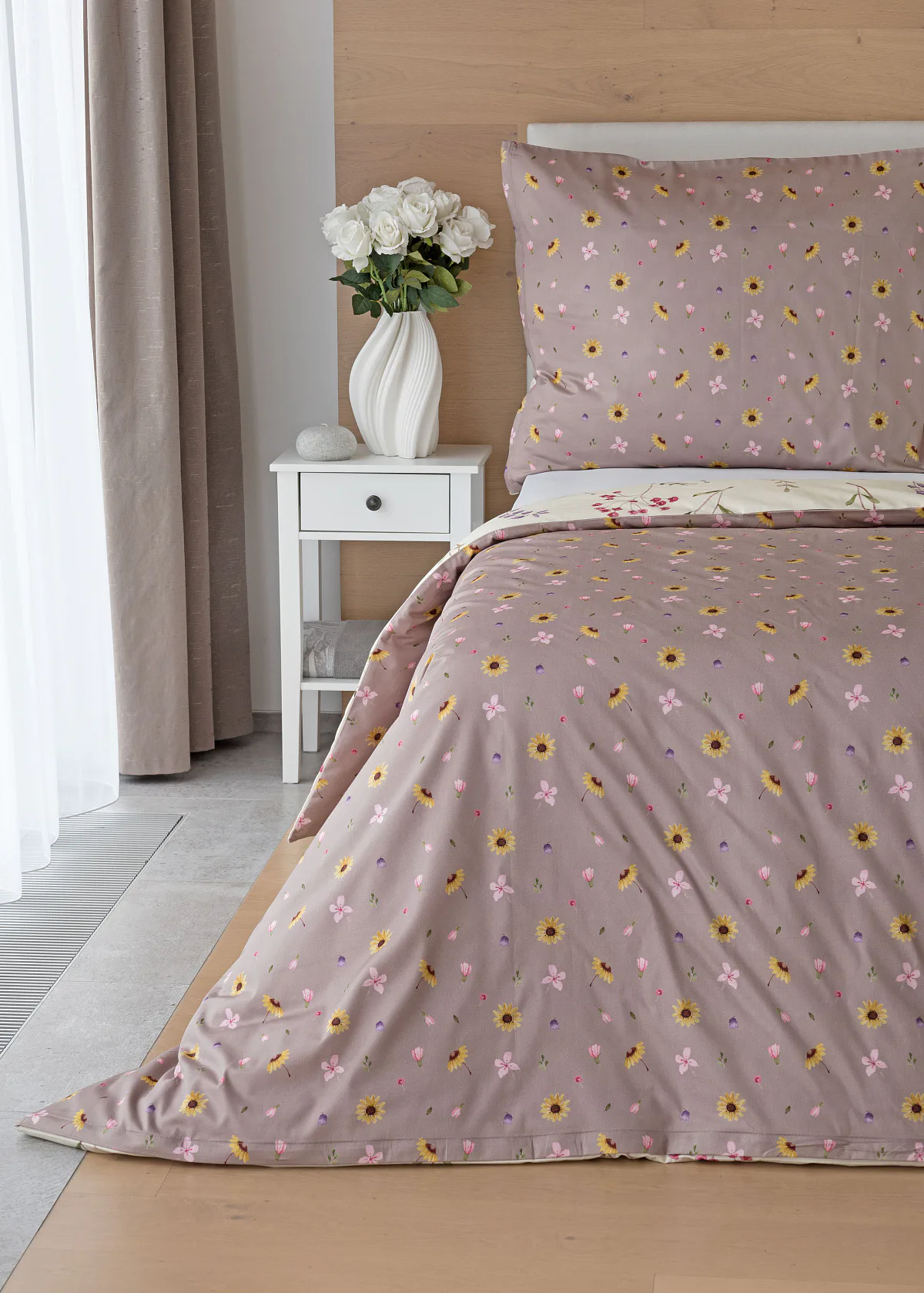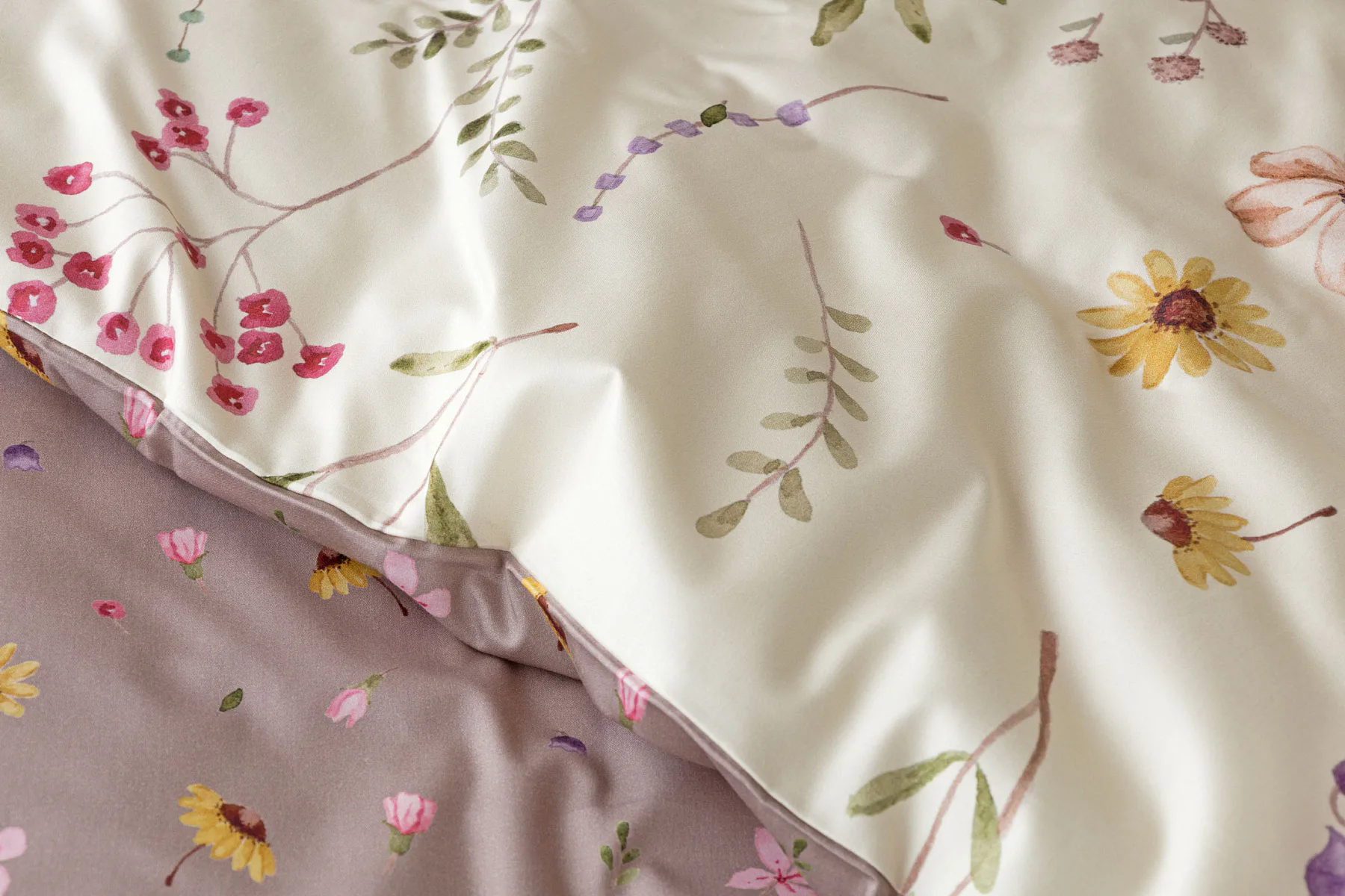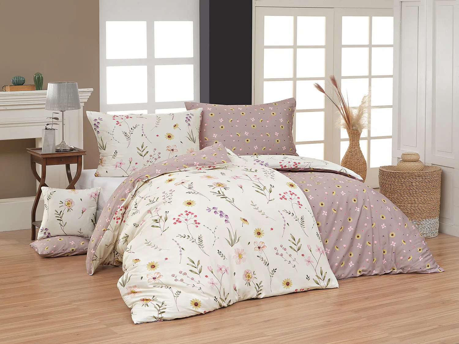 Bavlněné povlečení Primavera vás okouzlí jemným květinovým vzorem inspirovaným lučními květy. Kombinace krémově žlutého podkladu s drobnými kvítky v pastelových odstínech růžové, fialové a žluté působí něžně a přirozeně, zatímco druhá strana v tlumeném starorůžovém/taupe tónu dodává povlečení hravost a variabilitu. Díky decentní barevnosti a jemnému designu je povlečení ideální volbou pro romantické, venkovské i moderní ložnice.