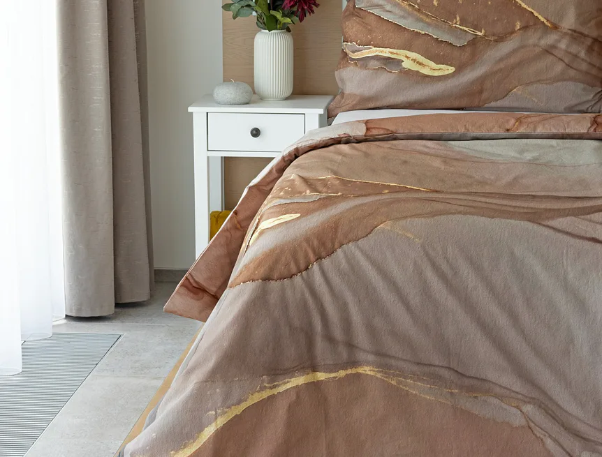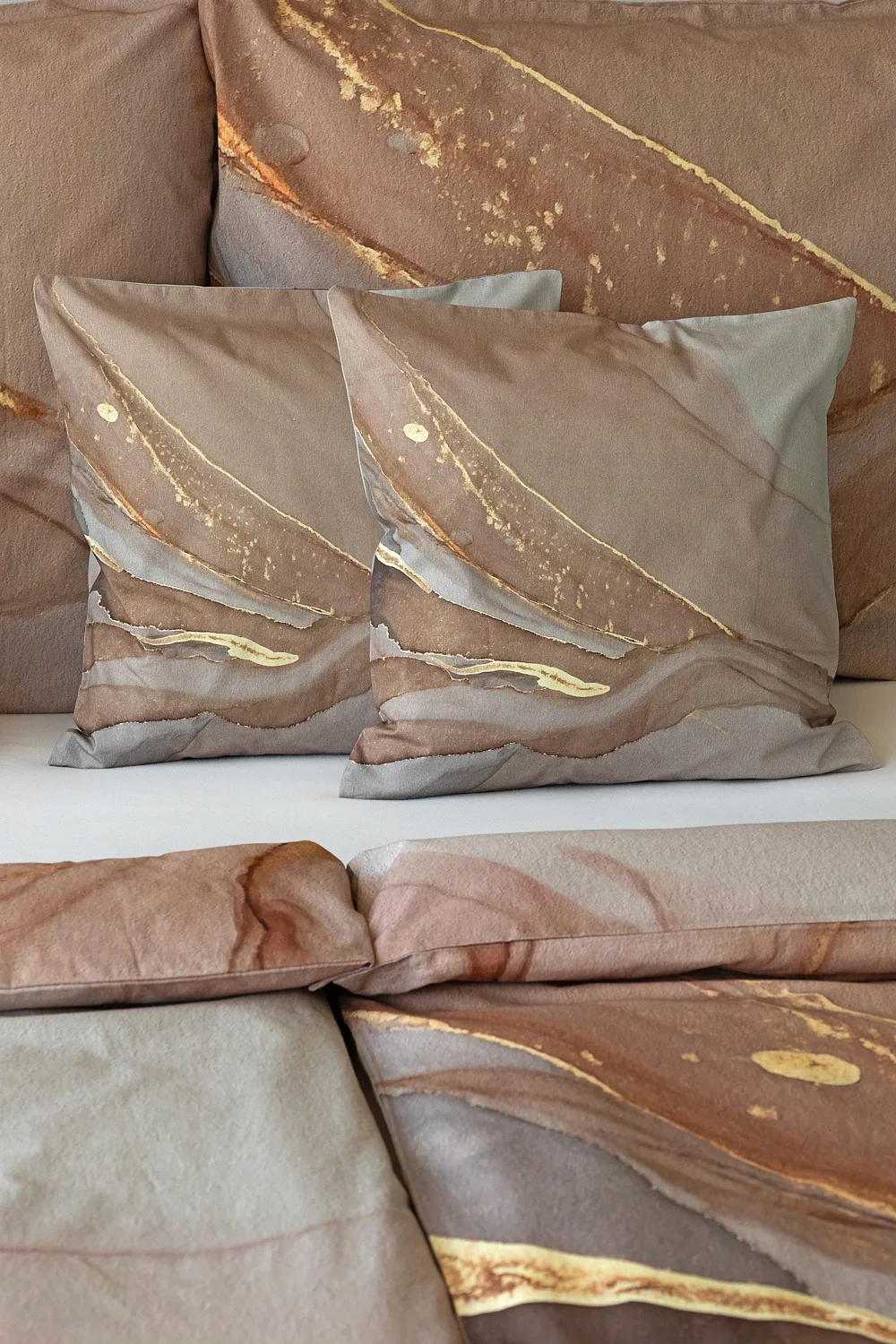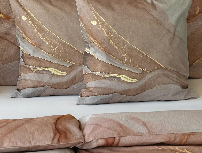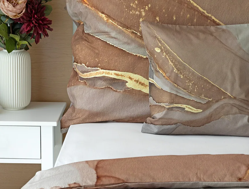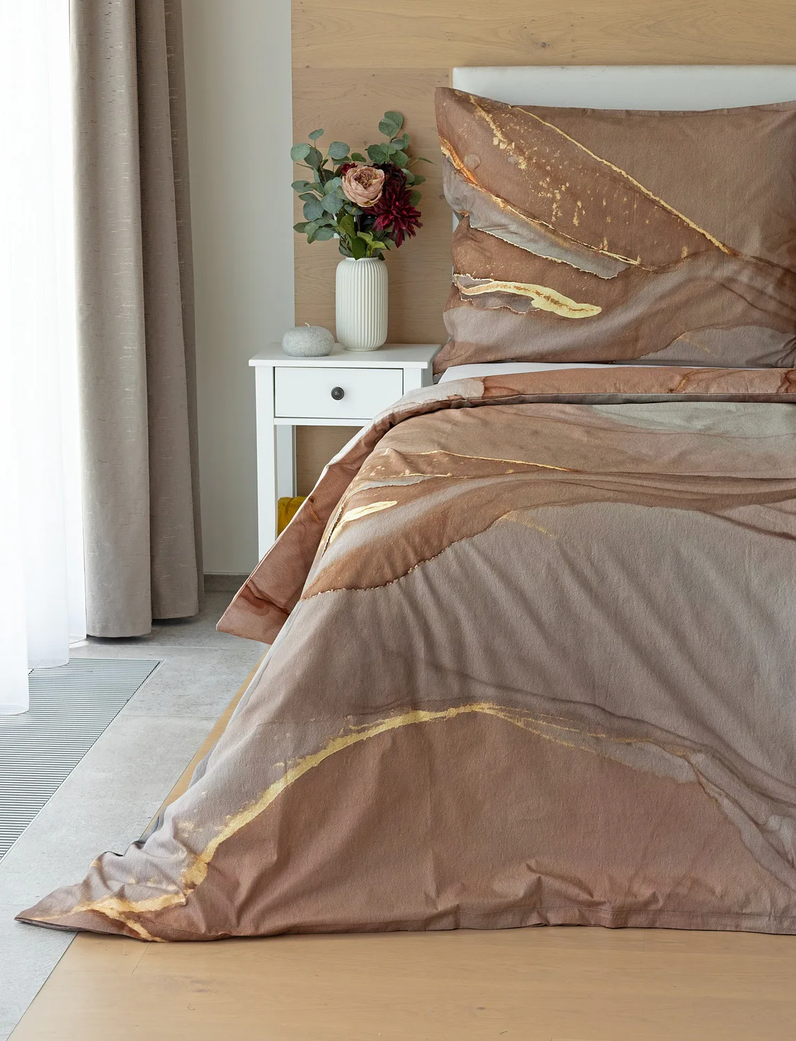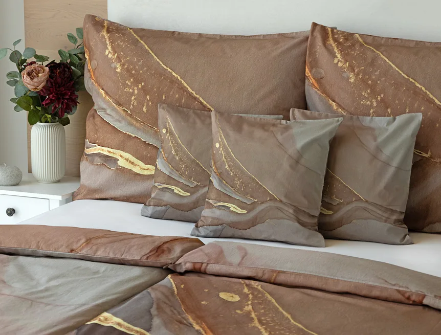 Bavlněné povlečení Riana vnese do vaší ložnice jedinečný styl a eleganci. Abstraktní vzor kombinuje paletu hnědých a šedohnědých tónů protnutých zlatavou linkou. Povlečení je vyrobeno ze 100% prvotřídní bavlny a přináší nejen estetickou hodnotu, ale i výjimečný komfort.