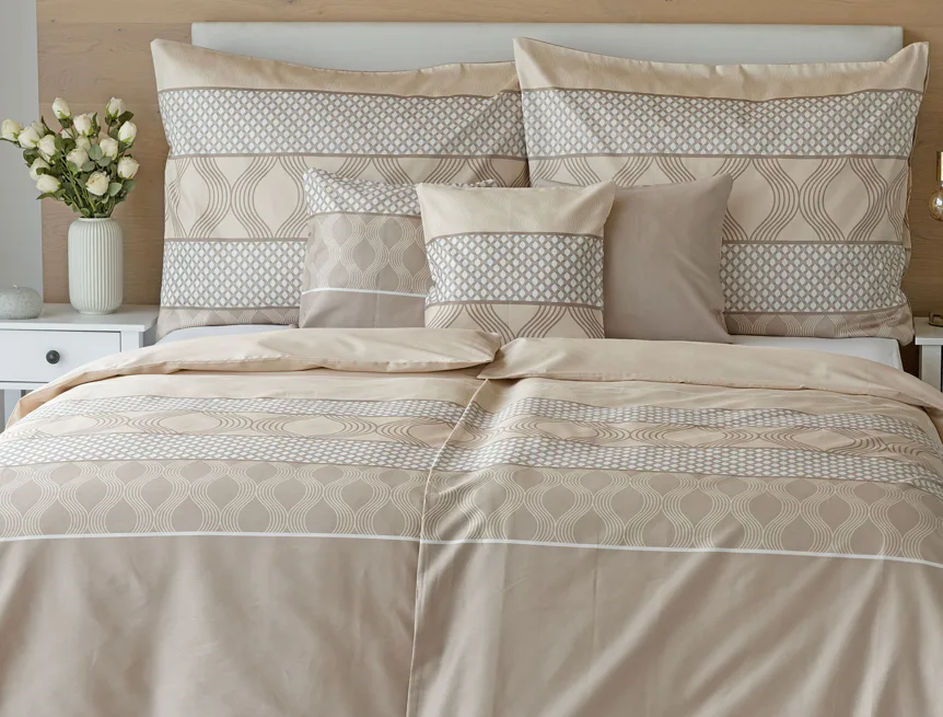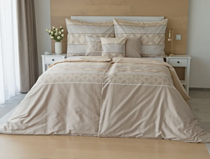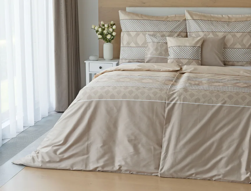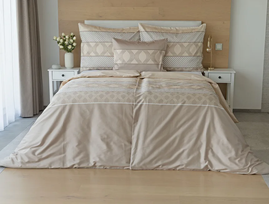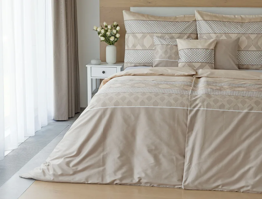 Vdechněte své ložnici kouzlo a příjemnou atmosféru s elegantním povlečením Rionero. Nápaditý geometrický vzor v oblíbené paletě krémových a béžových tónů vyniká v jednoduchosti a skvěle doplní moderní ložnici i rustikálně zařízený interiér.