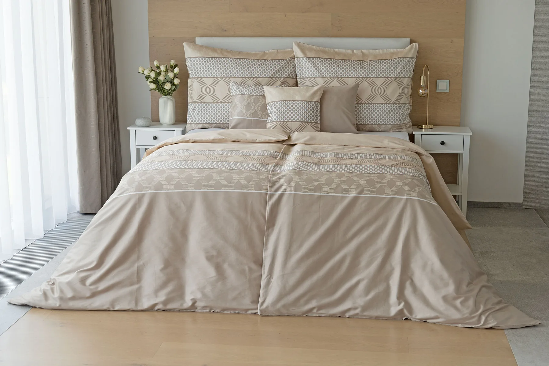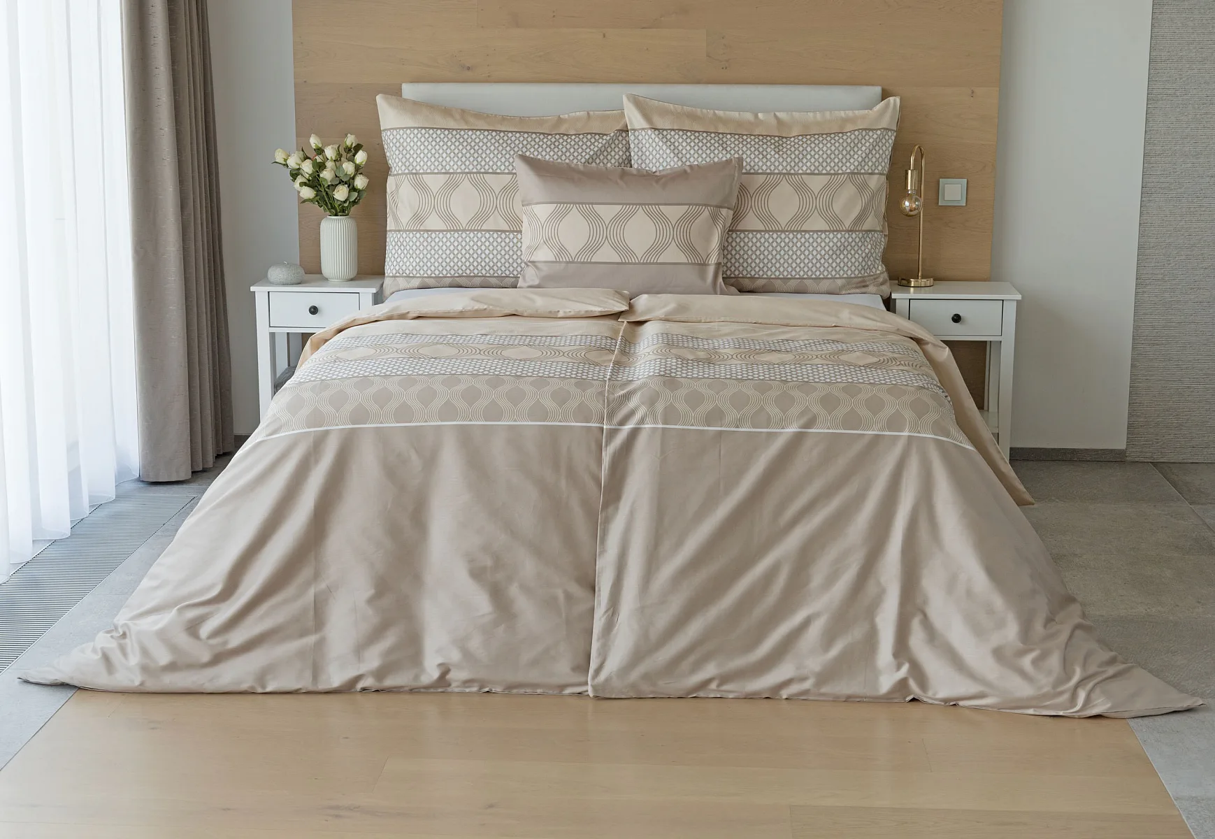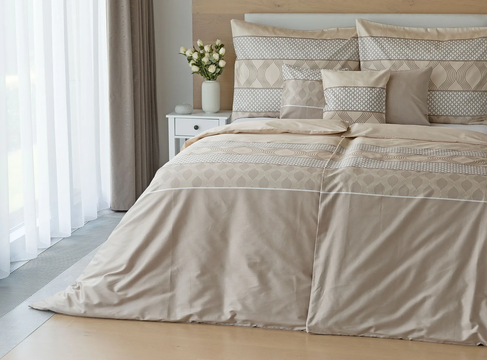 Vdechněte své ložnici kouzlo a příjemnou atmosféru s elegantním povlečením Rionero. Nápaditý geometrický vzor v oblíbené paletě krémových a béžových tónů vyniká v jednoduchosti a skvěle doplní moderní ložnici i rustikálně zařízený interiér.